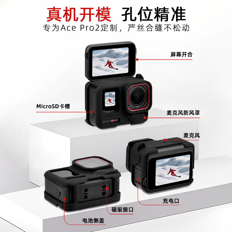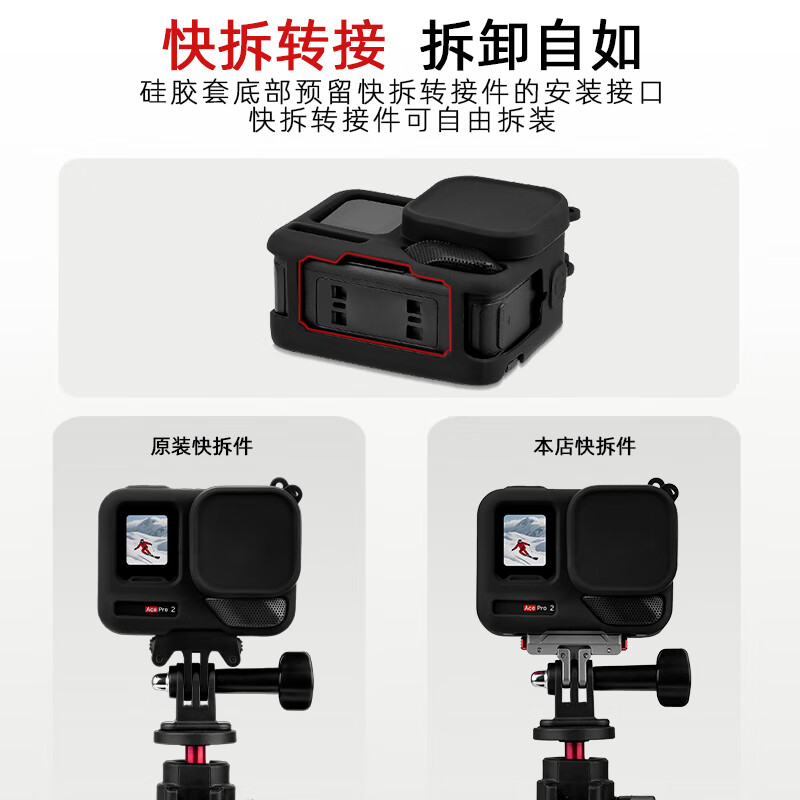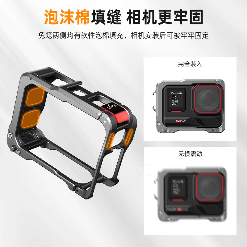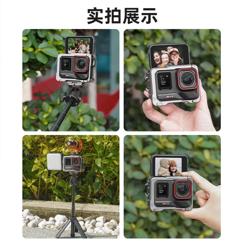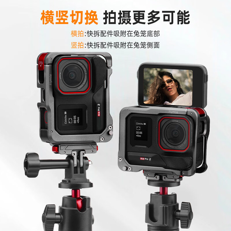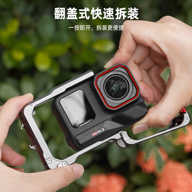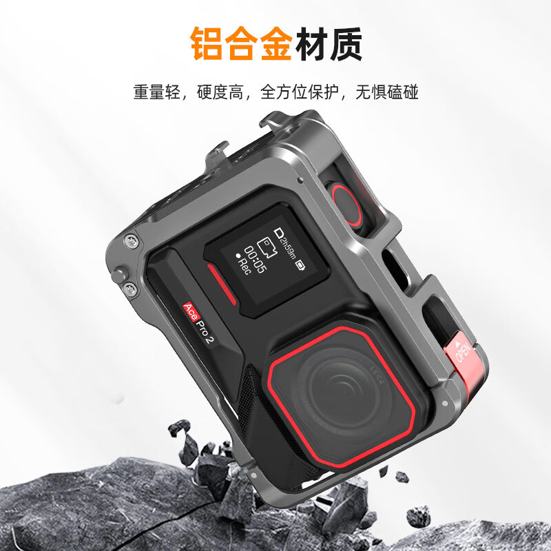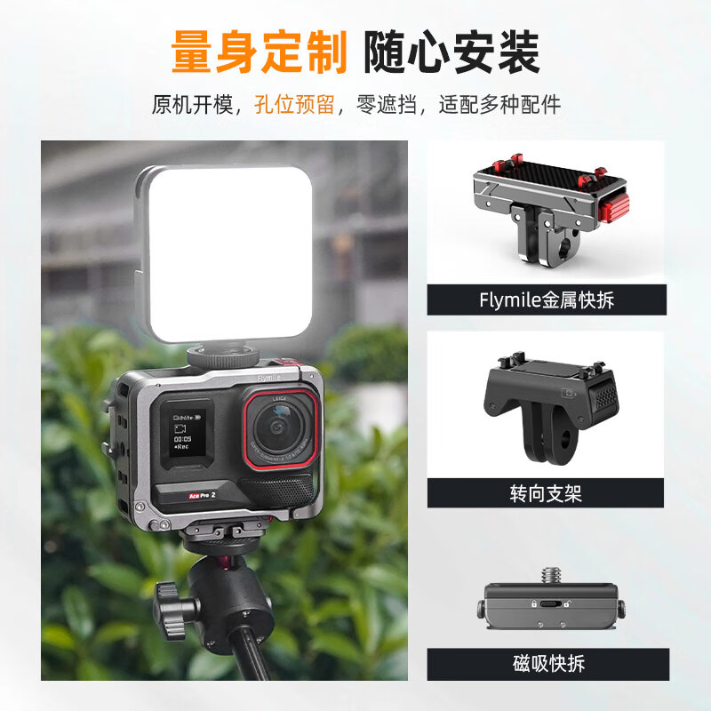FLYMILE is suitable for shadow stone Insta360 Ace Pro2 metal rabbit cage action camera ace Pro second generation shooting expansion anti-fall and anti-collision multi-functional expansion frame accessories Ace Pro/2 street shooting handle set (titanium empty gray) 360 Ace Pro/2 action camera
