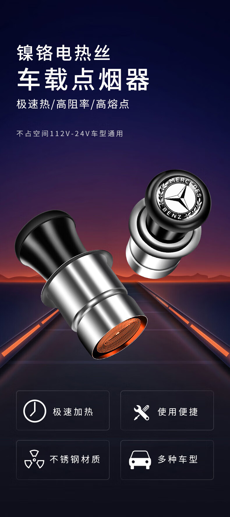 Car-mounted 12V cigarette lighter after travel Car cigarette lighter In-car electronic heating lighter Safe and fast hot Cigarette lighter (Honda) 12V universal
