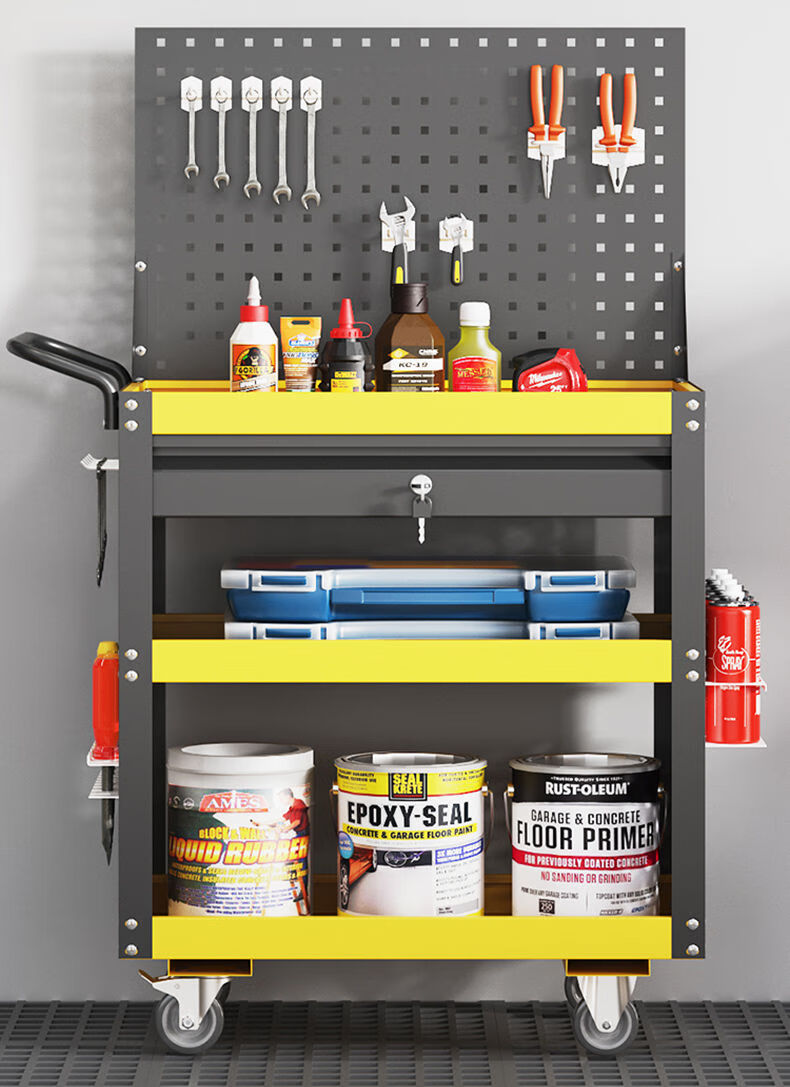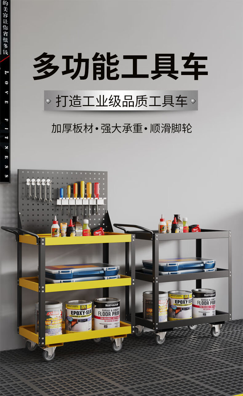Funwudou Customized Tool Trolley Car Repair and Repair Tools Multifunctional Parts Cart Mobile Trolley Drawer Storage Rack Thickened Black Tool Trolley with Back Plate - Accessories Not Included -