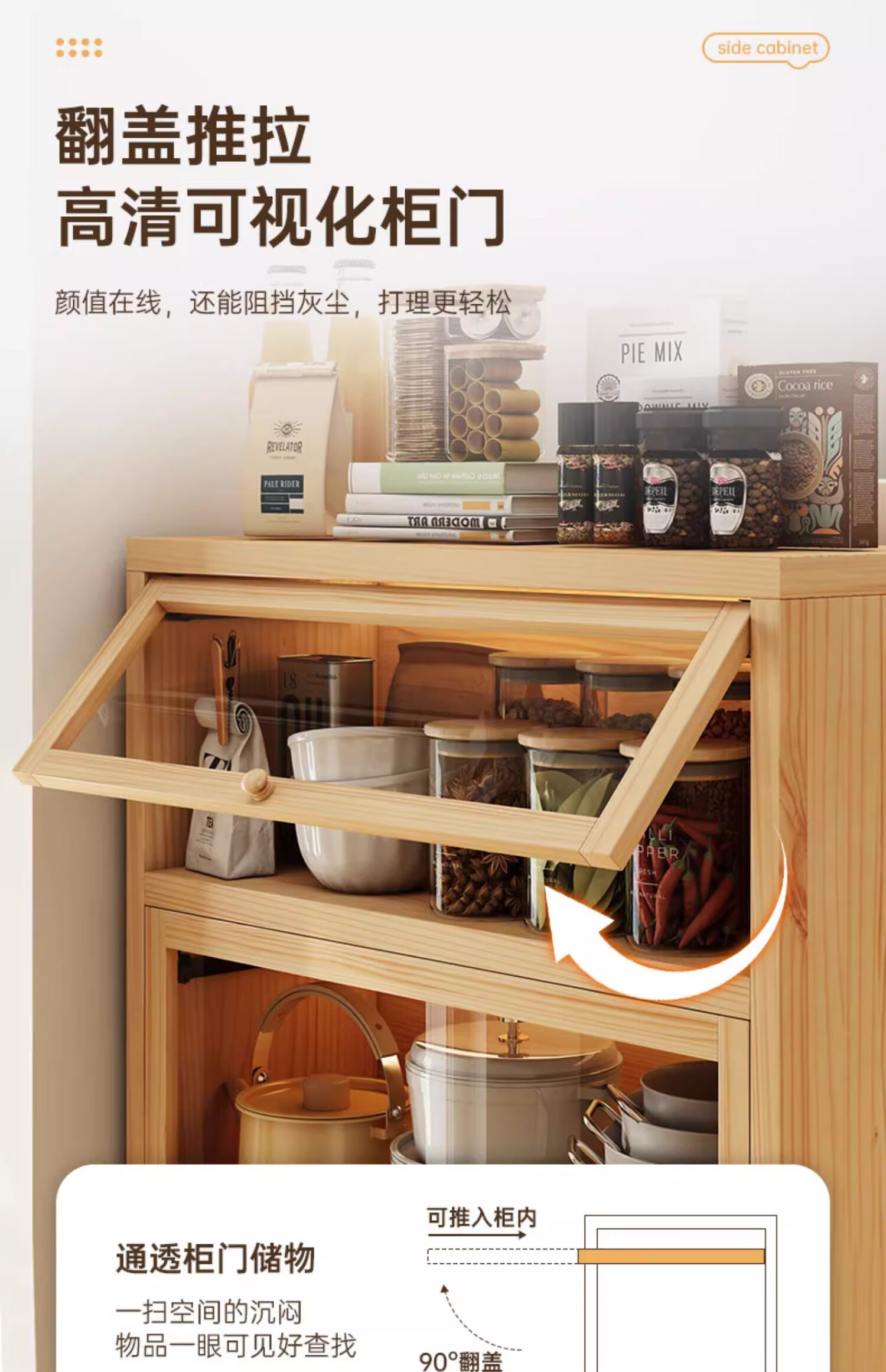 Solid wood sideboard wall storage cabinet integrated living room tea cabinet dining table side cabinet storage cabinet wall cabinet coffee cabinet large capacity five layers 60 30 160CM