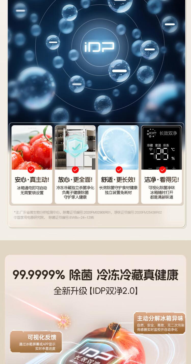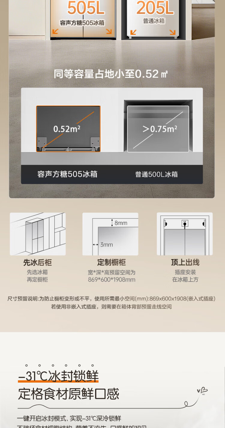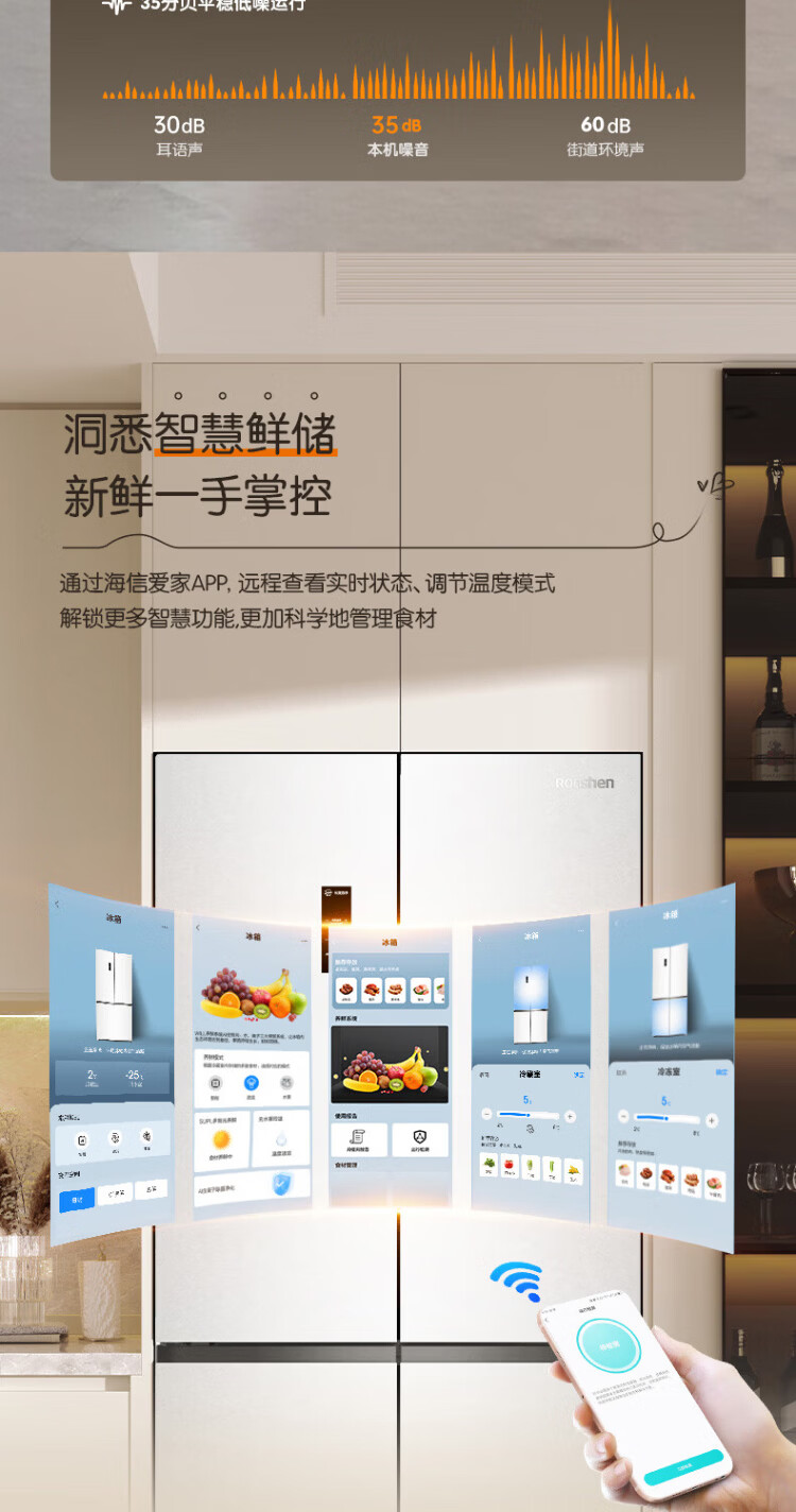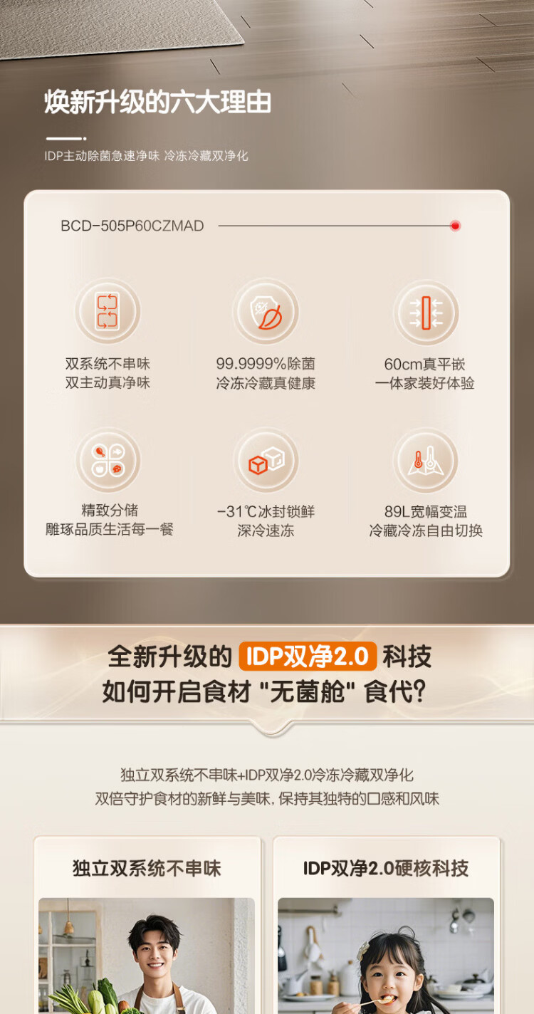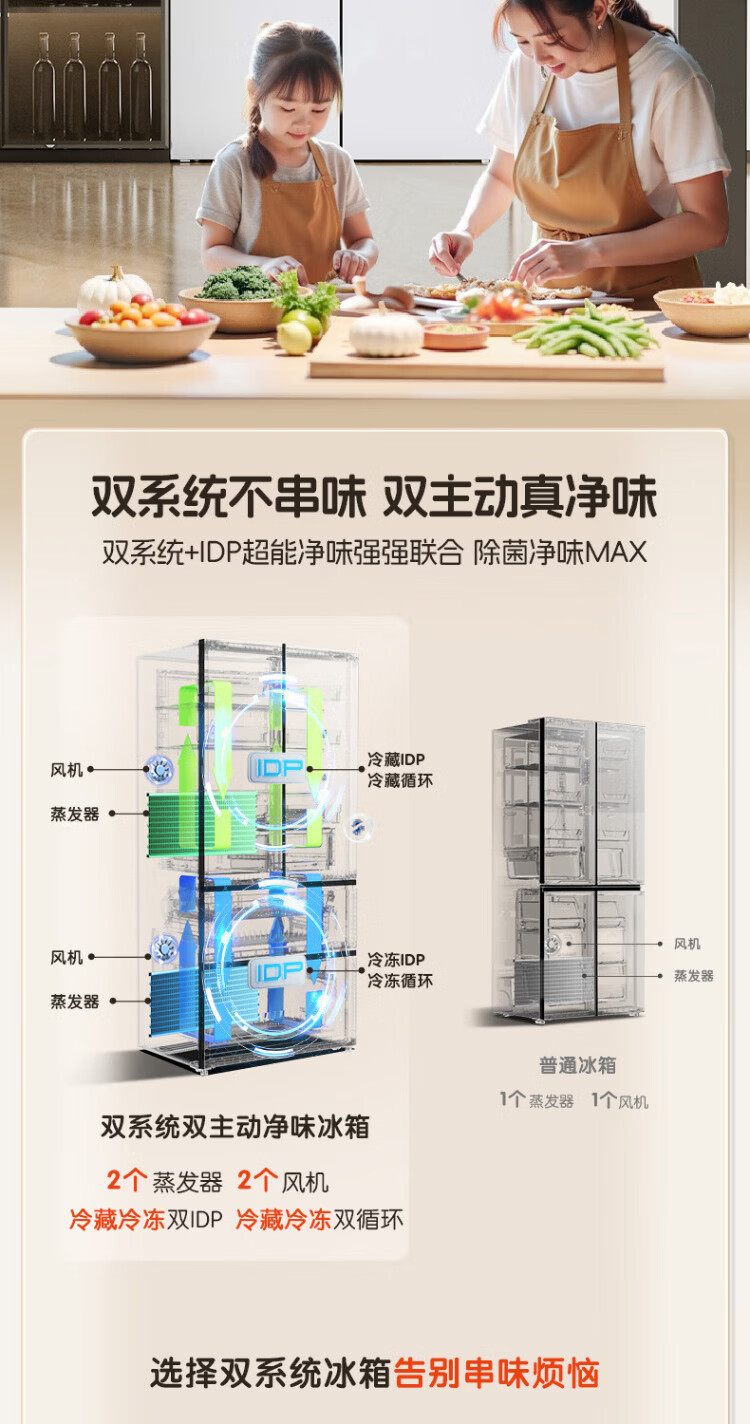 Rongsheng Cube Sugar 505L double-open four-open cross door dual-system circulation IDP active sterilization and deodorization ultra-thin zero-embedded first-class energy efficiency white refrigerator national subsidy World Cup Rongsheng Cube Sugar 505L double purification dual system white