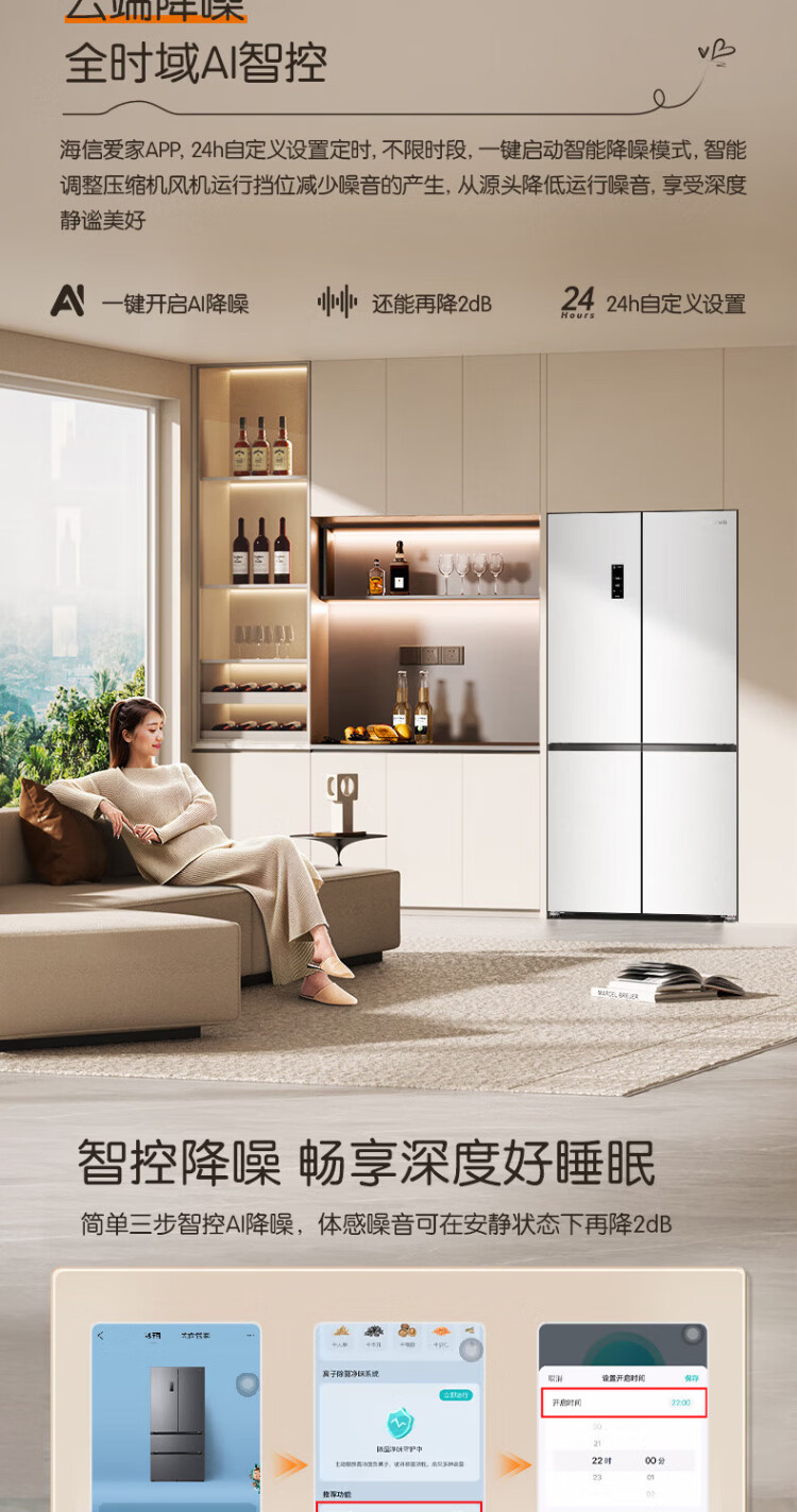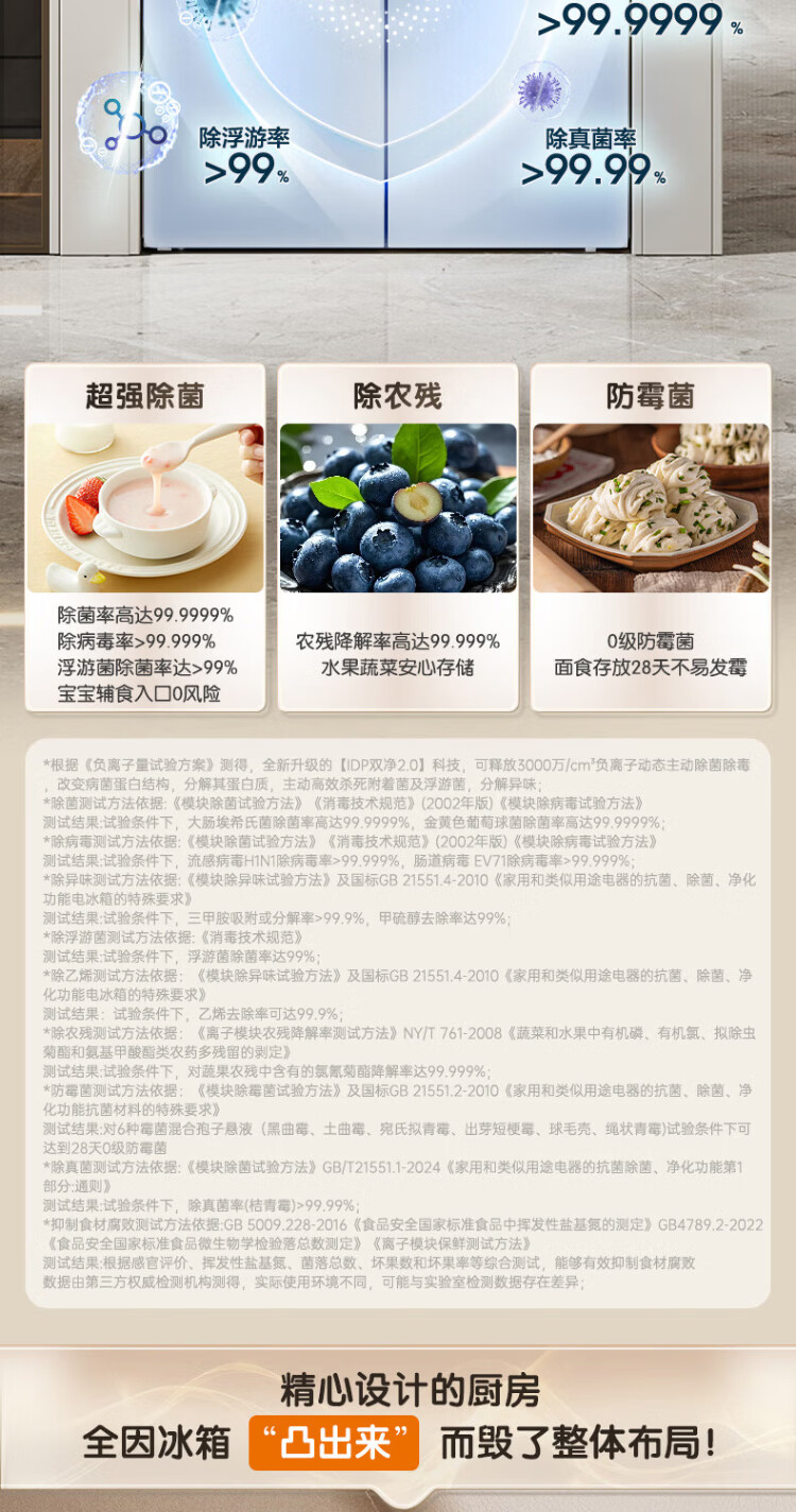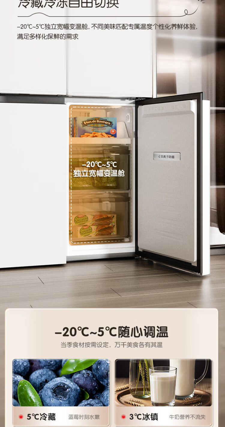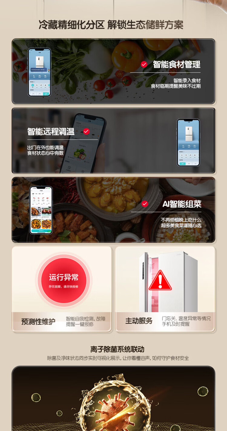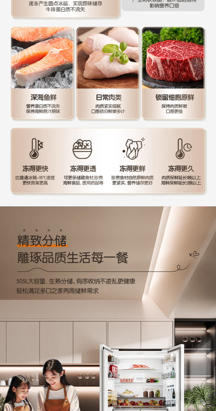 Rongsheng Cube Sugar 505L double-open four-open cross door dual-system circulation IDP active sterilization and deodorization ultra-thin zero-embedded first-class energy efficiency white refrigerator national subsidy World Cup Rongsheng Cube Sugar 505L double purification dual system white