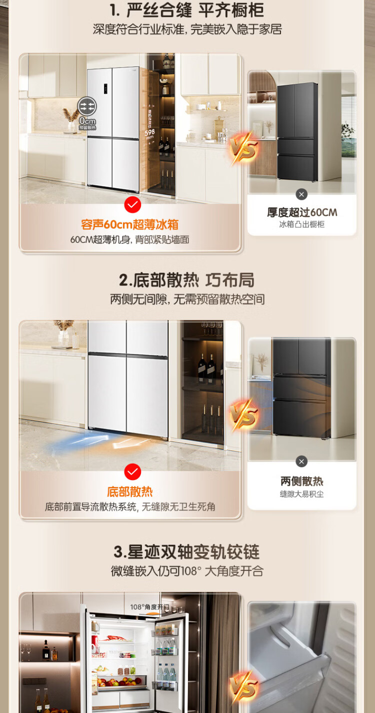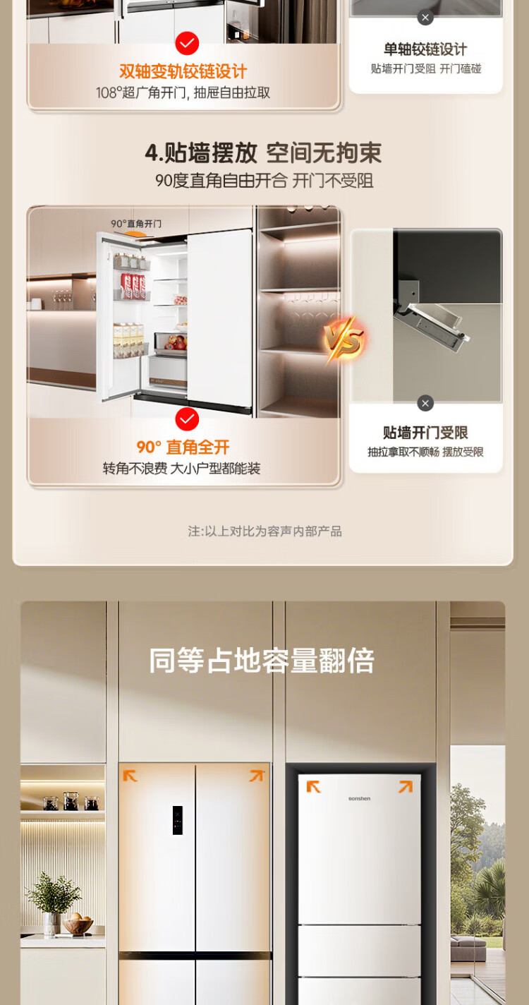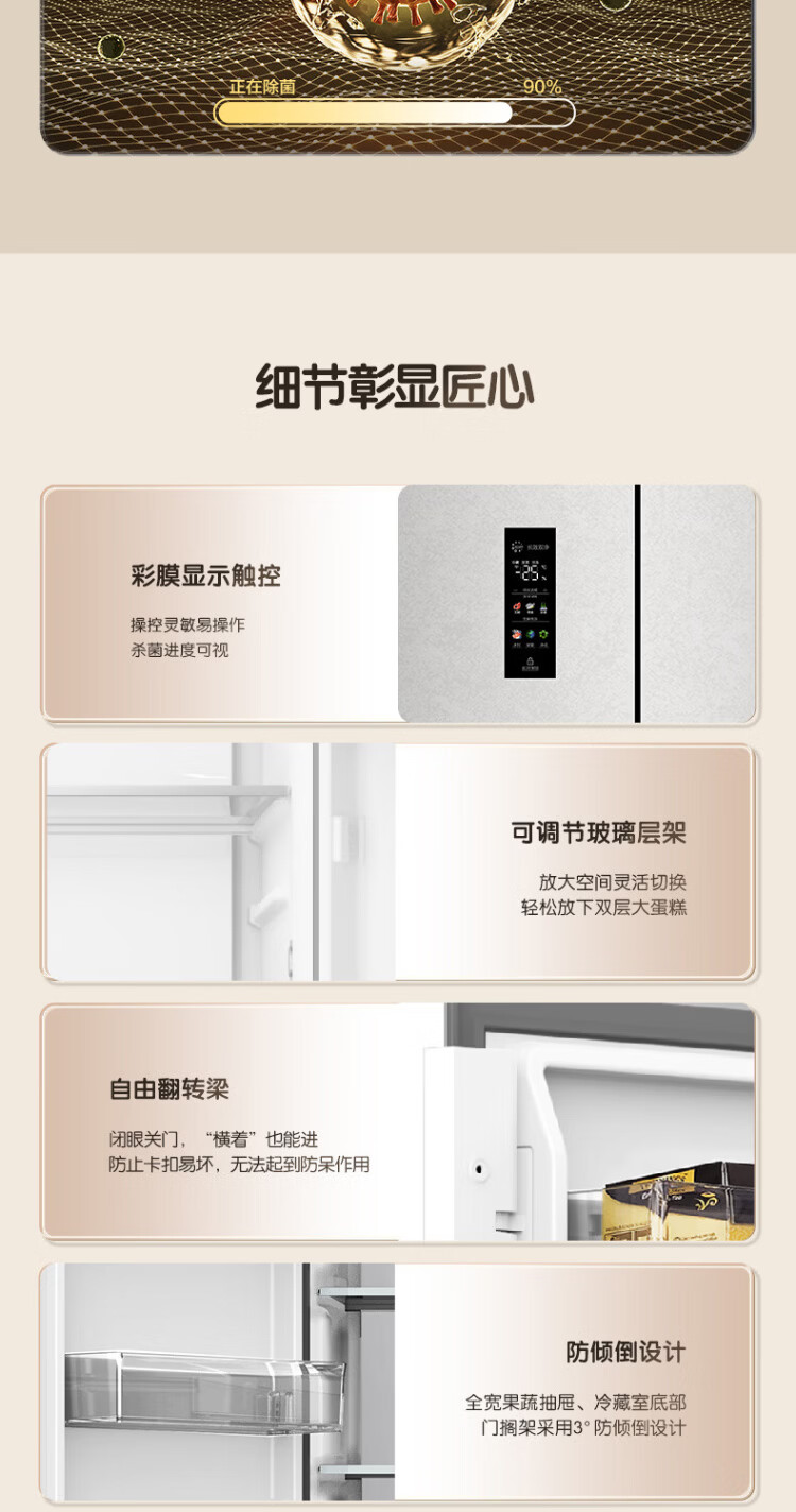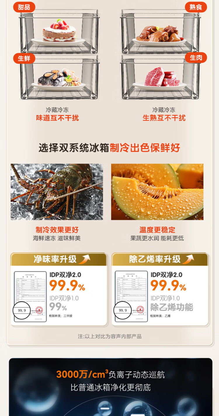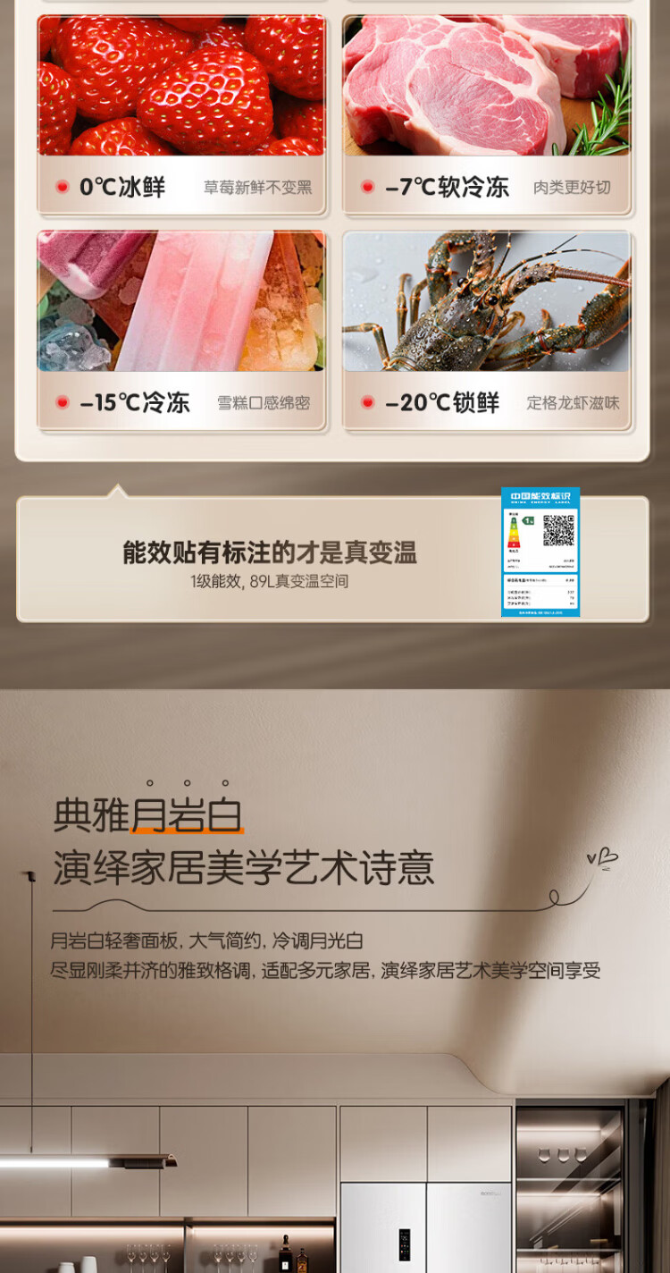Rongsheng Cube Sugar 505L double-open four-open cross door dual-system circulation IDP active sterilization and deodorization ultra-thin zero-embedded first-class energy efficiency white refrigerator national subsidy World Cup Rongsheng Cube Sugar 505L double purification dual system white