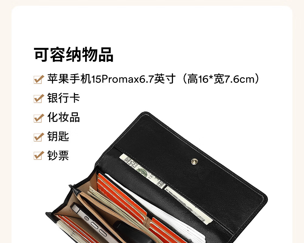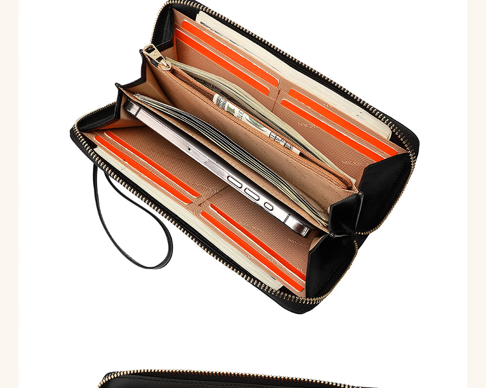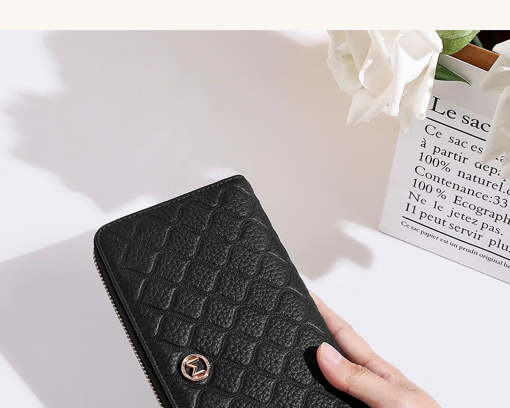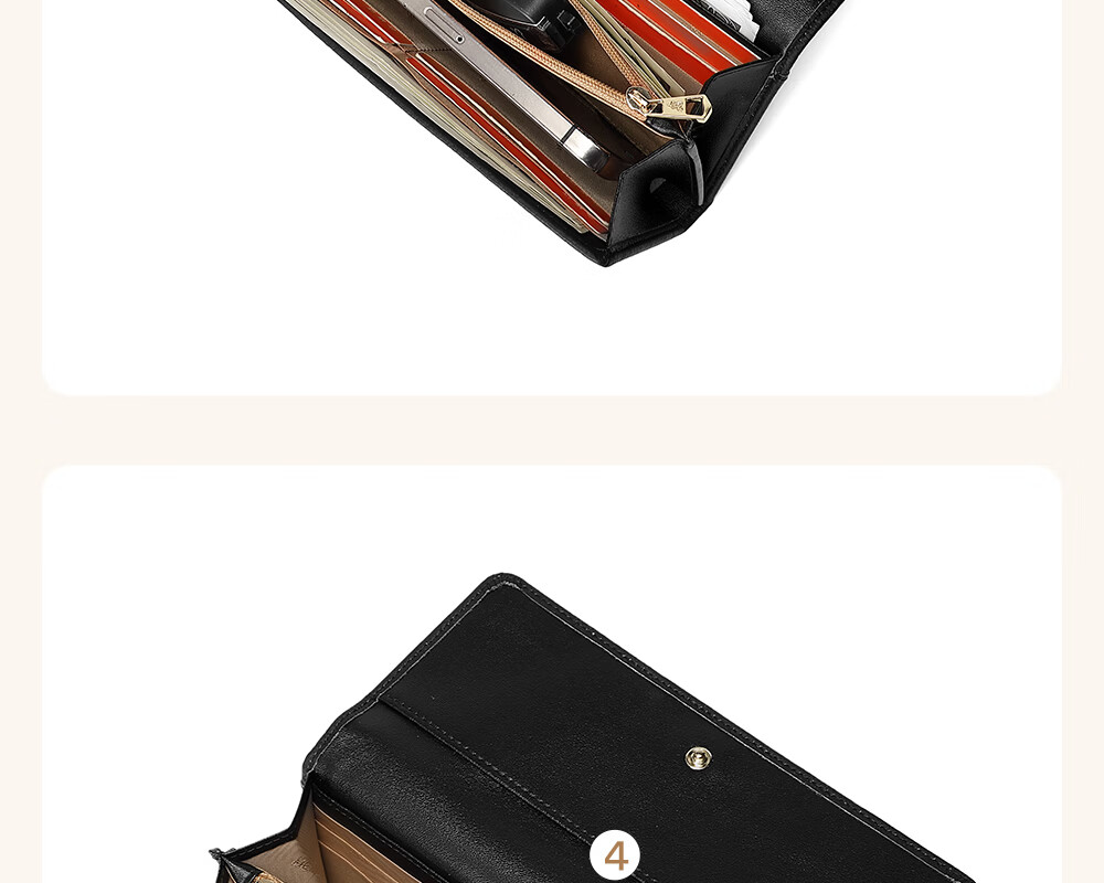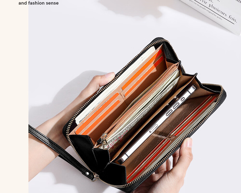 Scarecrow First Layer Cowhide Wallet Women's 2026 New Large Capacity Long Wallet Wallet Women's Card Bag High-end Clutch Black-A Wallet