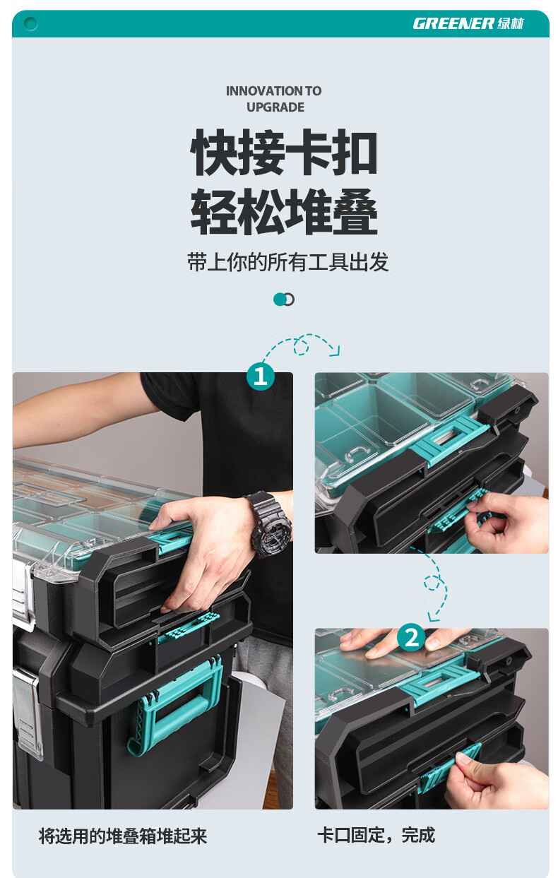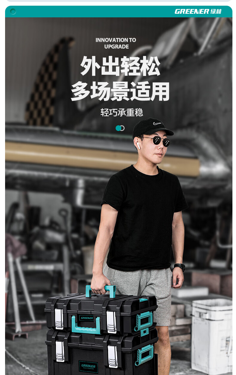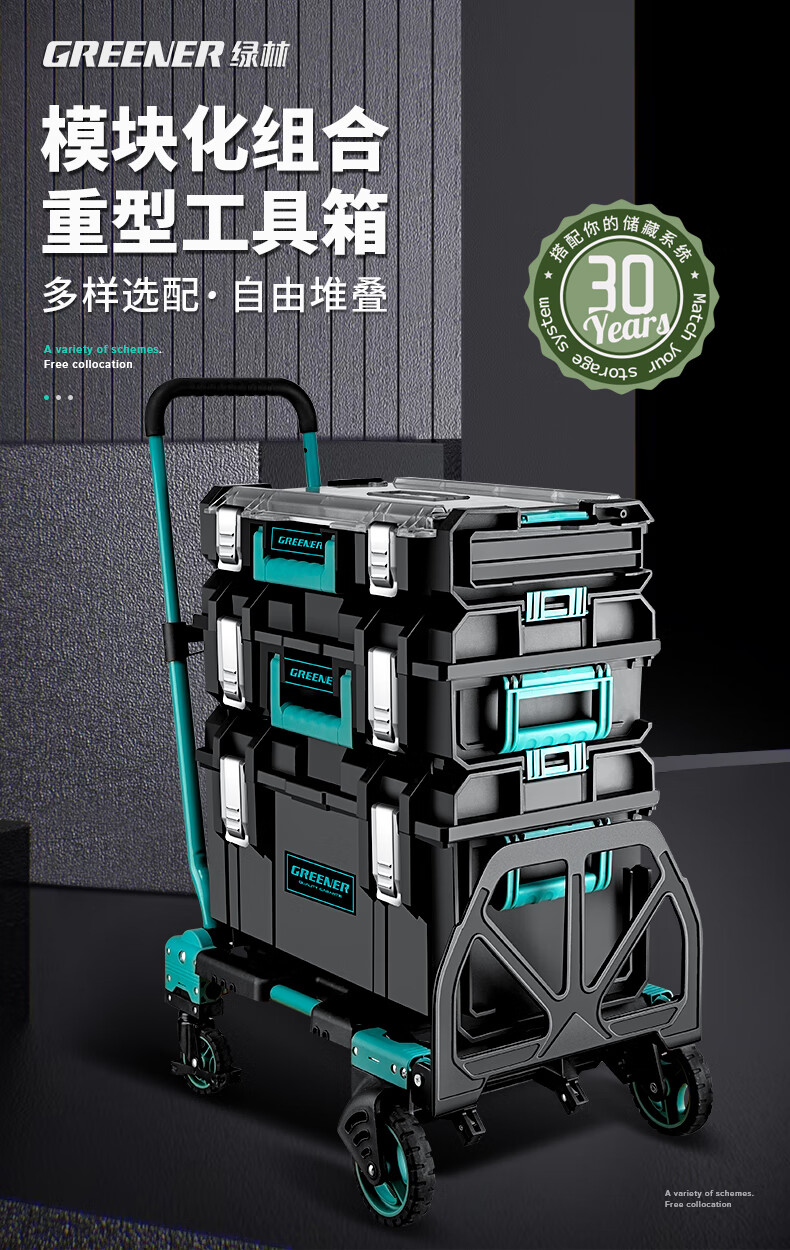 Green Forest large combined stacking hardware tool box storage and stacking multi-functional industrial-grade large-capacity set No. 4 trolley bottom box (can be combined at will)