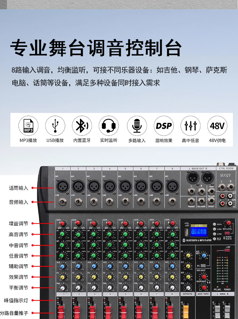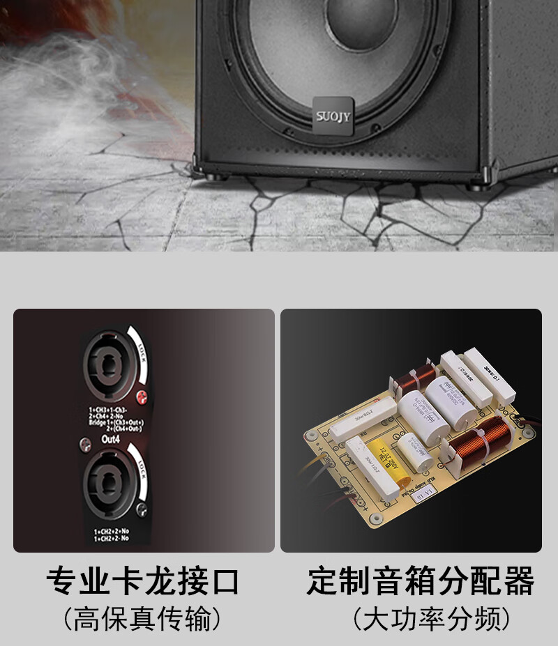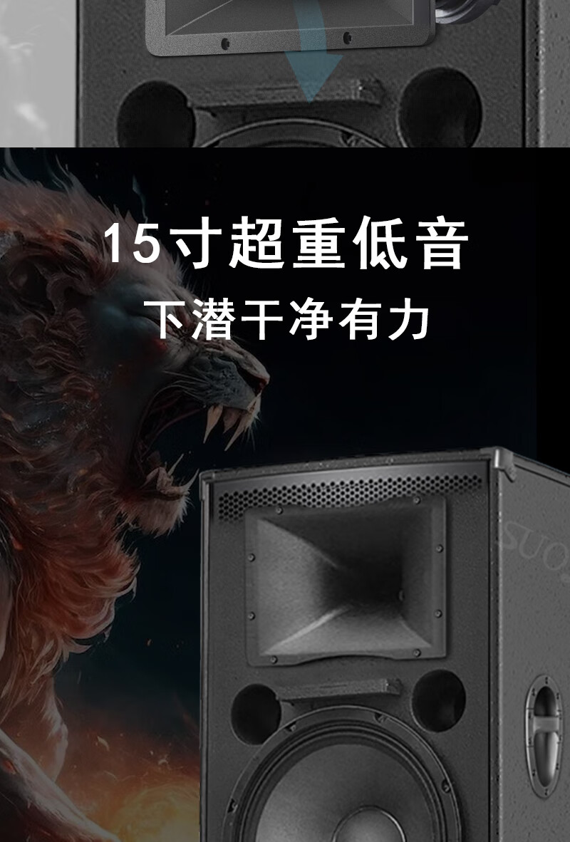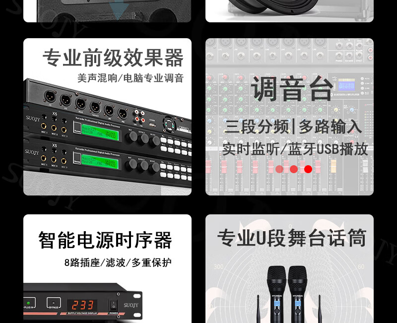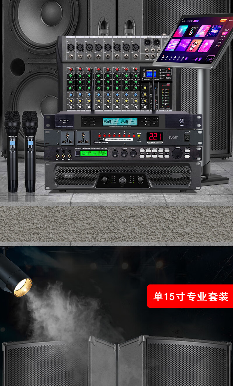 Suojiayin SUOJY double 15 professional stage performance audio set home commercial KTV speaker engineering indoor and outdoor universal wedding singing high-power dance karaoke bar conference subwoofer two 15-inch audio + amplifier + effector + karaoke machine set
