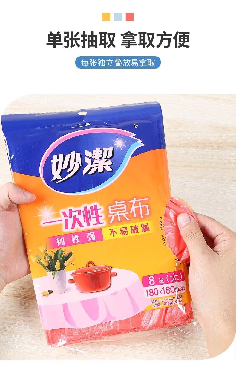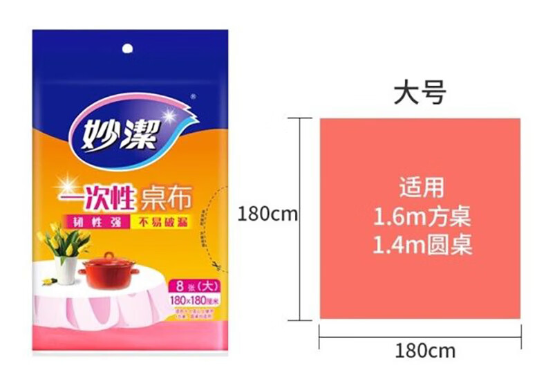 Miaojie disposable tablecloth square round table plastic film tablecloth red thickened extra large and medium table cover picnic cloth large red 16 sheets