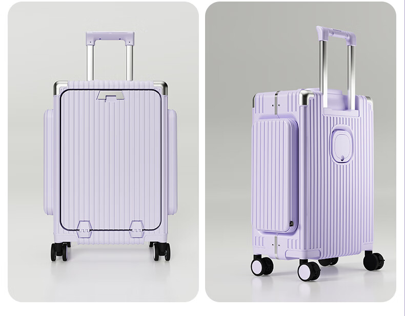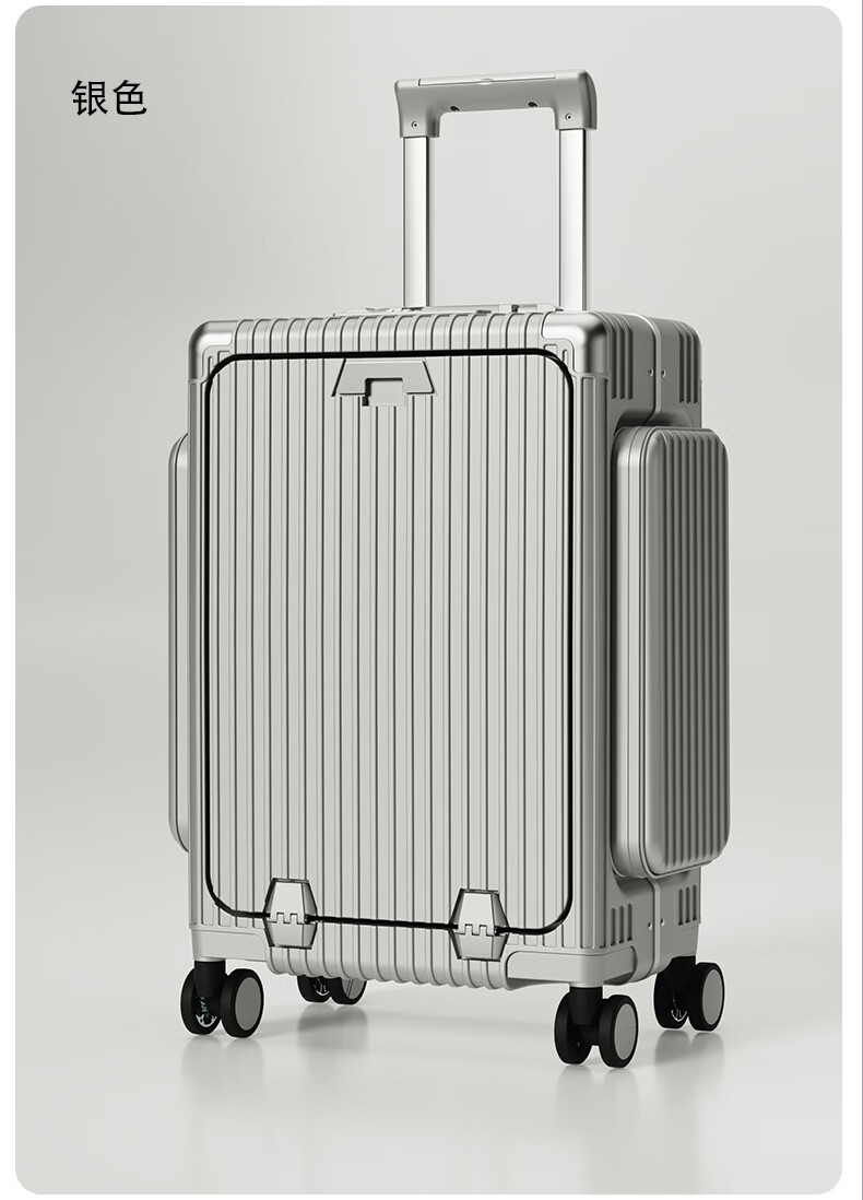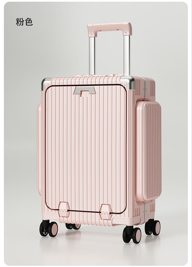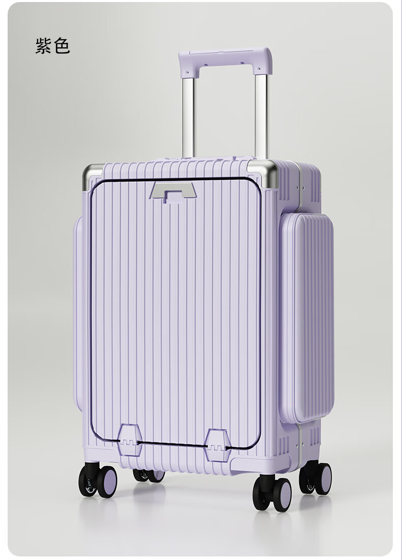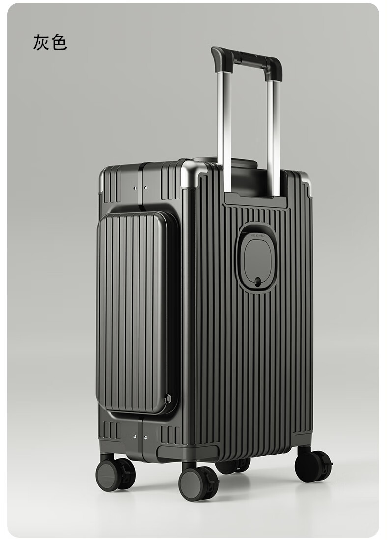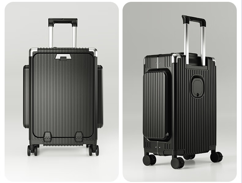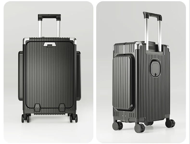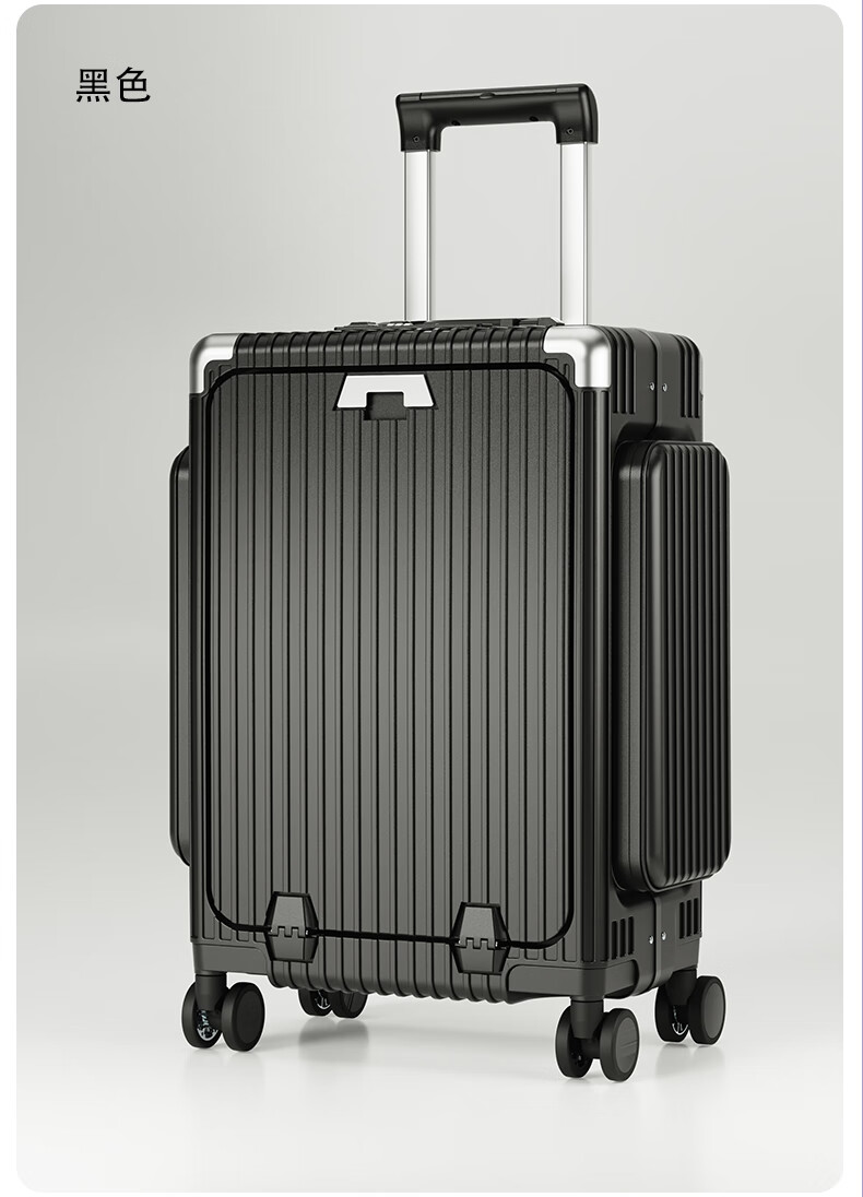 Minlu Paul multifunctional 20-inch suitcase trolley case can be boarded on the plane, front opening suitcase, large-capacity password box, black, innovative side bag + computer front compartment + brake wheel, 20-inch boarding case, can hold 15.6-inch computer