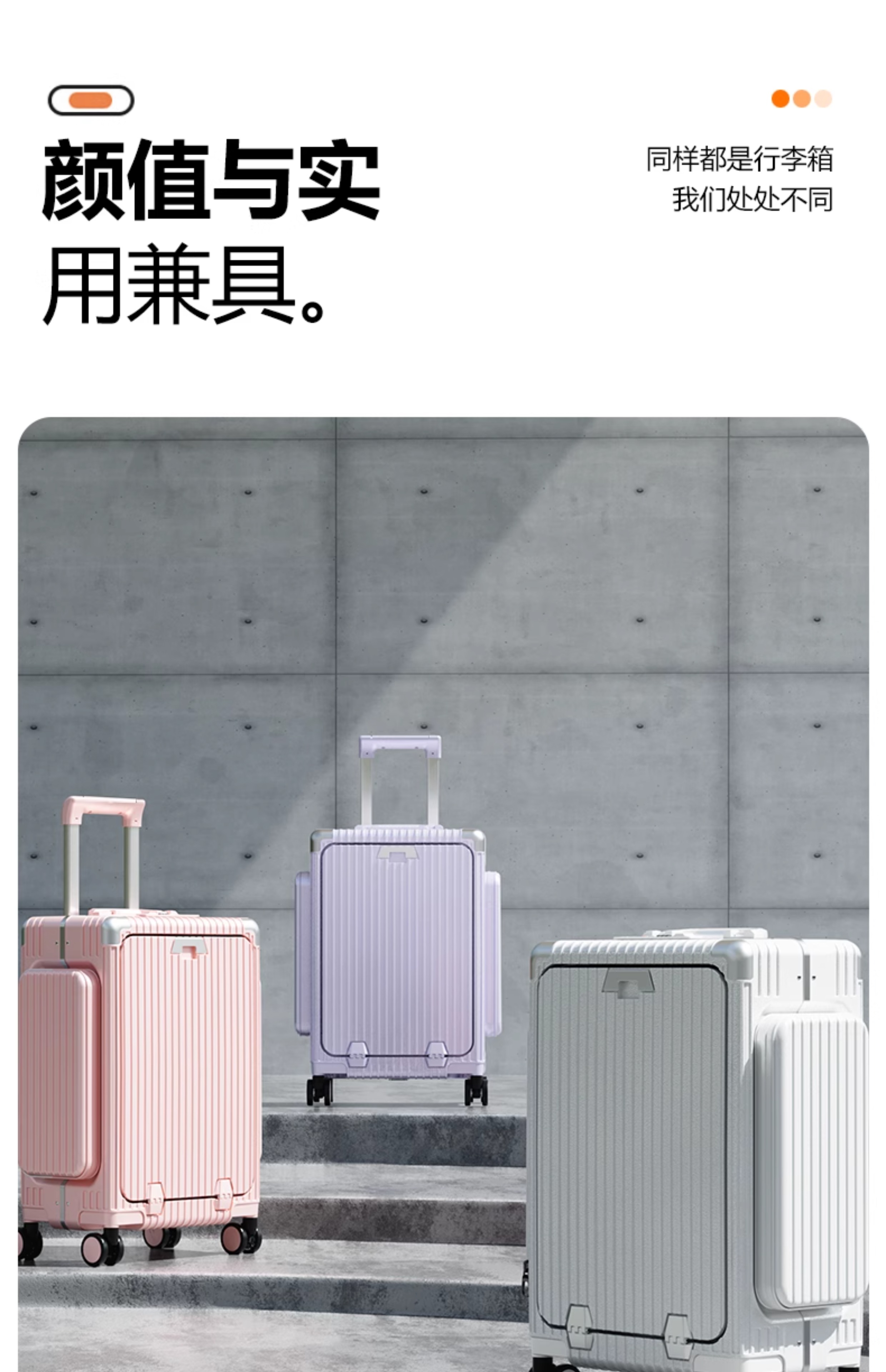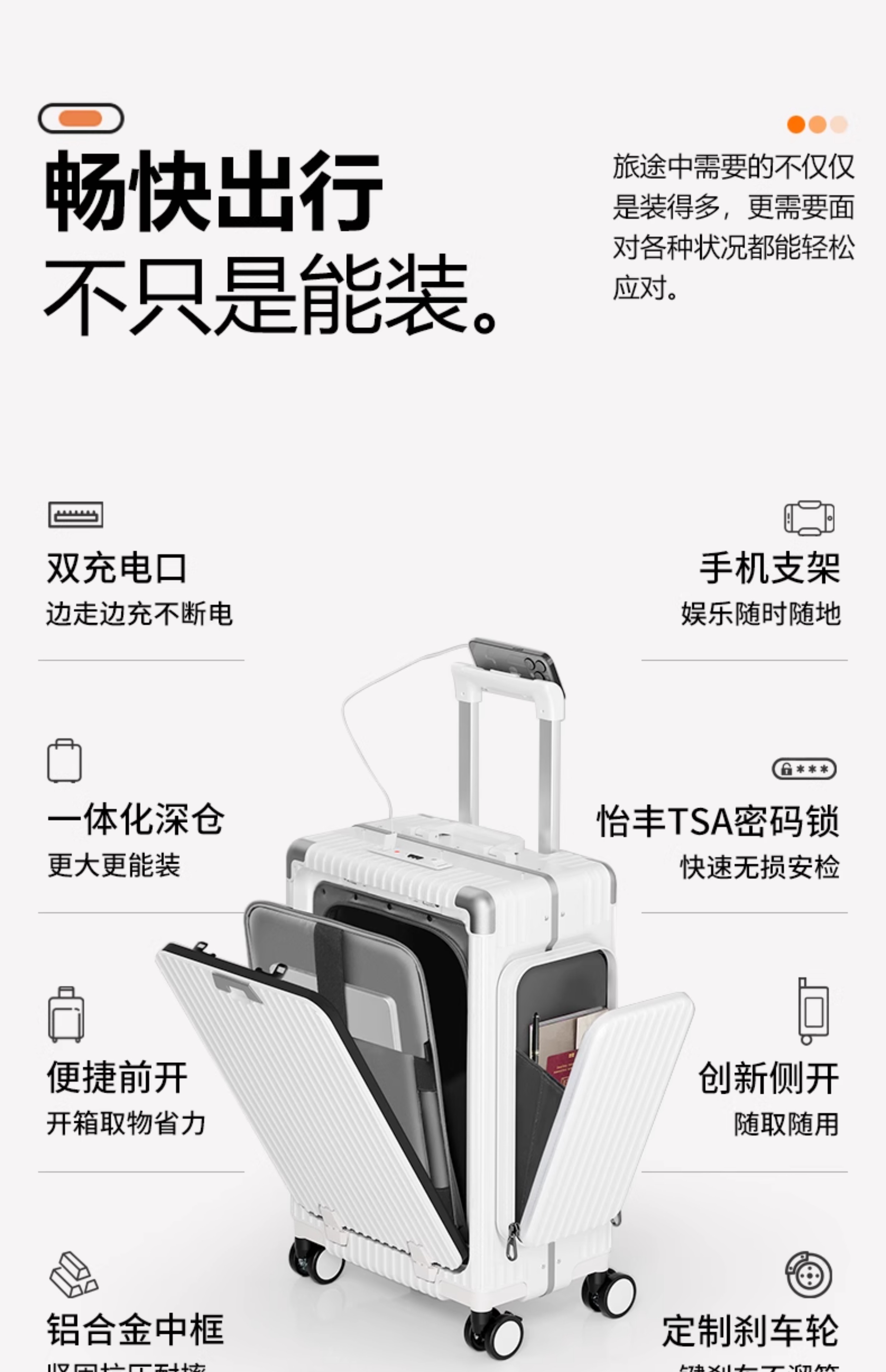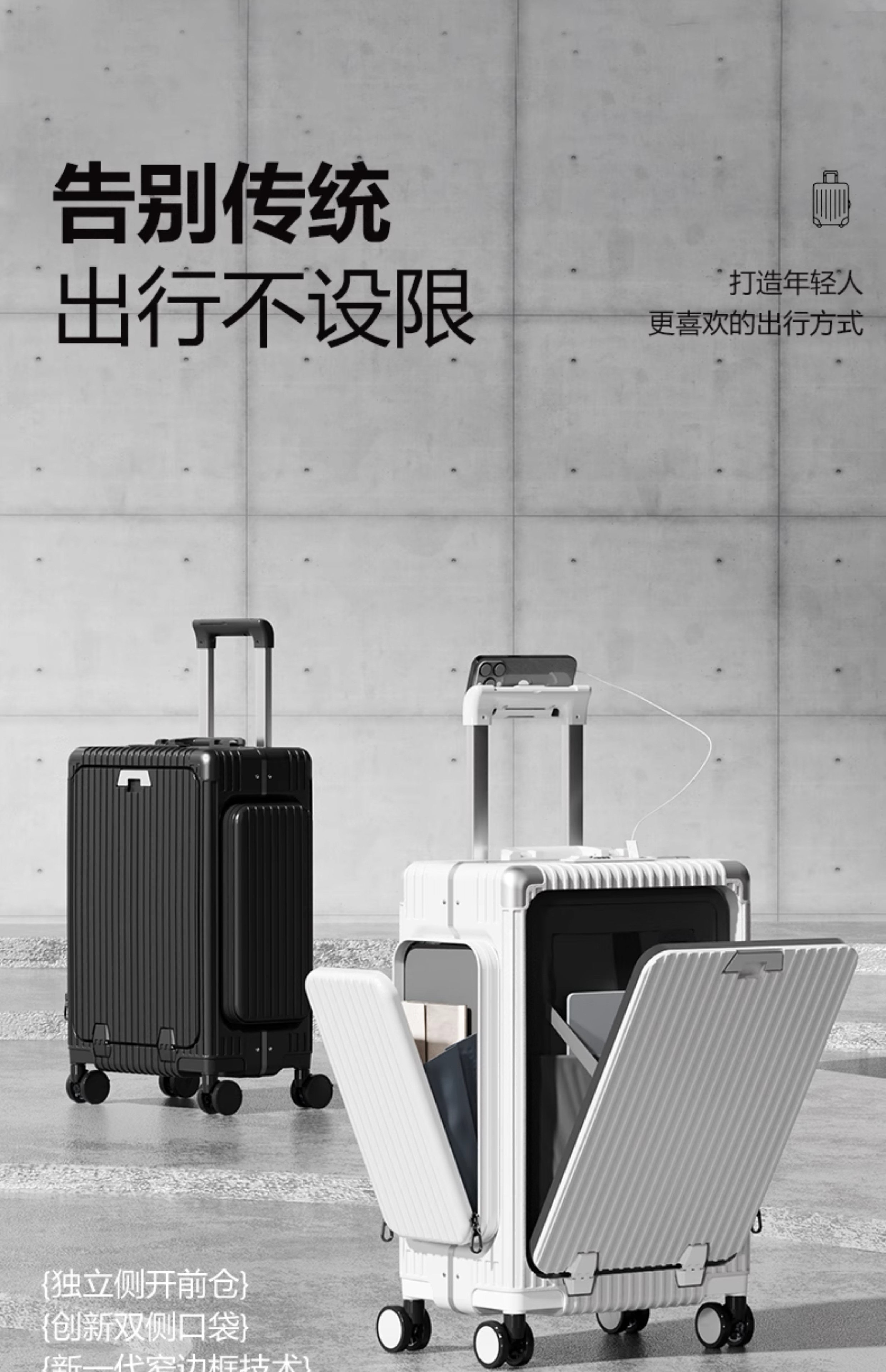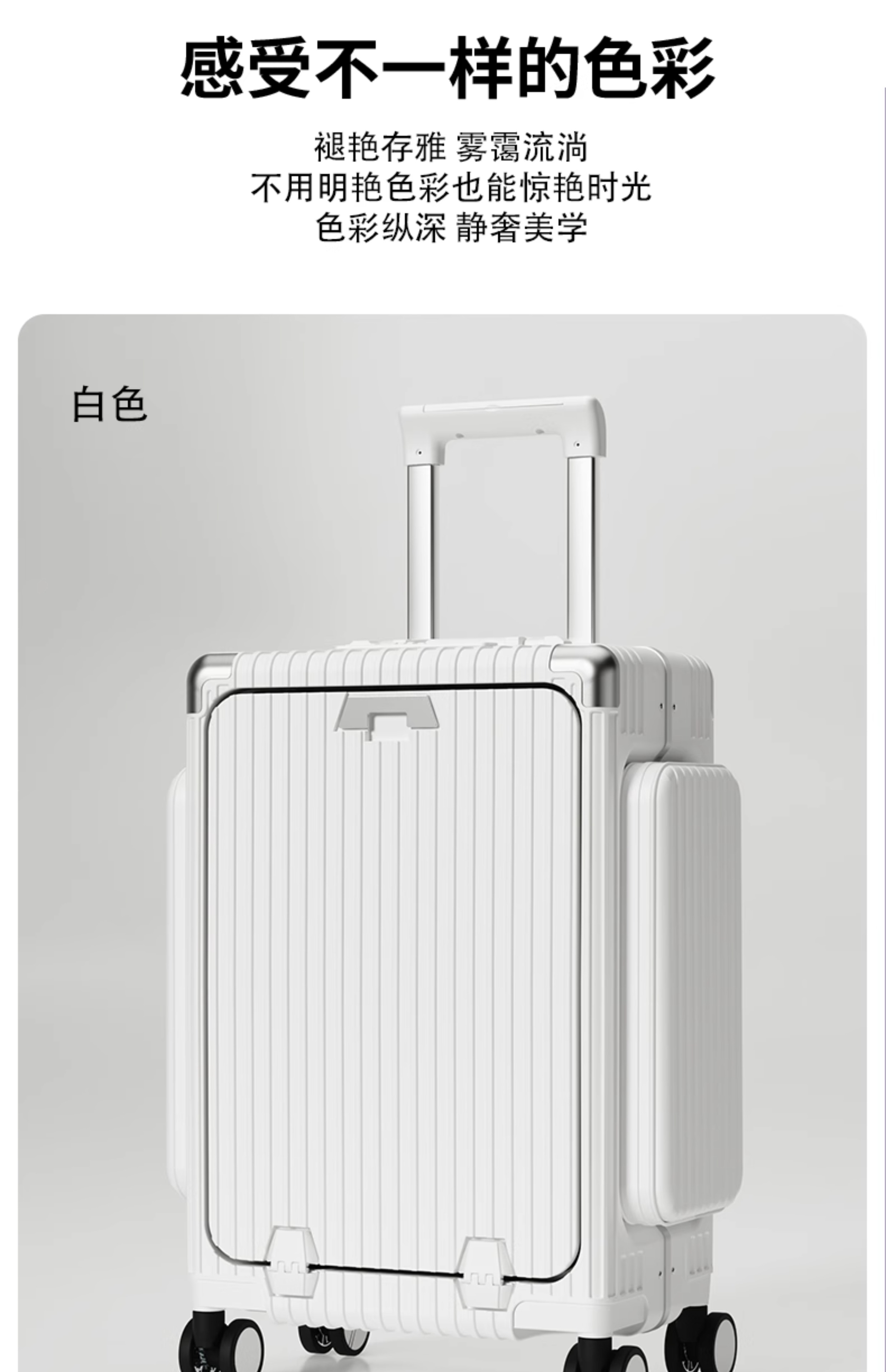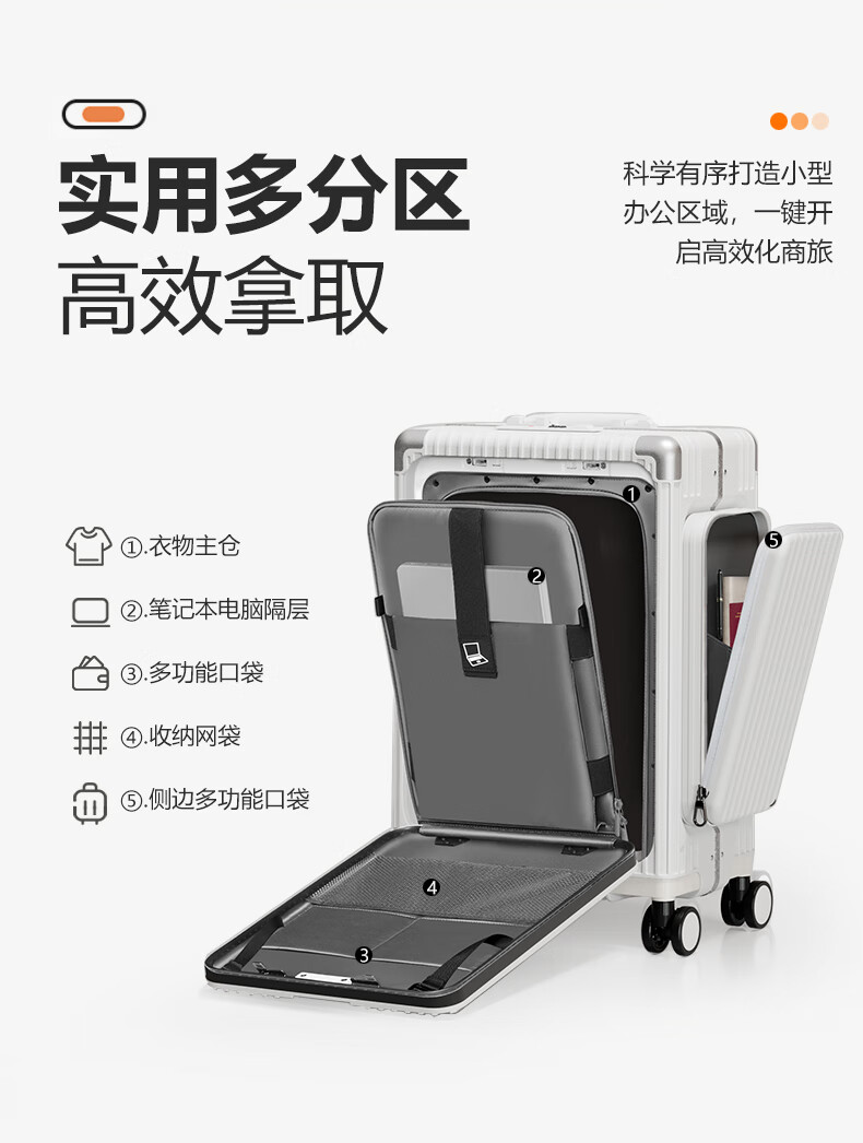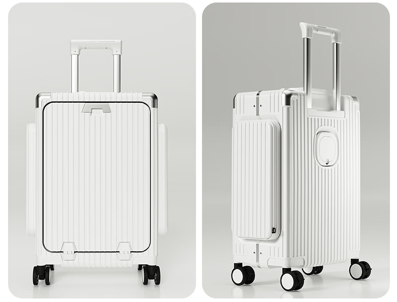 Minlu Paul multifunctional 20-inch suitcase trolley case can be boarded on the plane, front opening suitcase, large-capacity password box, black, innovative side bag + computer front compartment + brake wheel, 20-inch boarding case, can hold 15.6-inch computer
