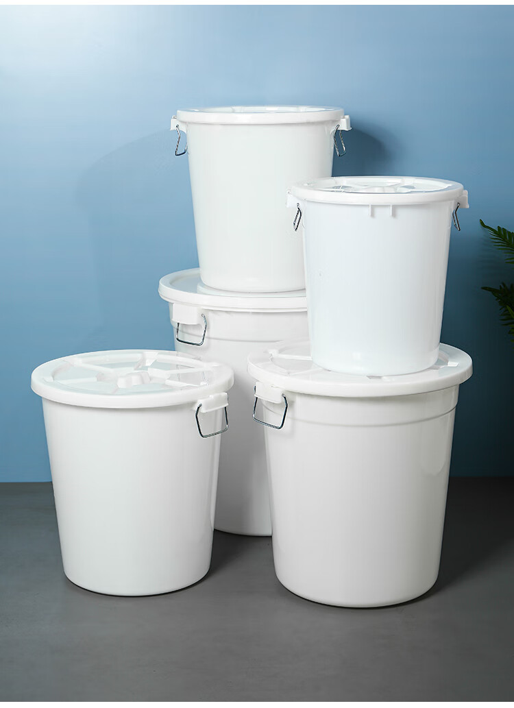 Large round trash can outdoor sanitation industrial thickened trash can commercial canteen kitchen special trash can 120 liter bucket (without lid) white