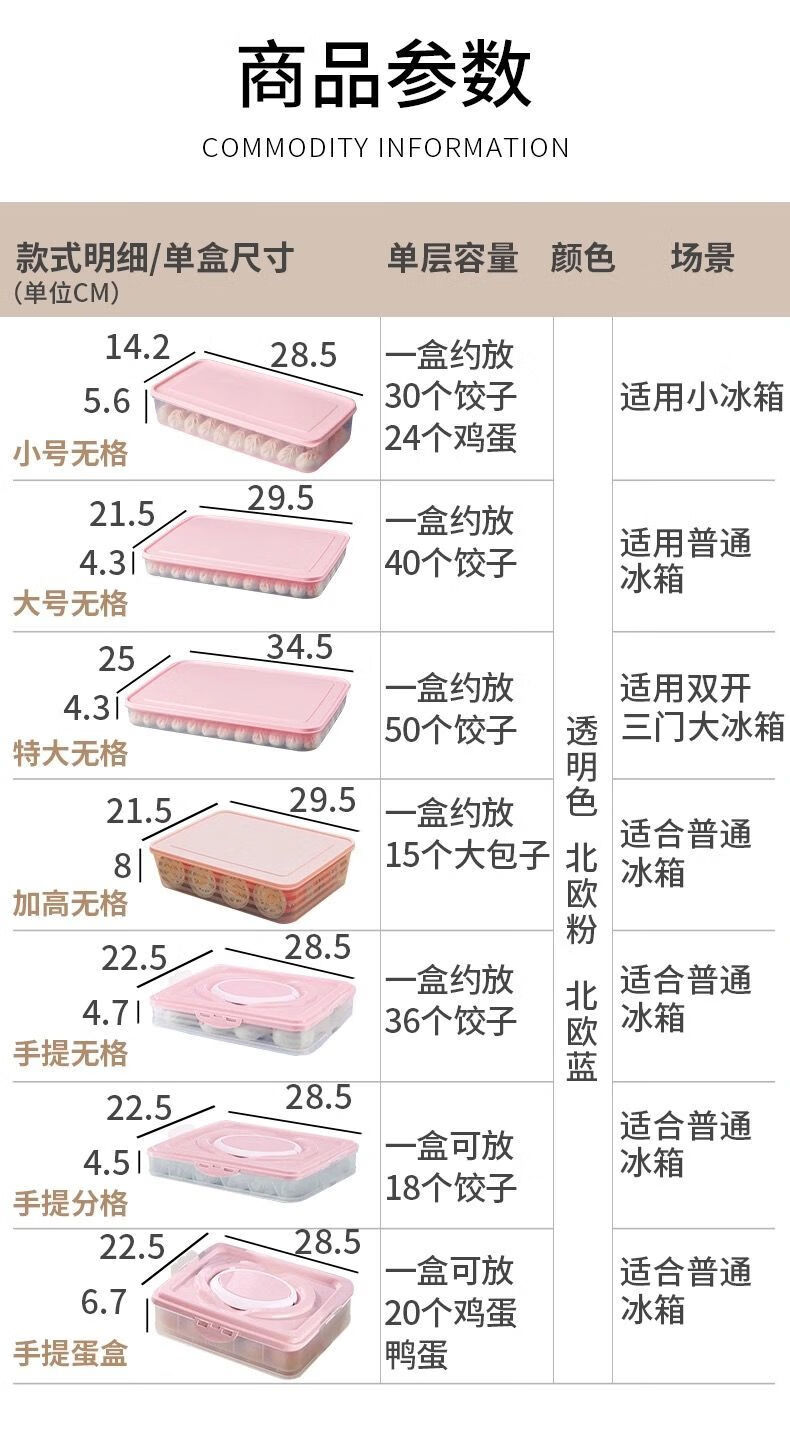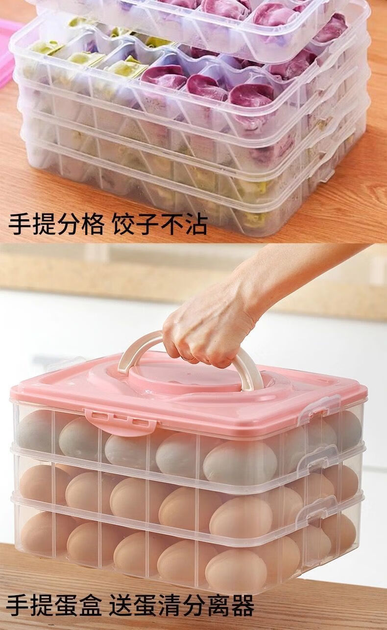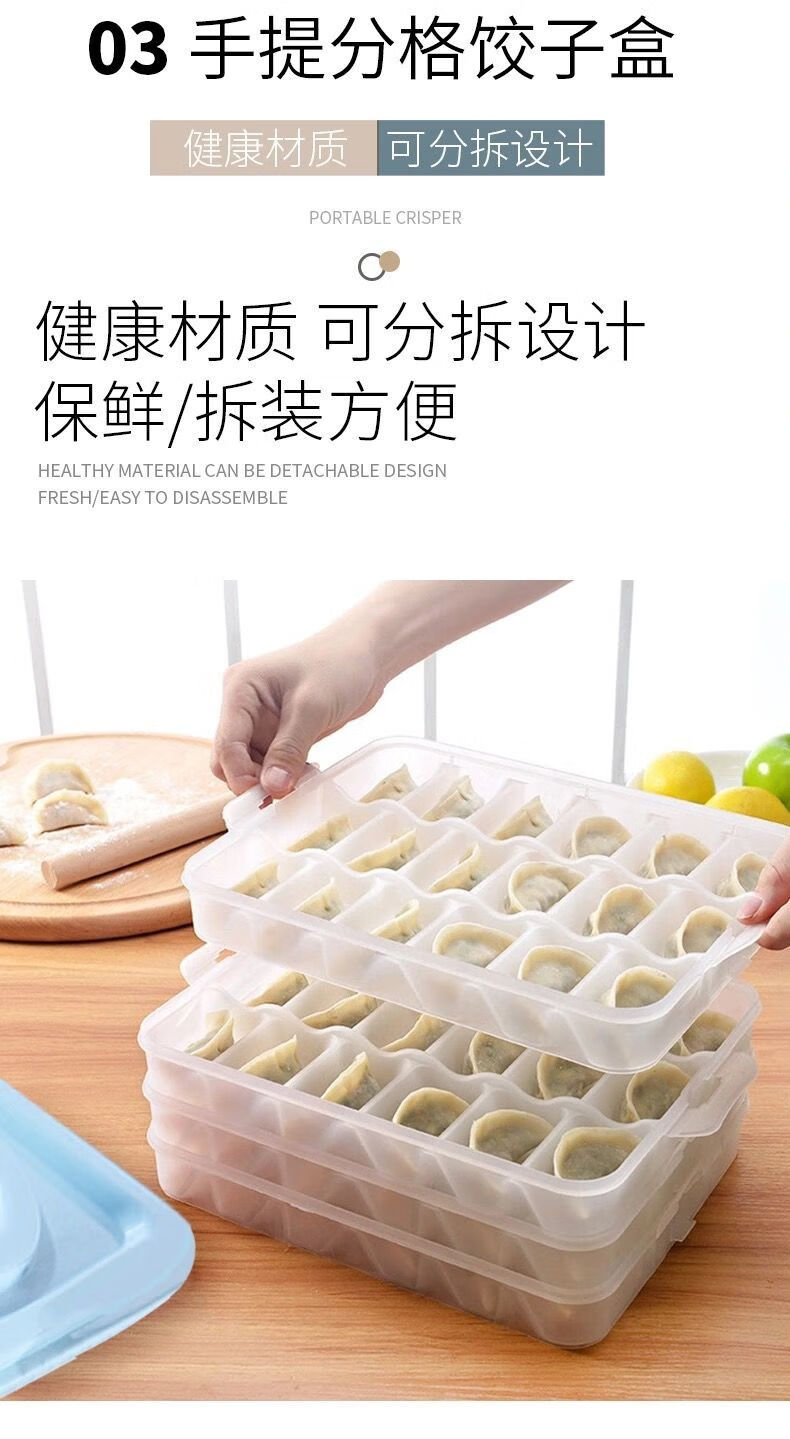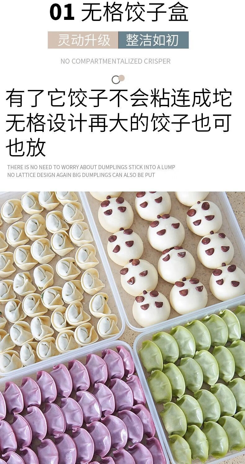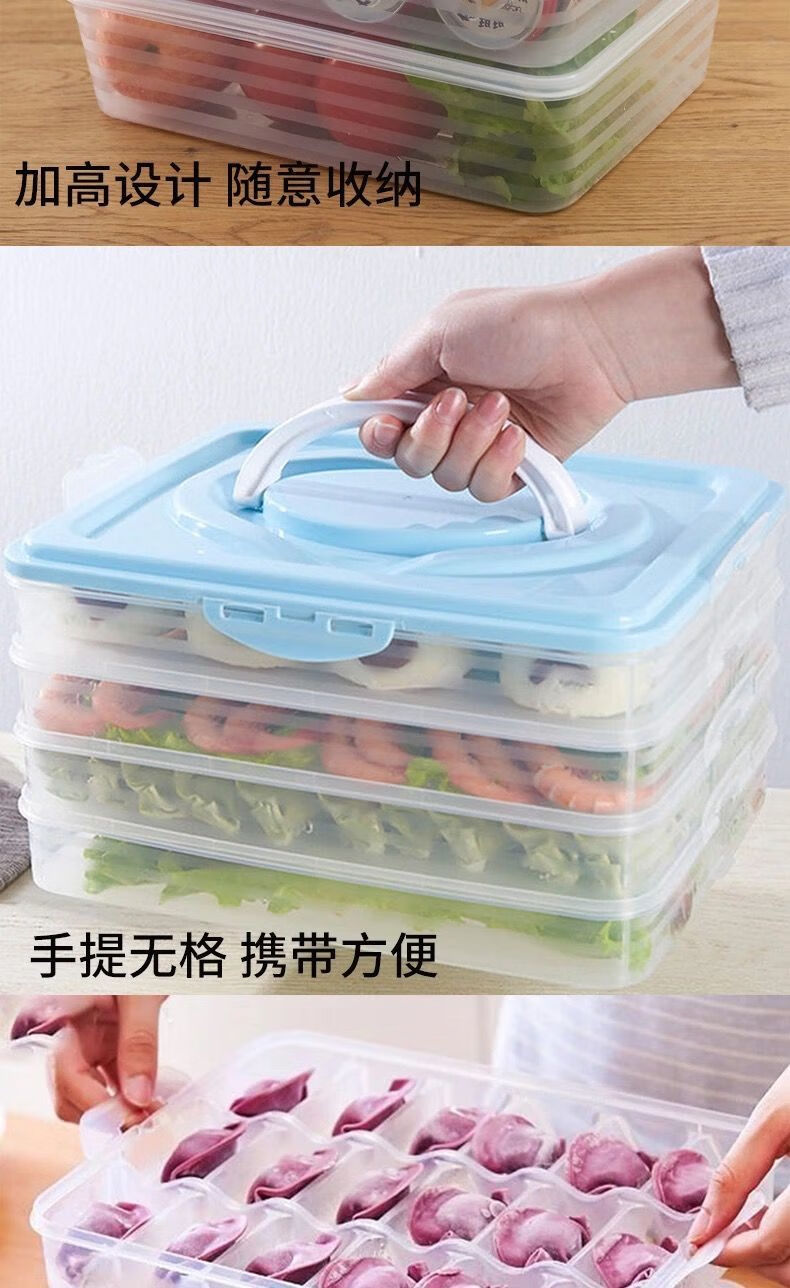 Baichao dumpling box large capacity extra large multi-layer kitchen household dumpling box refrigerator frozen storage box wonton box transparent color small size 1 box 1 lid