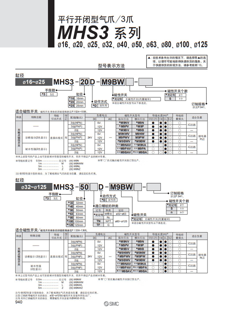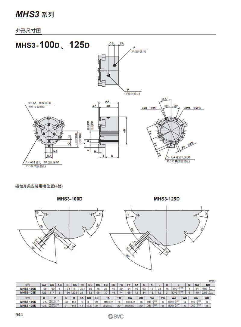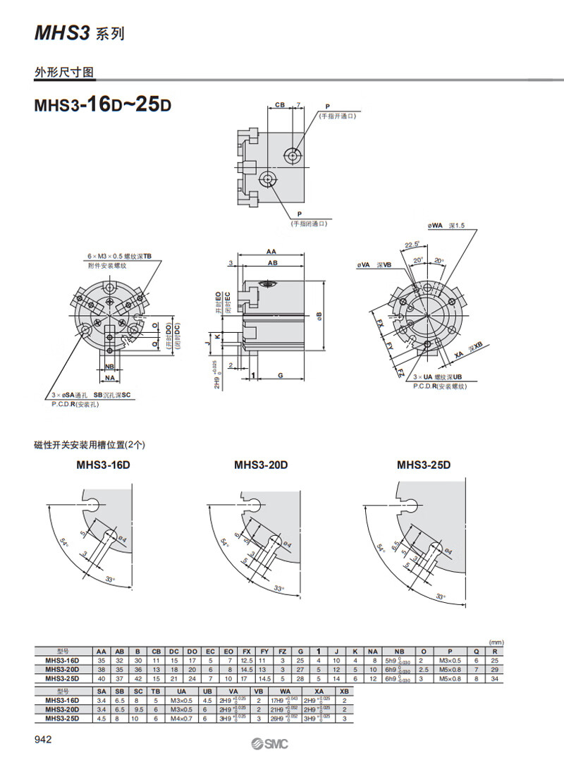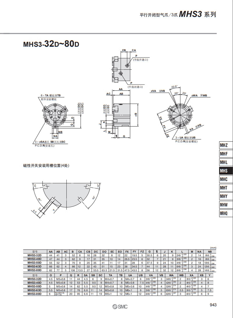Yue Changsheng SMC parallel opening and closing three-claw finger cylinder MHS3-16D20D32D40D50D63D80D100D MHS3-40D