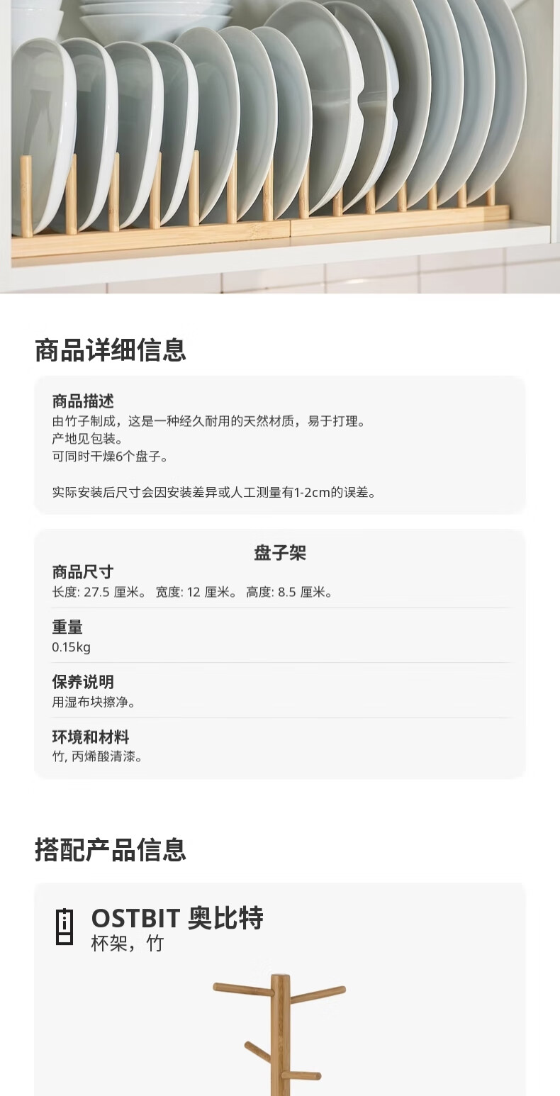 IKEA (IKEA) OSTBIT plate rack bamboo storage rack kitchen storage rack multi-functional shelf artifact plate rack bamboo