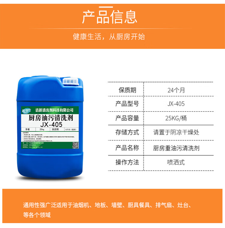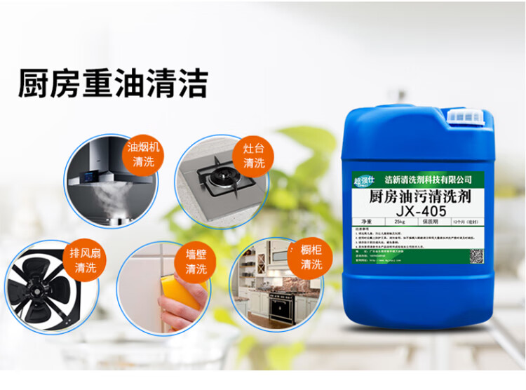 Kitchen heavy oil stain cleaning agent, hotel range hood, industrial machinery and equipment, powerful floor oil removal cleaner, heavy oil stain cleaning agent JX-405 2.5kg