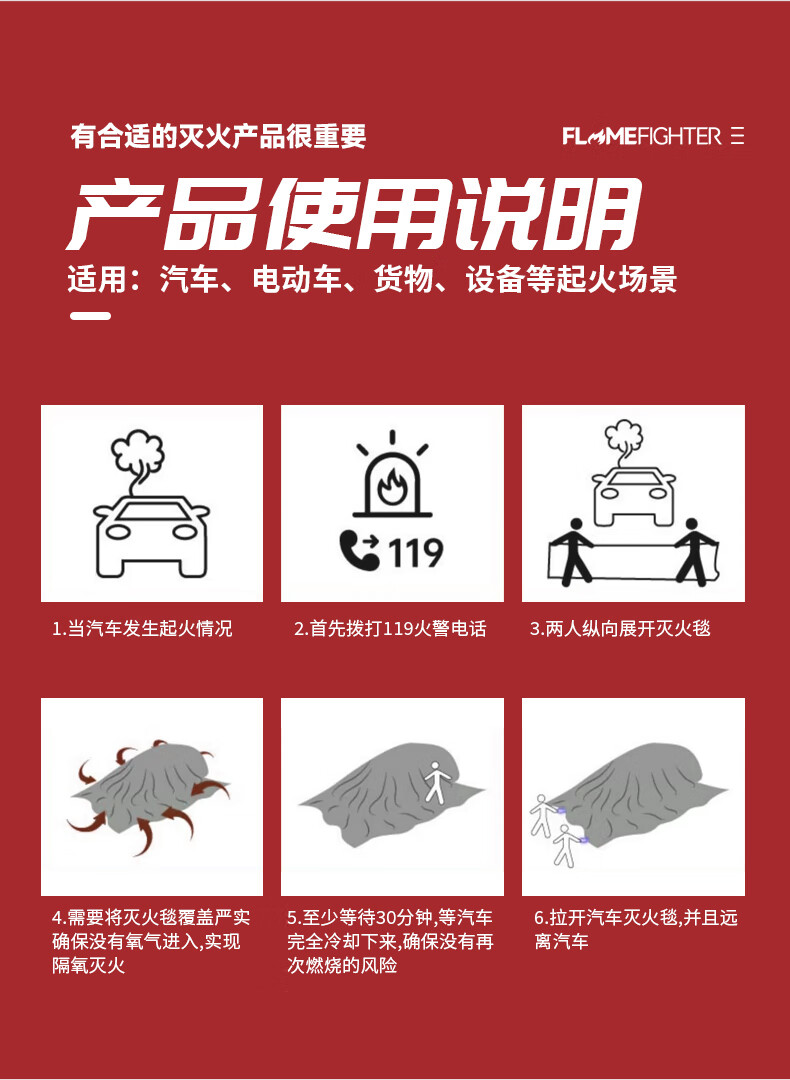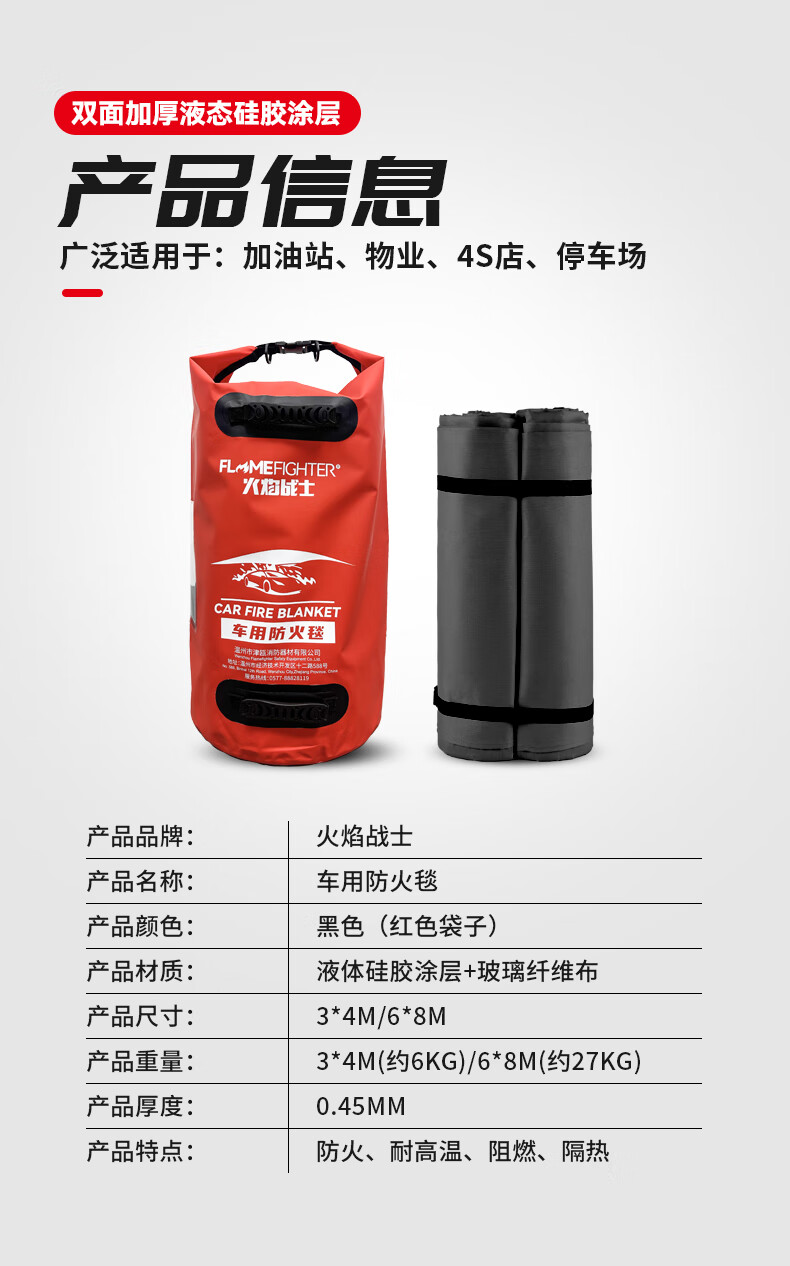 Flame Warrior Fire Blanket Silicone Train-proof Clothing for Electric Vehicles, Car Fire Stations, Parking Lots, 6 Meters, 8 Meters, Silicone Train-proof Clothing, Suitable for Cars_SUV