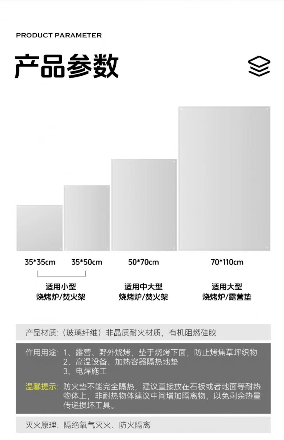 Flame Warrior outdoor camping fireproof mat camping cloth flame retardant high temperature insulation picnic barbecue silicone fire extinguishing blanket fireproof mat 35*35