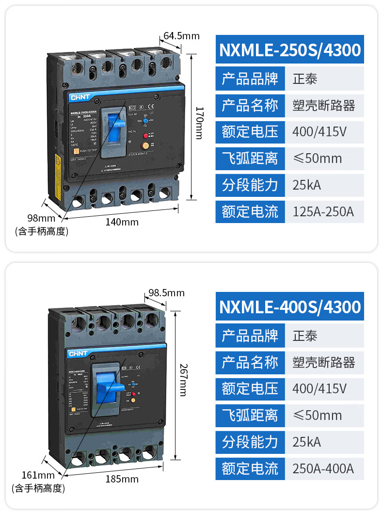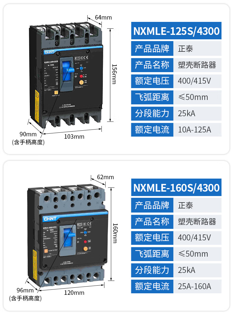 Leakage circuit breaker NXMLE-125S/4300A 125A 100A three-phase four-wire leakage protection 400A 4p