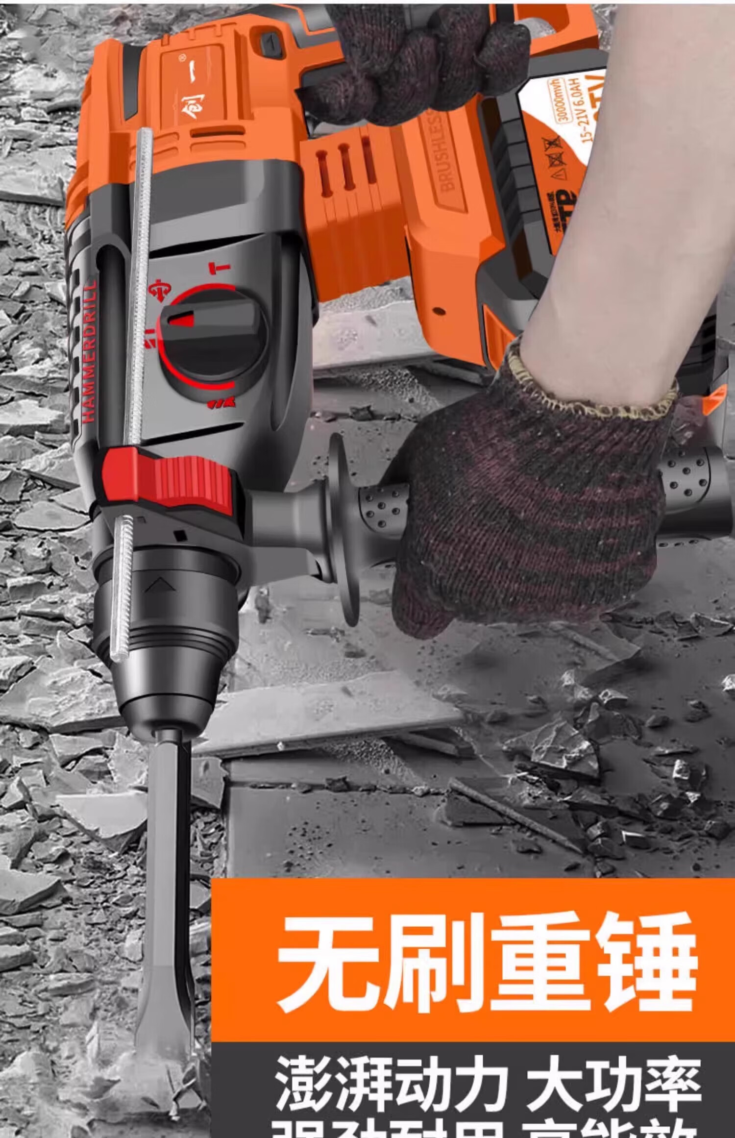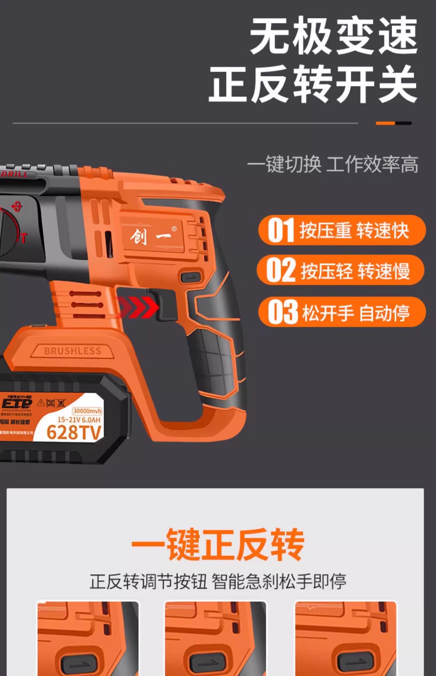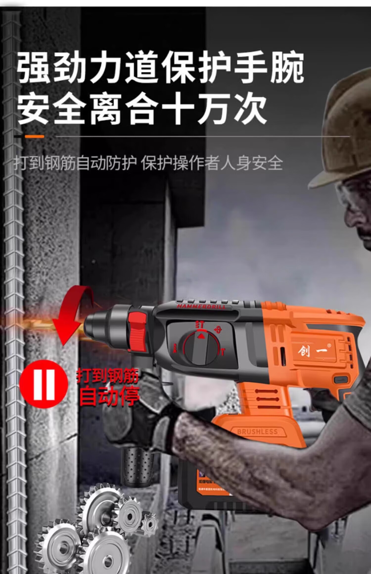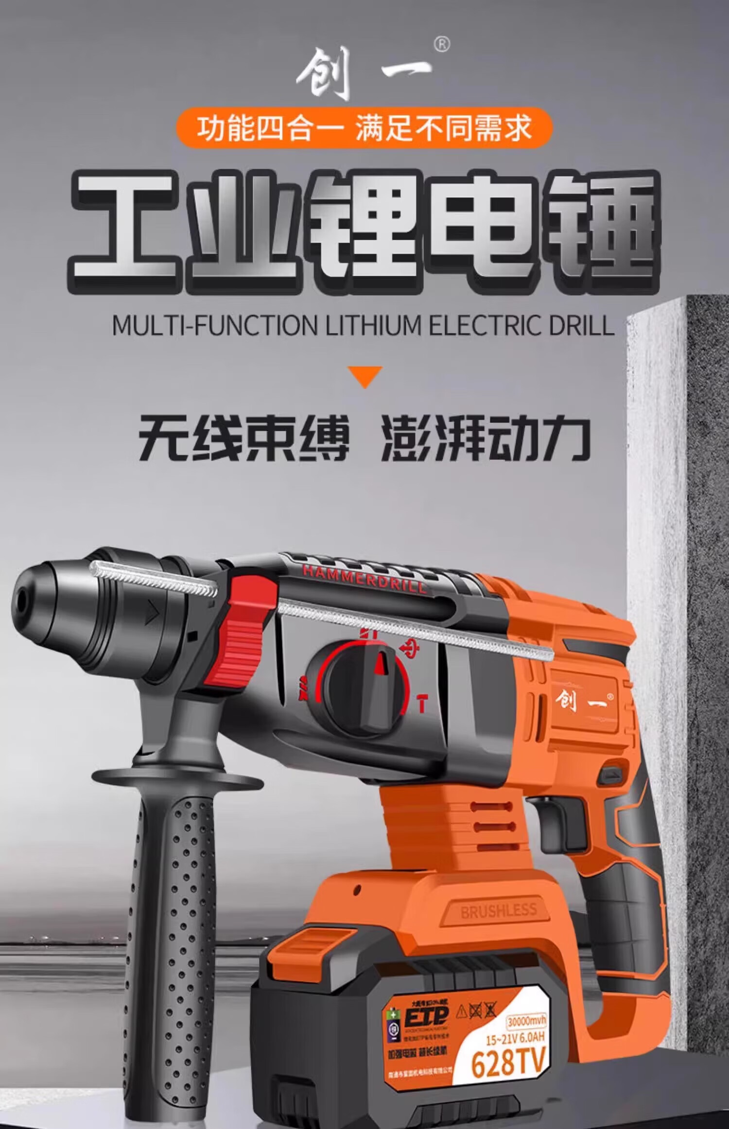 Chuangyi Rechargeable Electric Hammer Impact Drill Lithium Electric 21V Lithium Electric Hammer Electric Pickaxe Drill Three-use Light High Power Concrete 21V Classic Model 4.0AH+ Single Electric High Configuration
