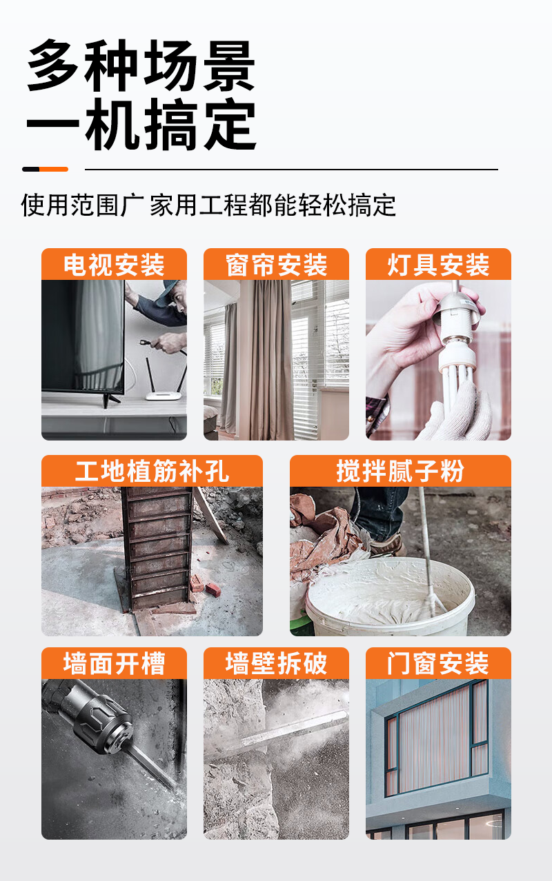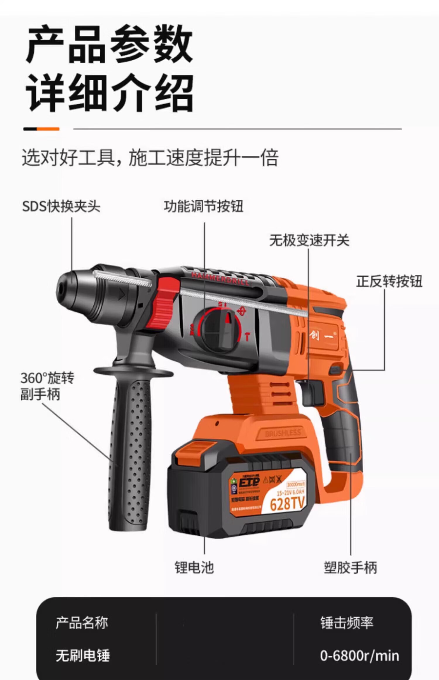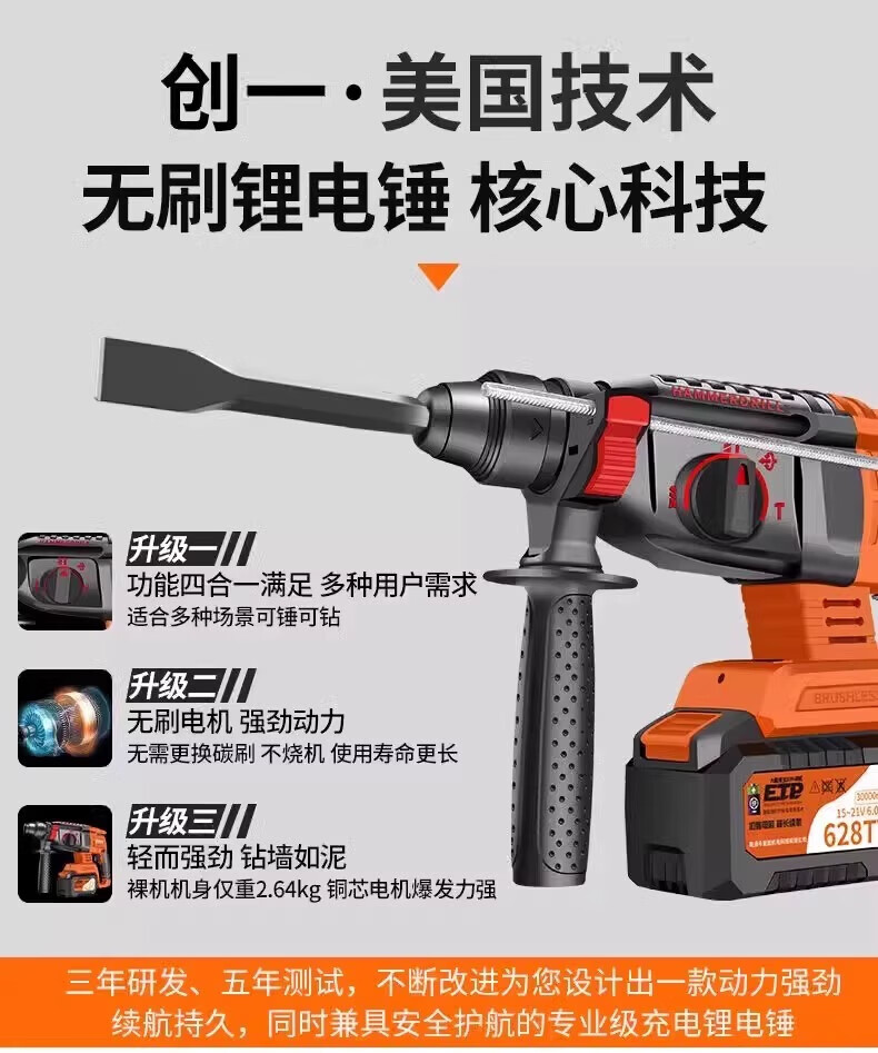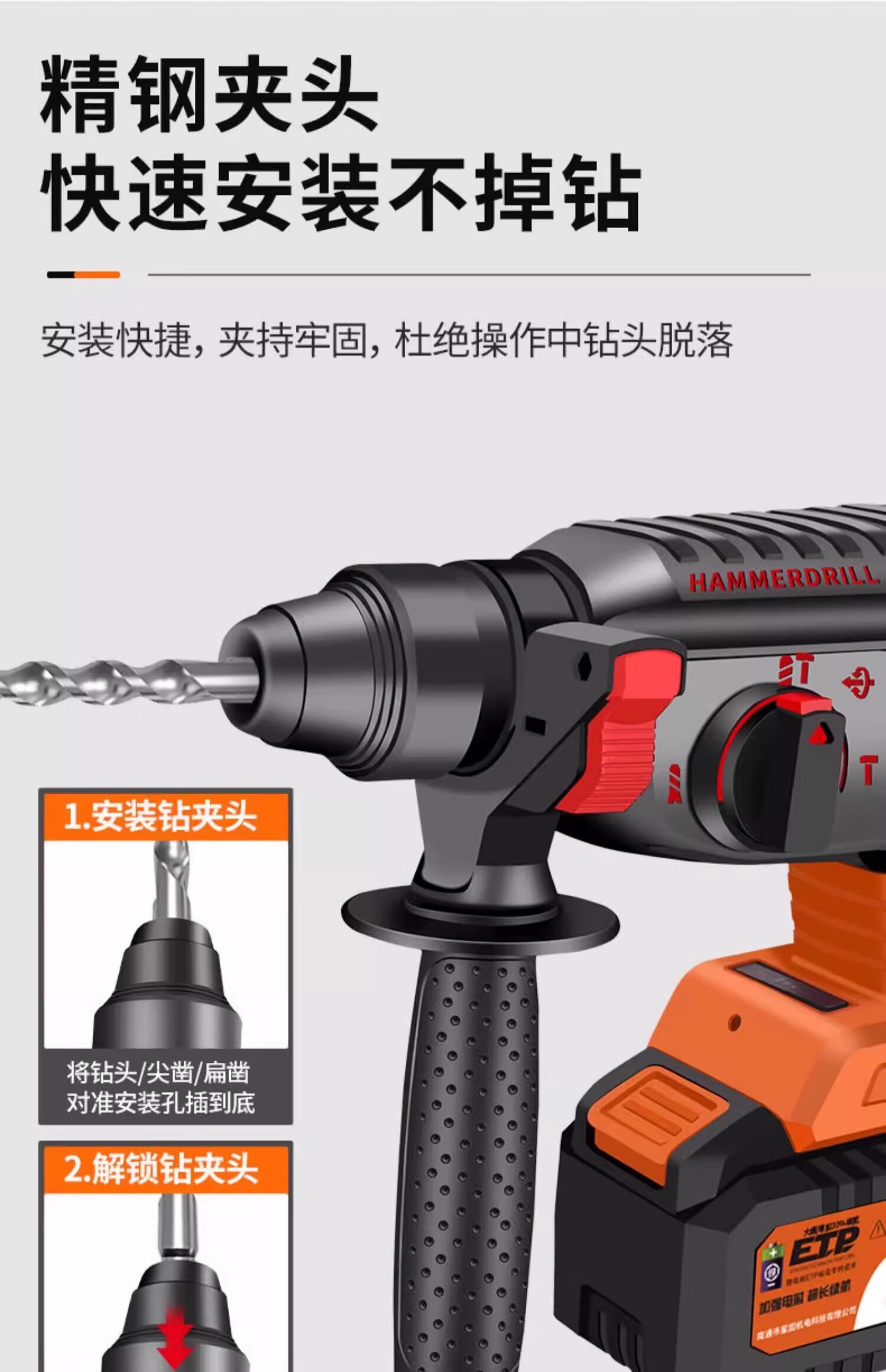 Chuangyi Rechargeable Electric Hammer Impact Drill Lithium Electric 21V Lithium Electric Hammer Electric Pickaxe Drill Three-use Light High Power Concrete 21V Classic Model 4.0AH+ Single Electric High Configuration