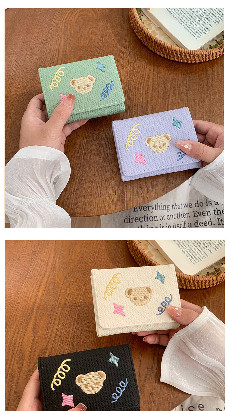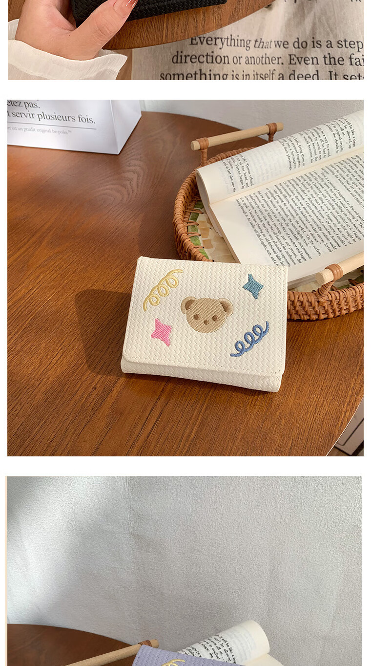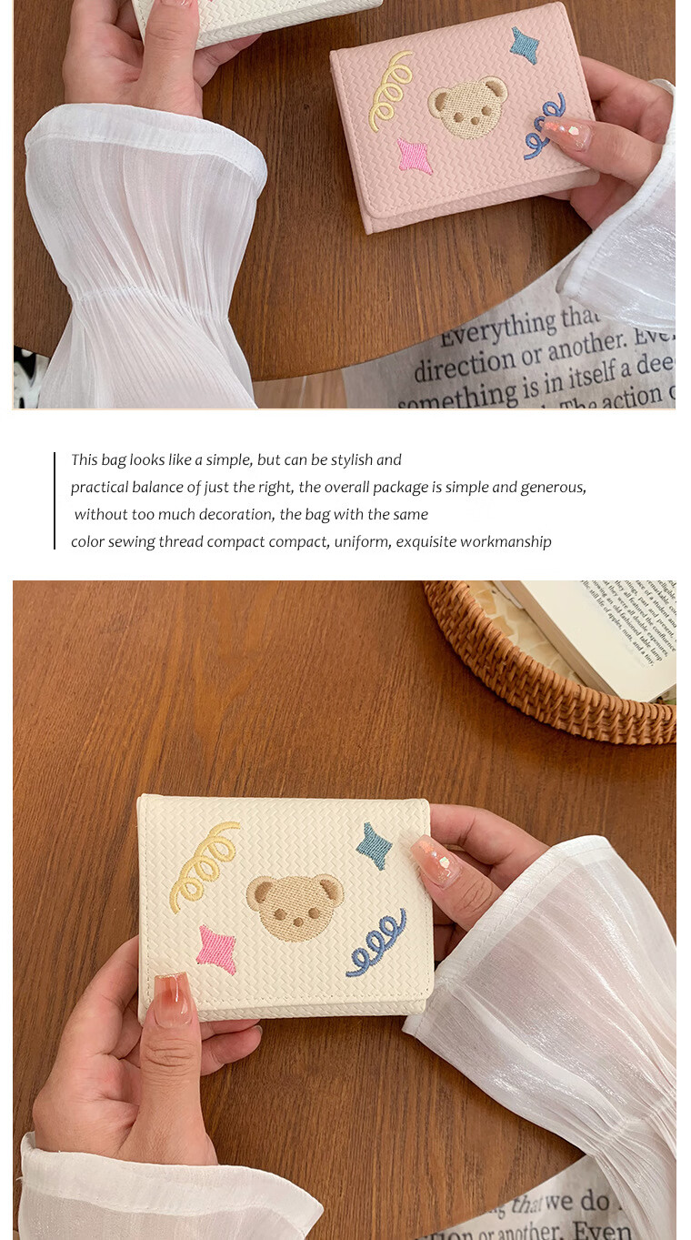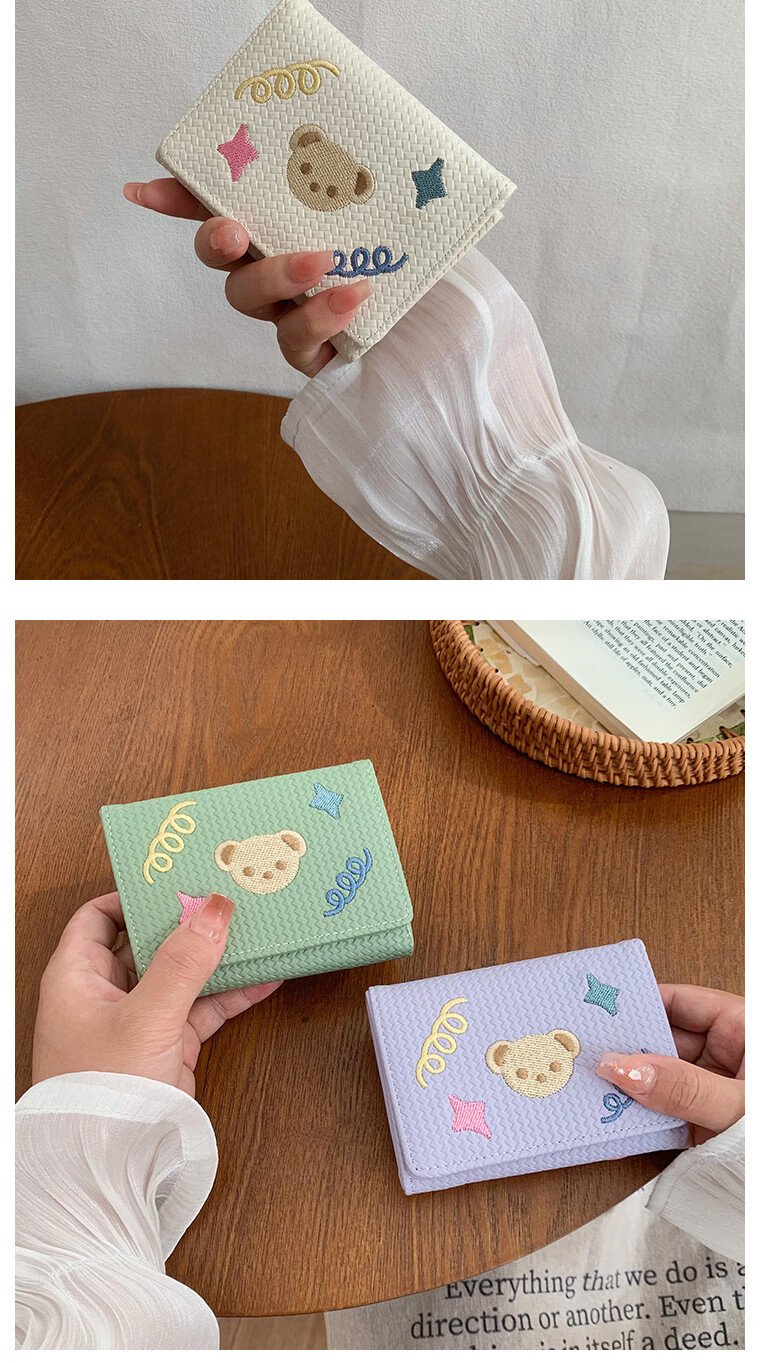 Chajin small fresh wallet women's short 2025 new student cute bear star embroidery multi-card slot card holder coin clip bear star embroidery off-white