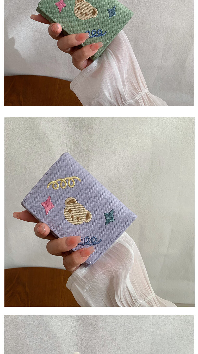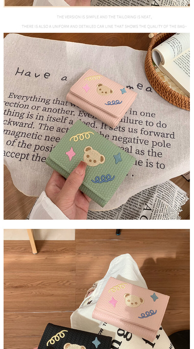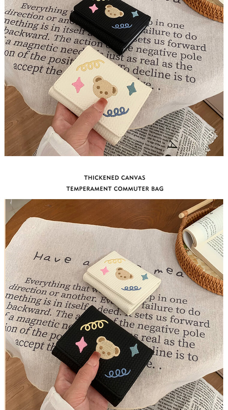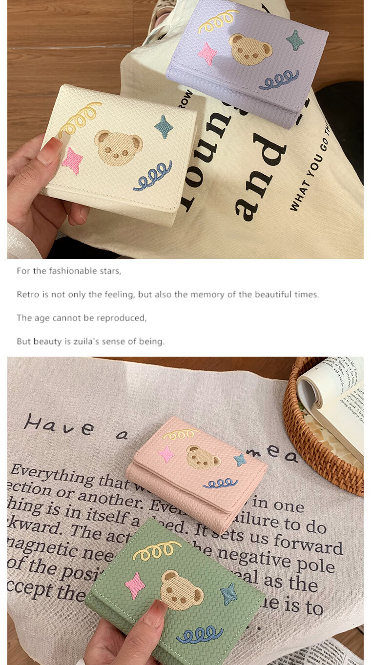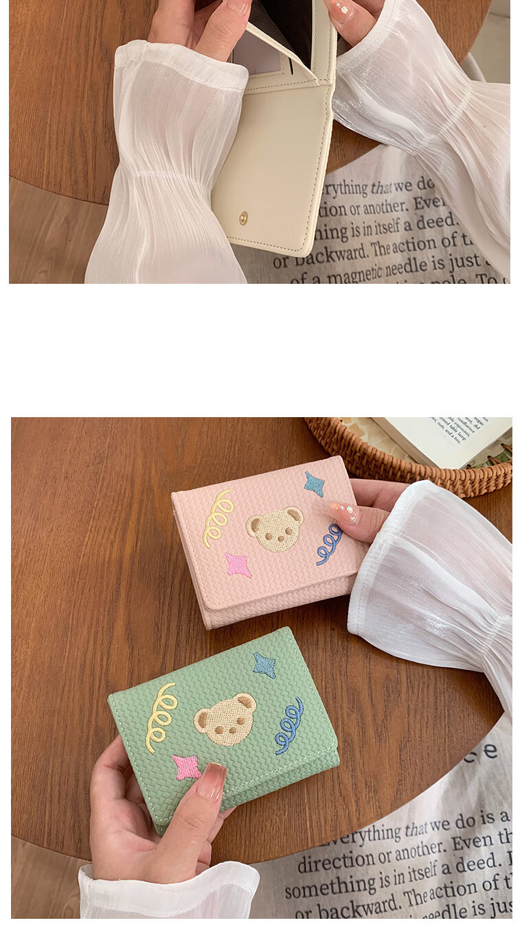 Chajin small fresh wallet women's short 2025 new student cute bear star embroidery multi-card slot card holder coin clip bear star embroidery off-white