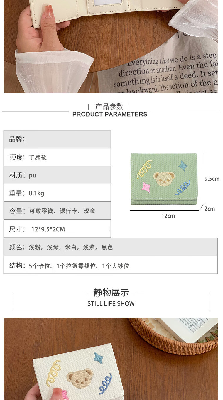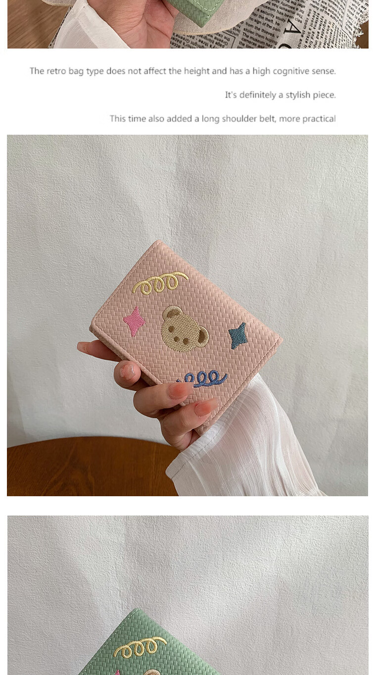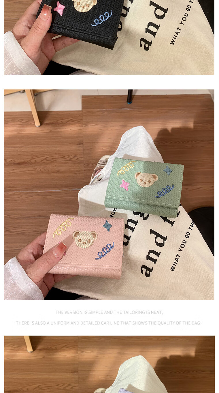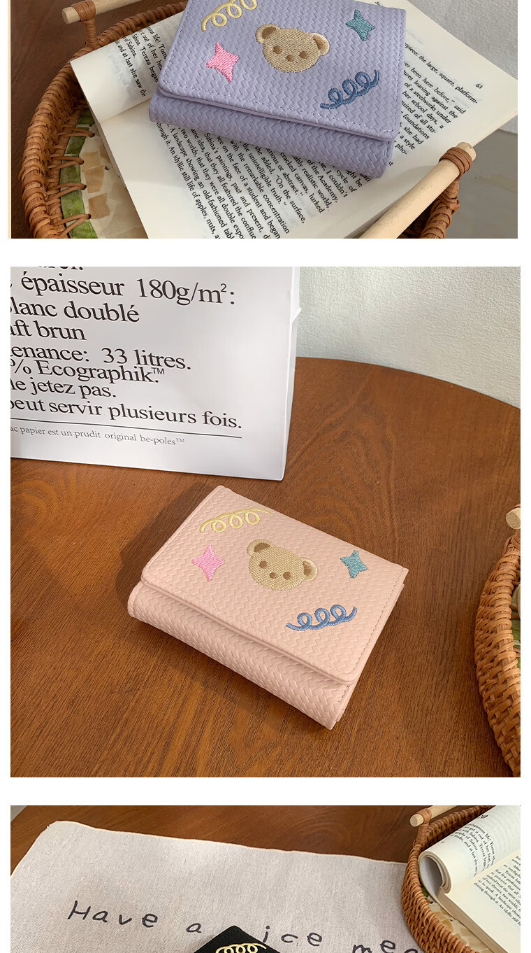 Chajin small fresh wallet women's short 2025 new student cute bear star embroidery multi-card slot card holder coin clip bear star embroidery off-white