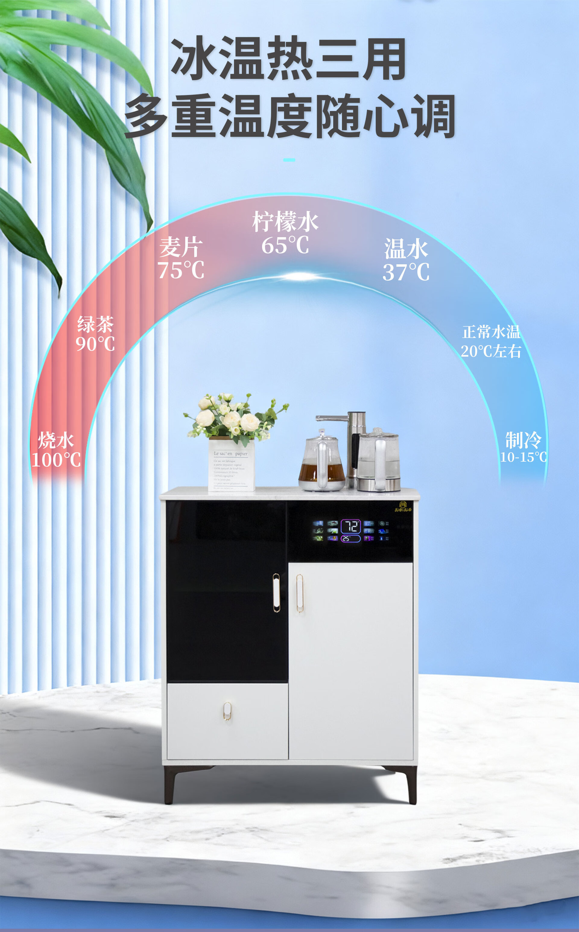 Meijia Meiju Tea Bar Machine 2025 Cream Style Fully Automatic Solid Wood Tea Bar Machine All-in-One Cabinet Water Dispenser Disinfection Home High-end Living Room 2025 New Sideboard Cooling and Hot Two Cabinet Milk White Refrigerator Model (Temperature as Low as Around 5) Cooling and Heating Type