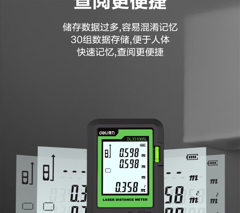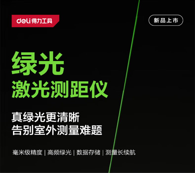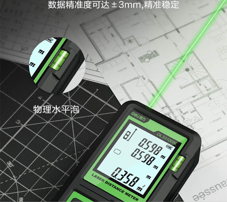 Deli laser distance meter can be used outdoors in the sun with green light high-precision electronic level laser measuring instrument green light 60 meters voice broadcast/electronic level