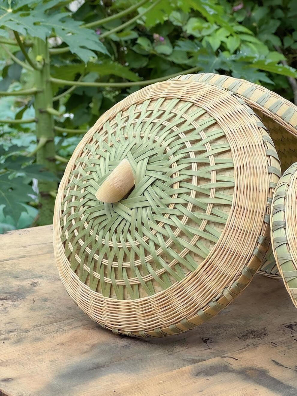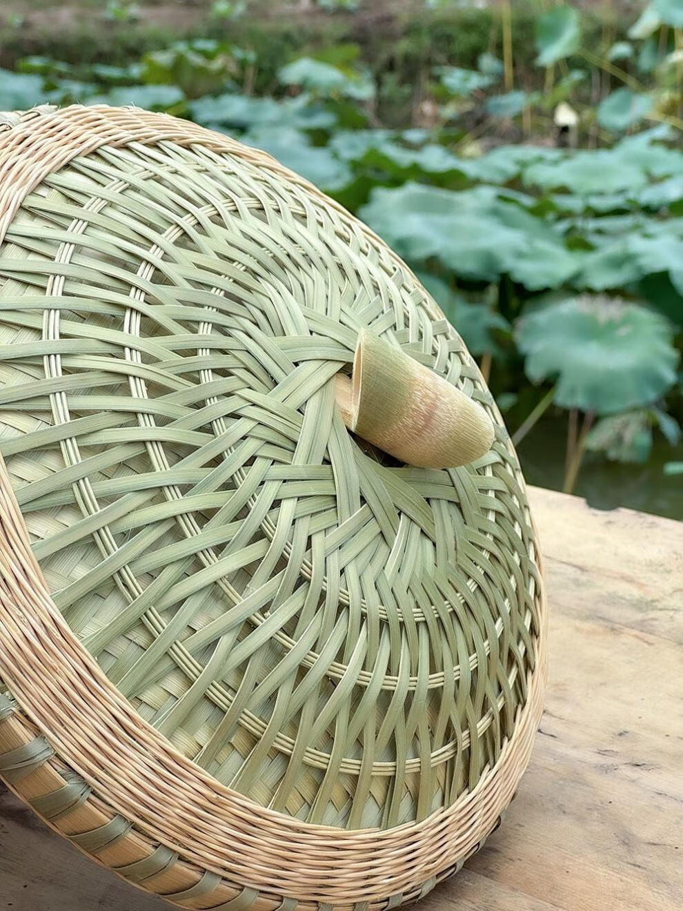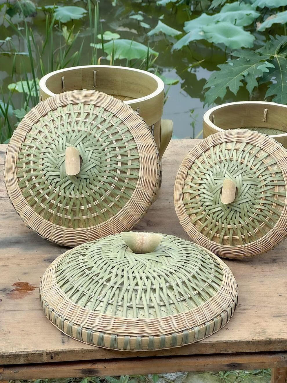 Ye Yu's traditional handmade bamboo pot lids, wooden barrels, bamboo lids, farmhouse household green bamboo art products, bamboo knotted bamboo root buckets, custom-made finely woven bamboo lids