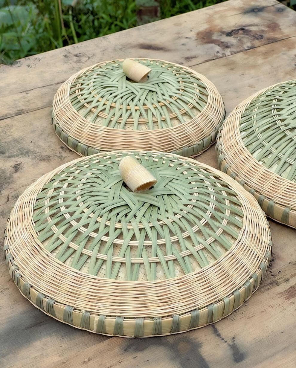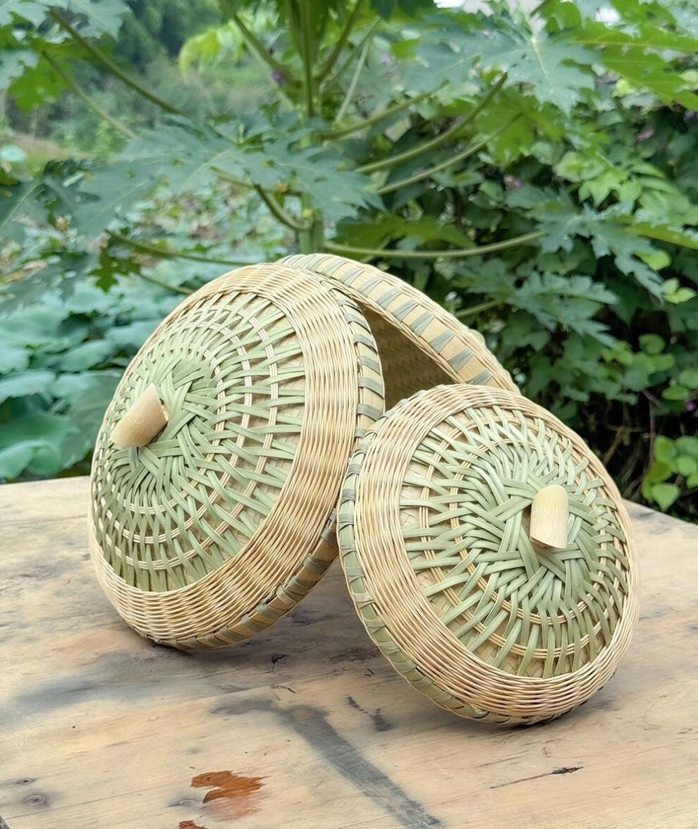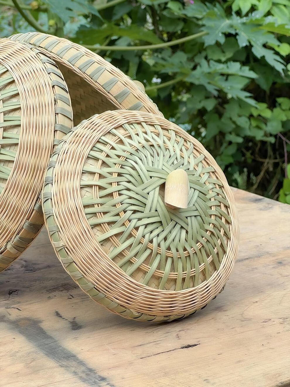 Ye Yu's traditional handmade bamboo pot lids, wooden barrels, bamboo lids, farmhouse household green bamboo art products, bamboo knotted bamboo root buckets, custom-made finely woven bamboo lids