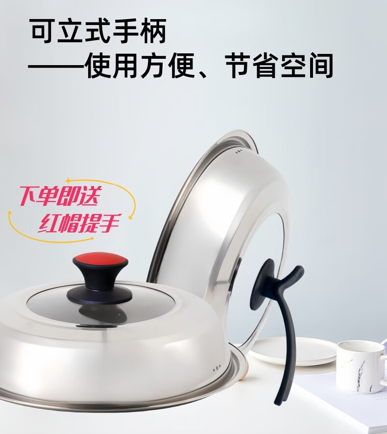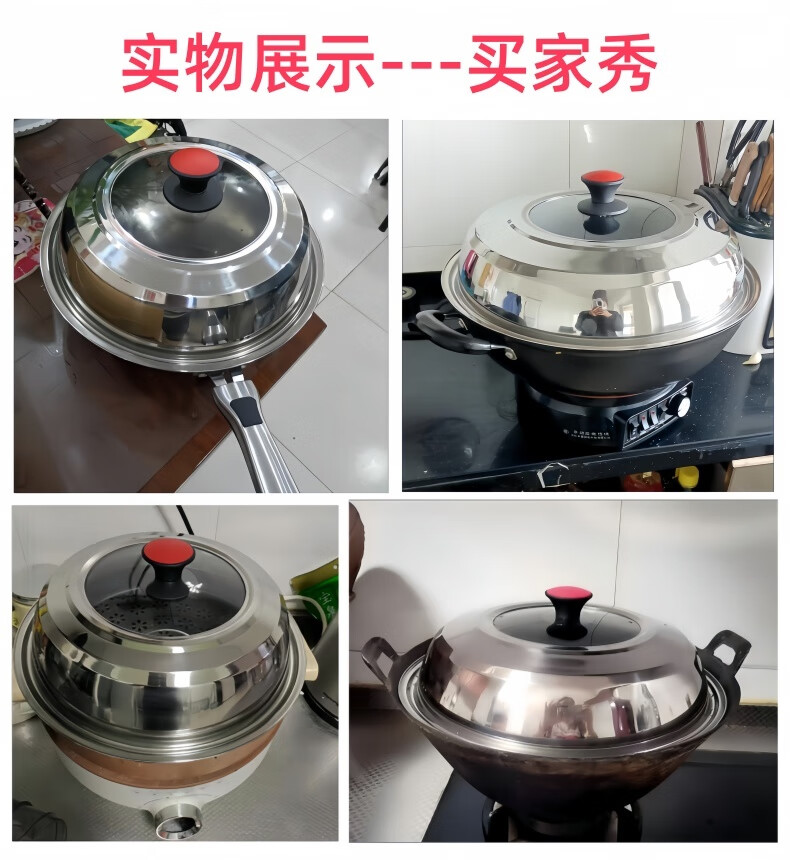 Ye Yu Stainless Steel Pot Lid Household Tempered Glass Pot Lid Universal Type Wok Pan Universal High Temperature Resistant Explosion-proof Extra Height 24CM (Lid Inner Diameter 23.5 Outer Diameter 25.5) Vertical Handle + Red Button Thickened Elegant Lid