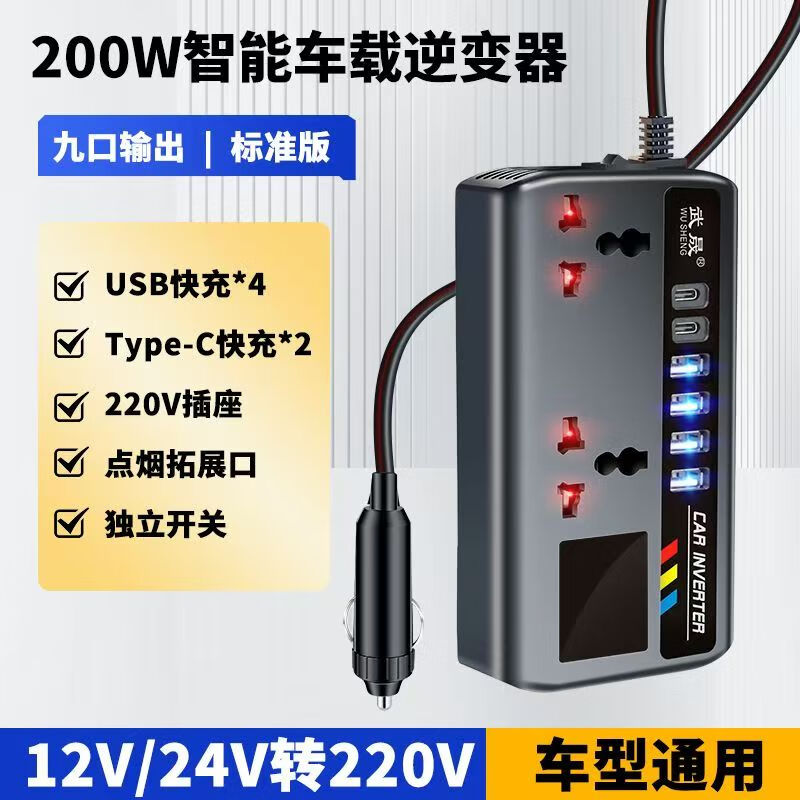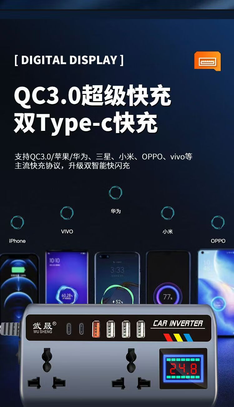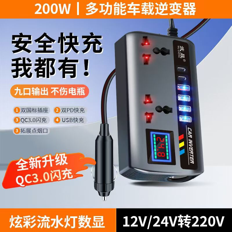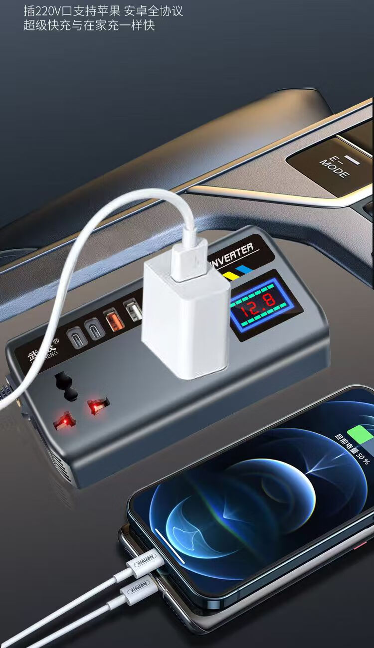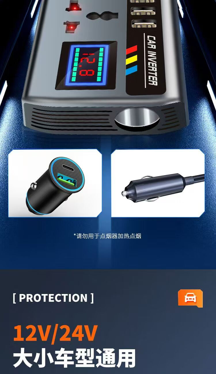 Car Inverter 12V24V to 220V Smart Charging Converter Inverter Converter Charger Smart Colorful Light + Dual Flash Charge = Dual PD Ports