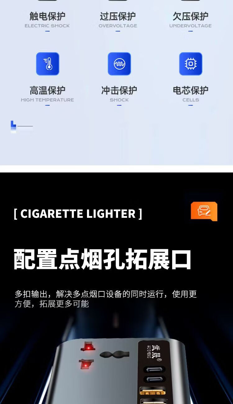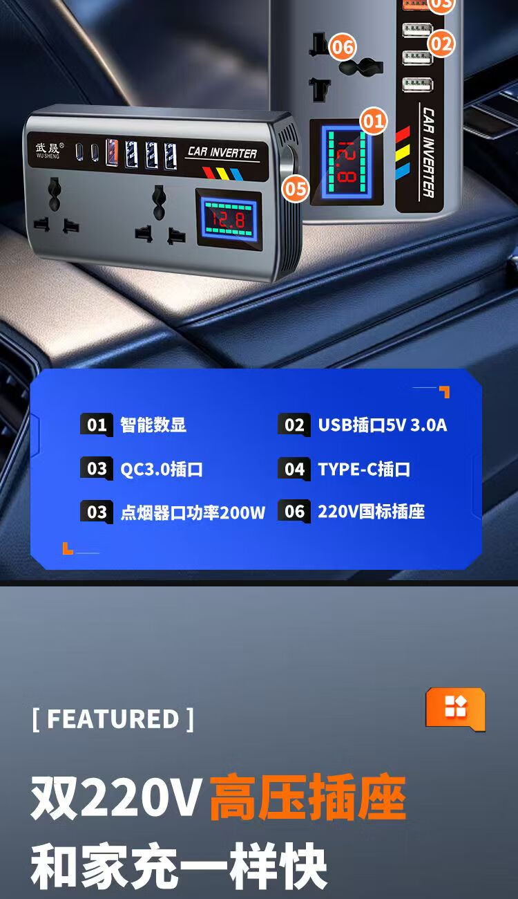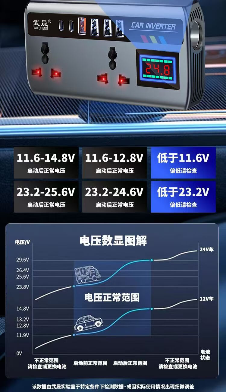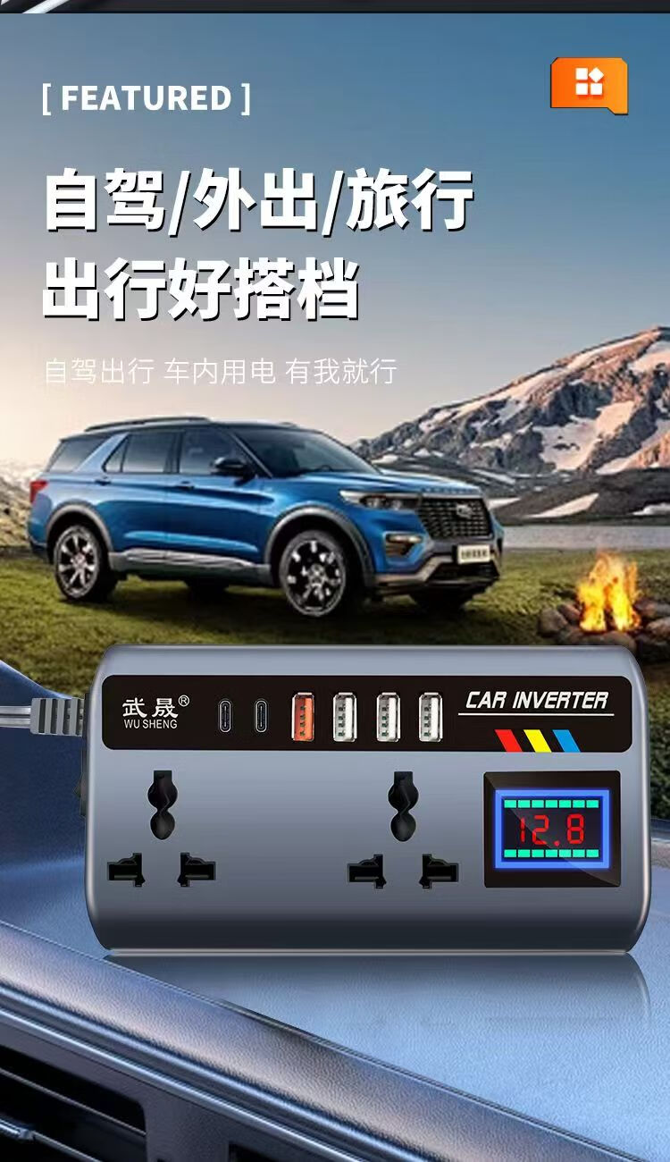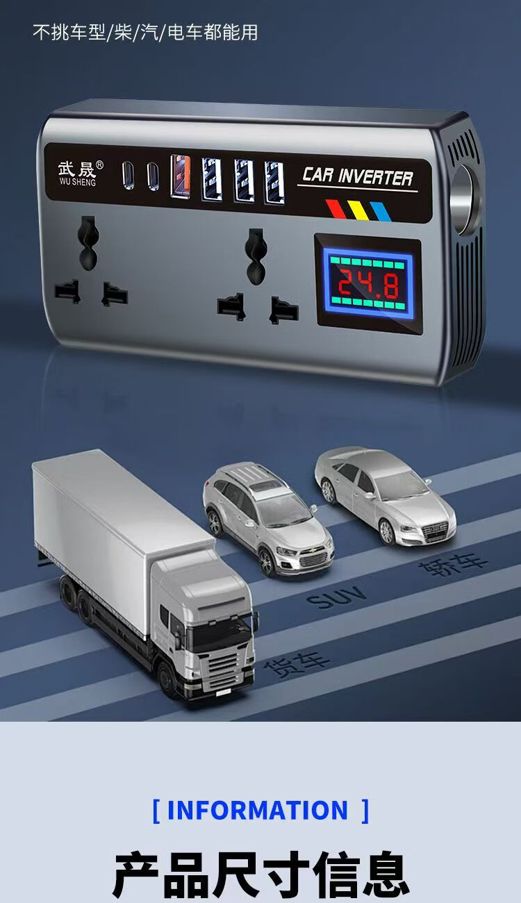 Car Inverter 12V24V to 220V Smart Charging Converter Inverter Converter Charger Smart Colorful Light + Dual Flash Charge = Dual PD Ports