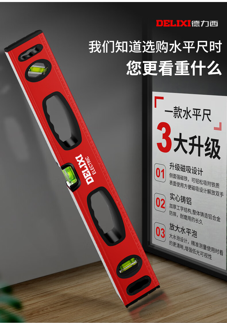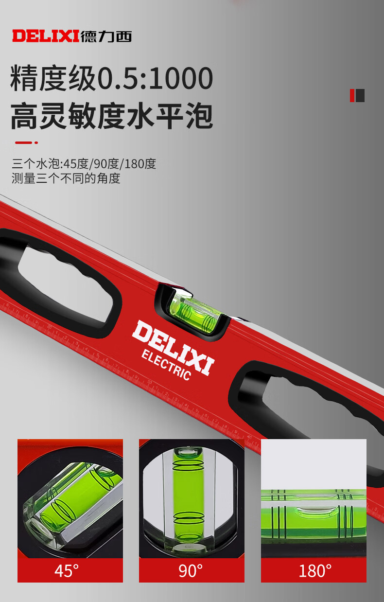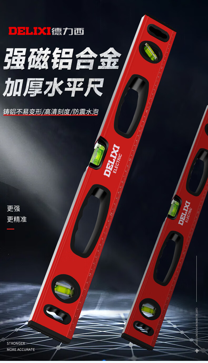 Delixi spirit level high-precision balanced strong magnetic ruler multi-functional flat water ruler aluminum alloy fan small level 600mm
