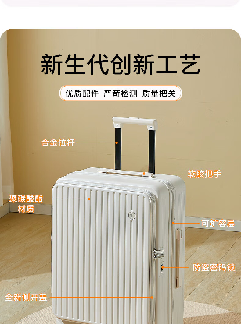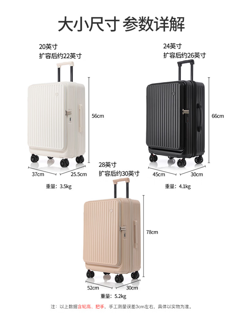 EAZZ Side Opening Cover Luggage Women's Expanded Trolley Case Brake Wheel Suitcase Men's Boarding Case Multifunctional Password Box Gun Gray YKK Zipper + Wet and Dry Separation 24 inches Approximately 26 inches after expansion Need to be checked in