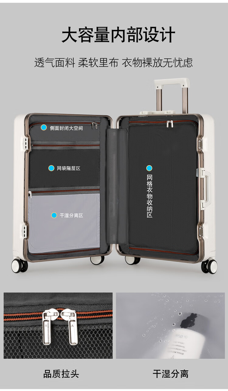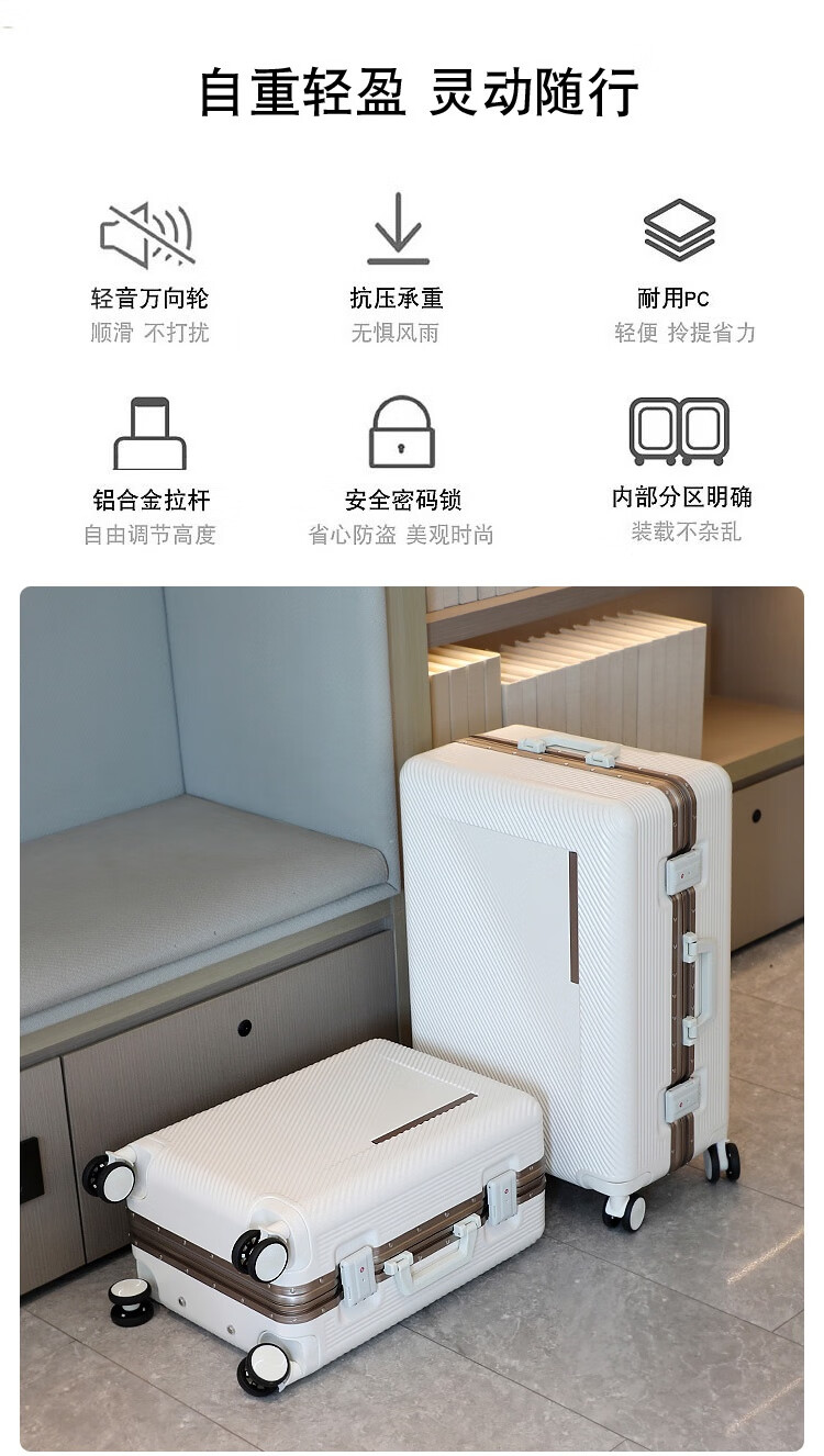 Kangaroo (KANGAROO) aluminum frame suitcase, small, airplane-friendly, aluminum alloy trolley case, high-looking, durable, hard-shell PC anti-fall suitcase, metallic gray - thickened and reinforced - can seat one person, 20-inch boarding case - business trip
