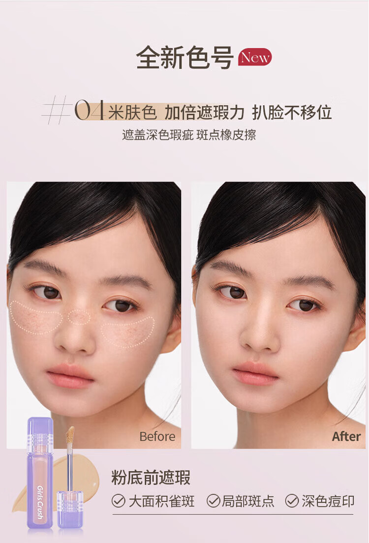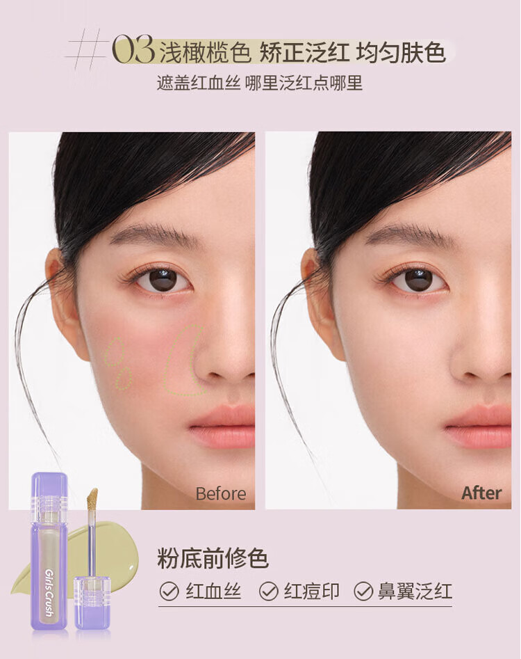 GIRLS CRUSH Brightening Concealer Conceals facial spots, tear troughs, dark circles, acne marks, red bloodshot girlscursh, covers severe dark circles #06 Pink Orange
