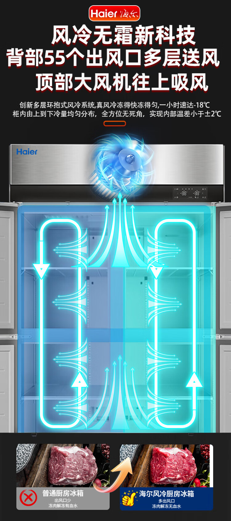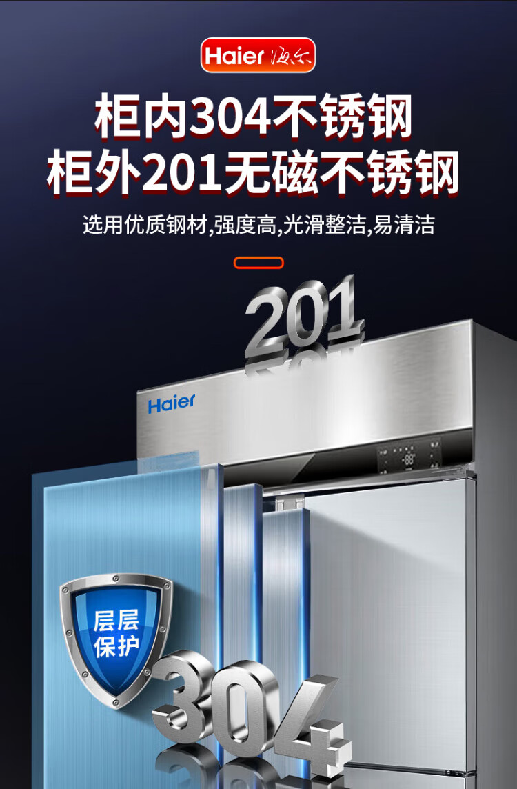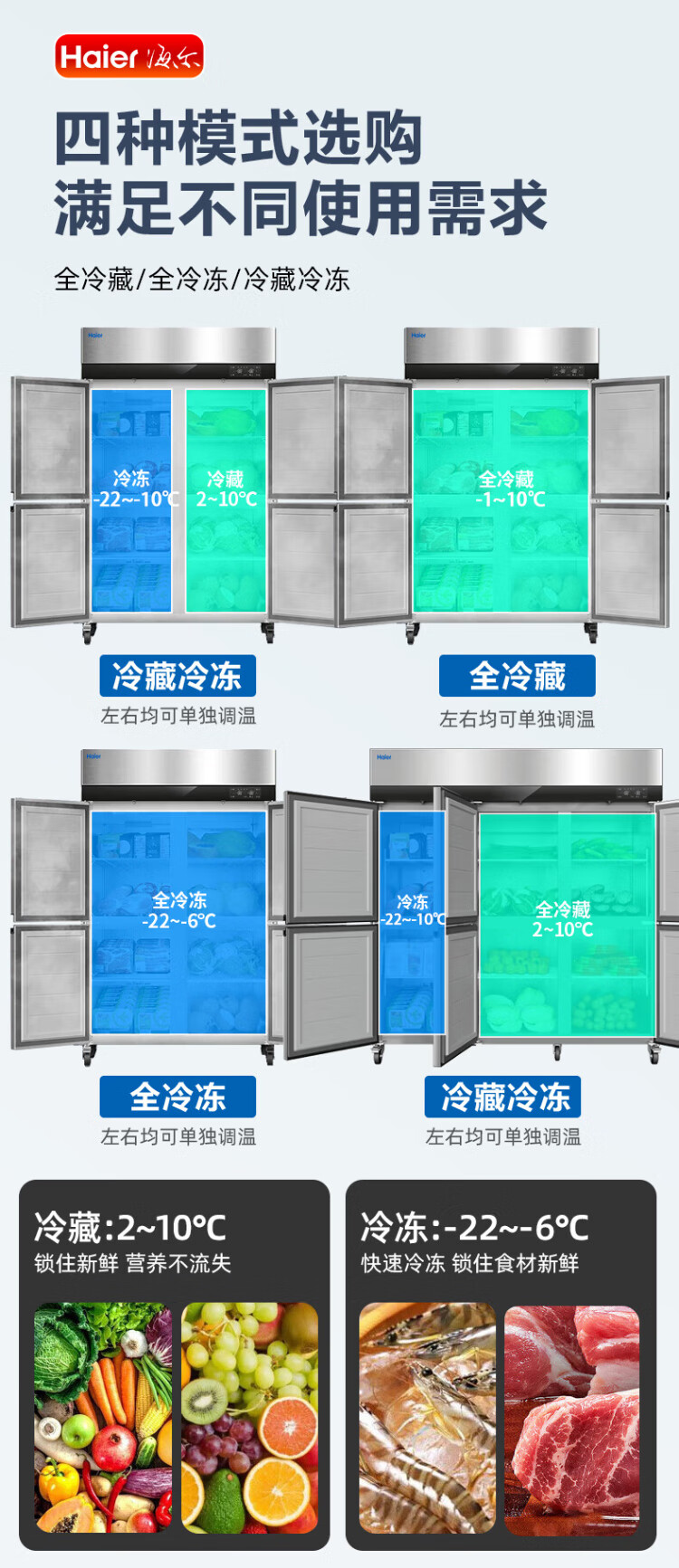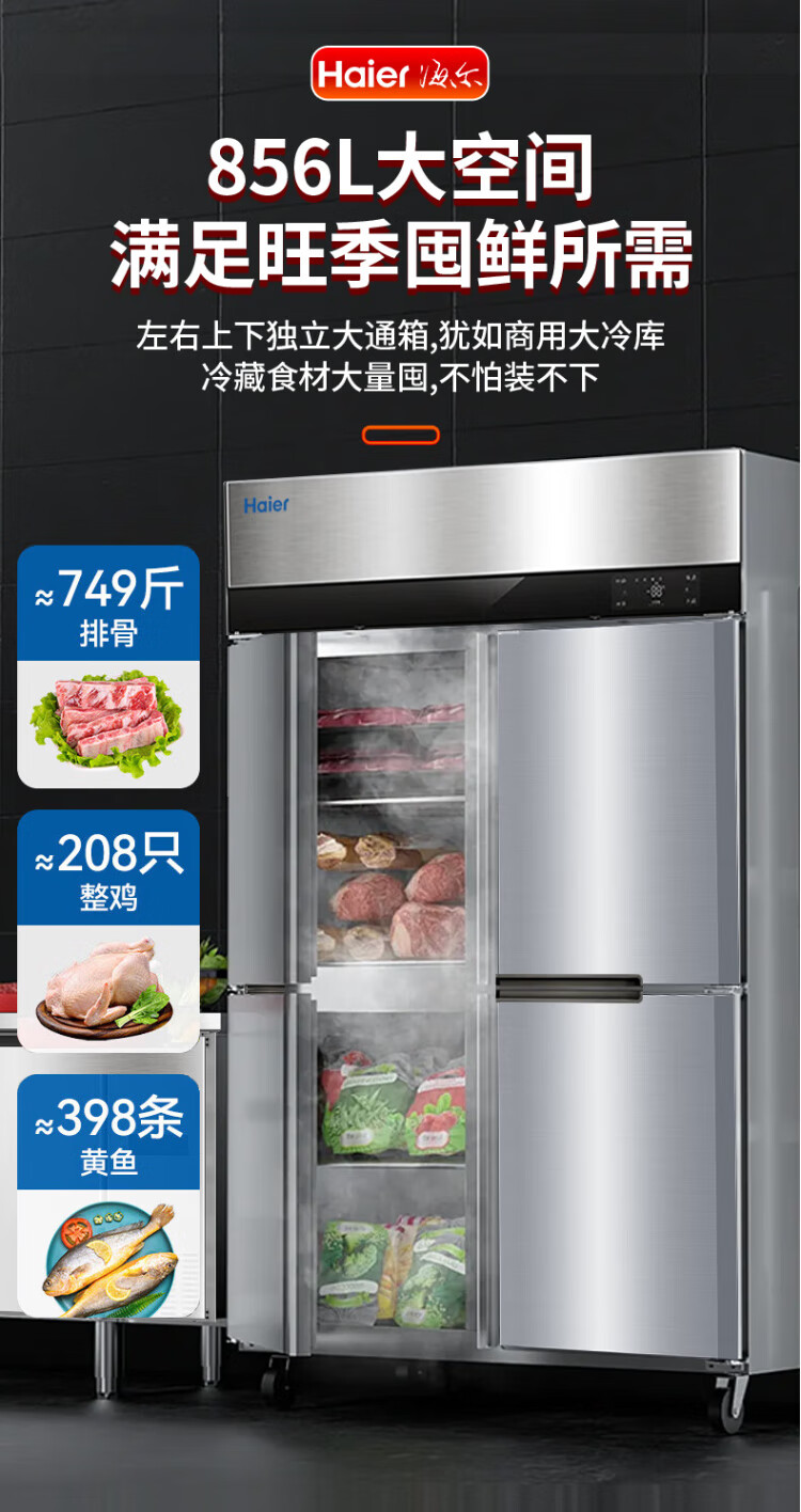 Haier four-door freezer commercial kitchen refrigerator first-class energy efficiency box large-capacity stainless steel vertical refrigeration and fresh-keeping cabinet freezer quick-freezer hotel kitchen 201 high-precision stainless steel four-door dual temperature SL-1020C2D2S
