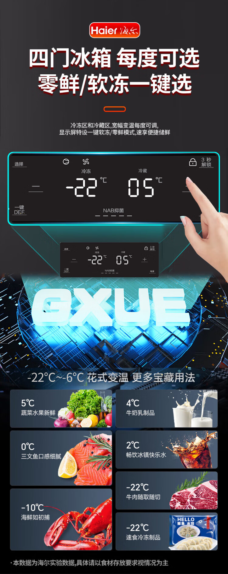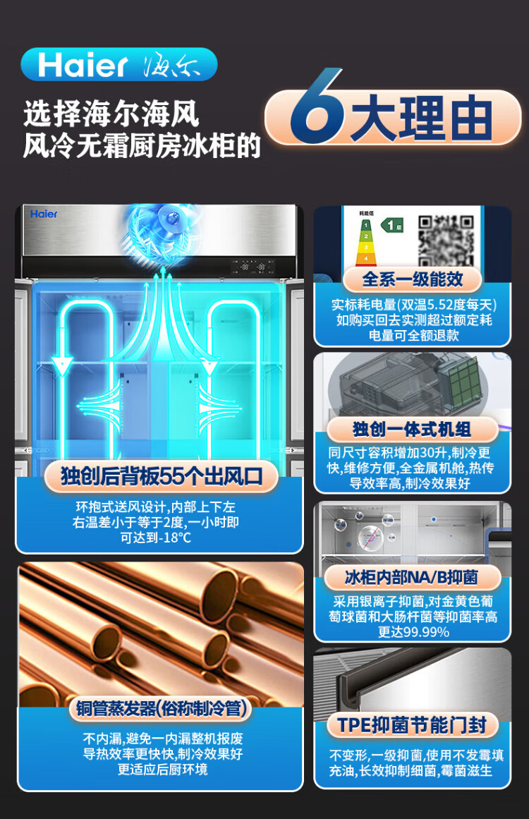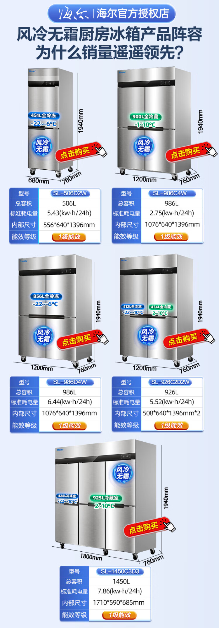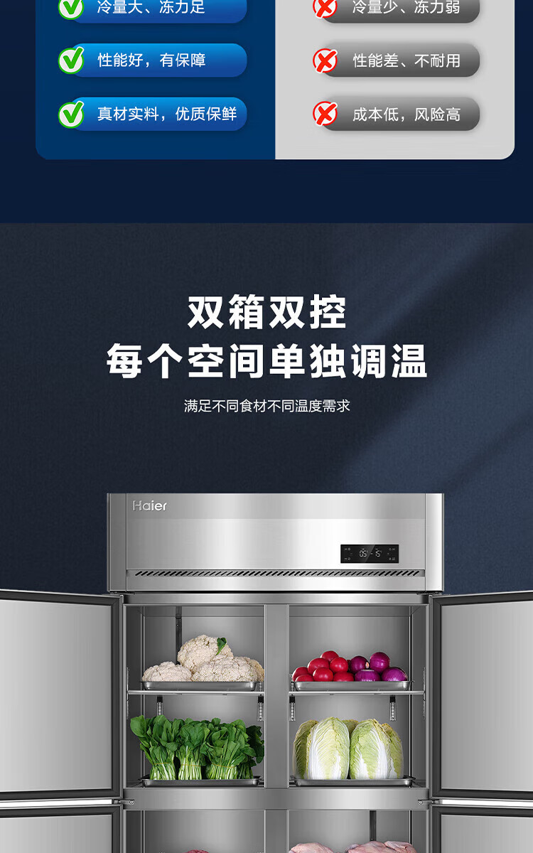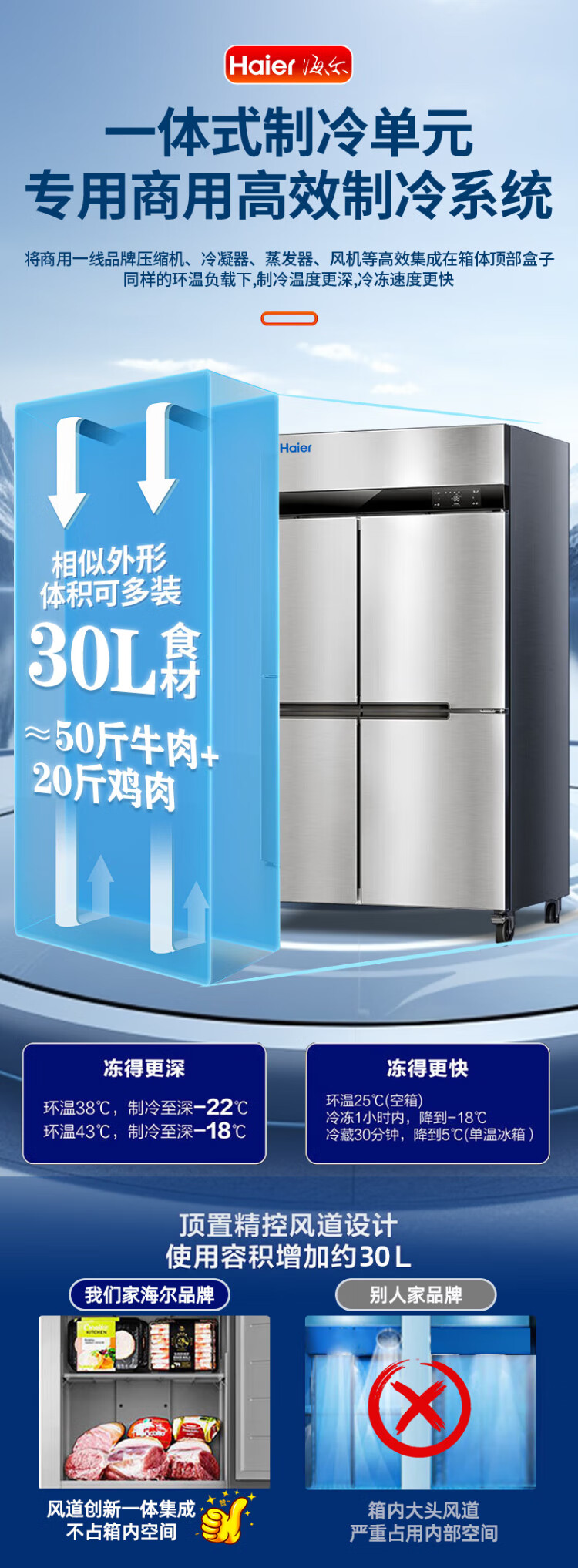 Haier four-door freezer commercial kitchen refrigerator first-class energy efficiency box large-capacity stainless steel vertical refrigeration and fresh-keeping cabinet freezer quick-freezer hotel kitchen 201 high-precision stainless steel four-door dual temperature SL-1020C2D2S