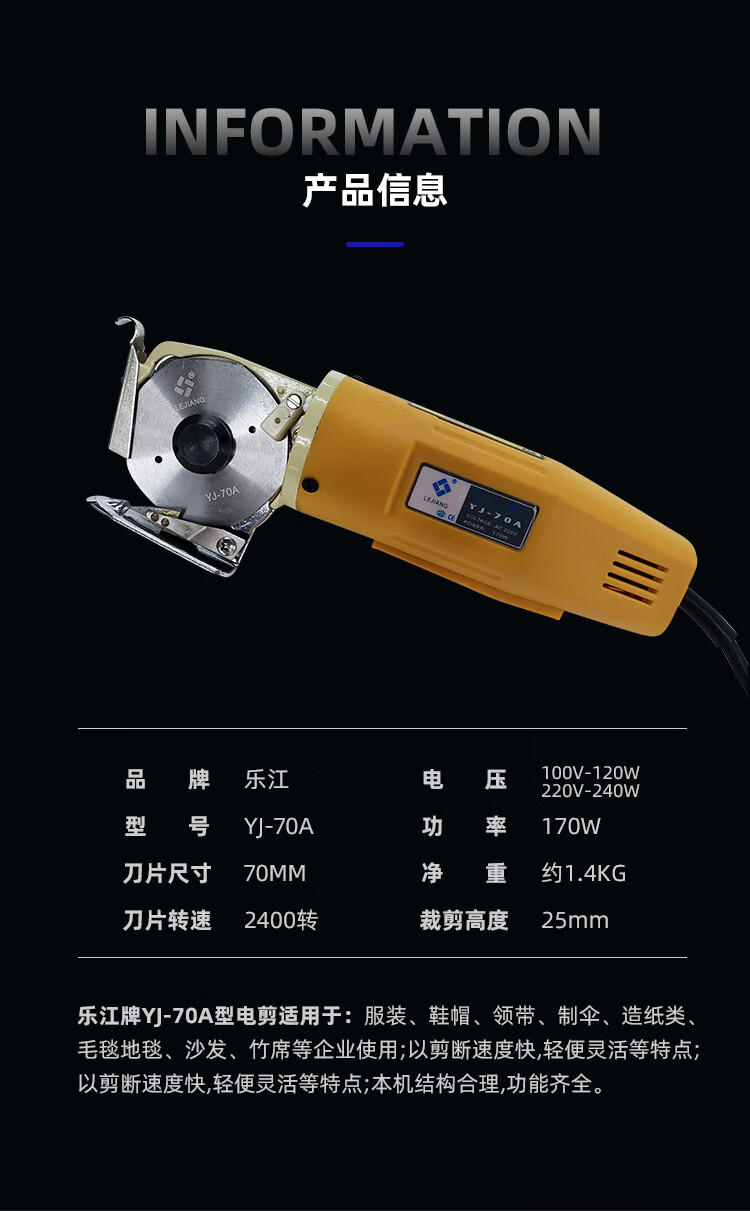 TNBROTHERS authentic YJ-70 handheld electric scissors, electric round knife, cutting machine, cloth cutting machine, cloth cutting machine YJ-70A