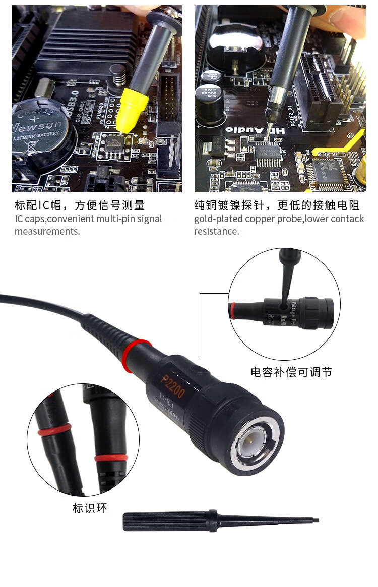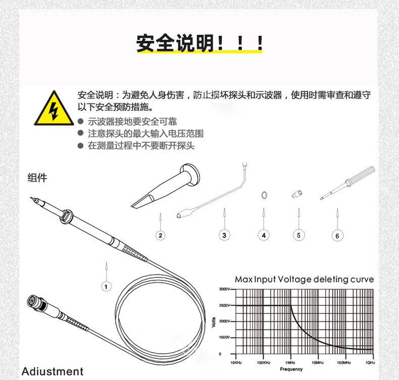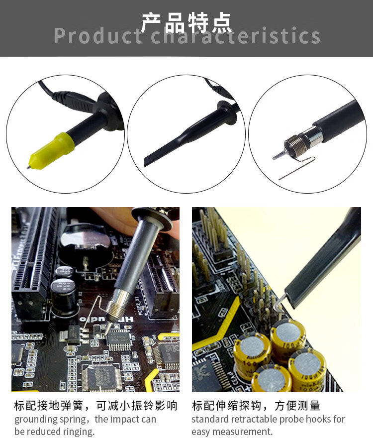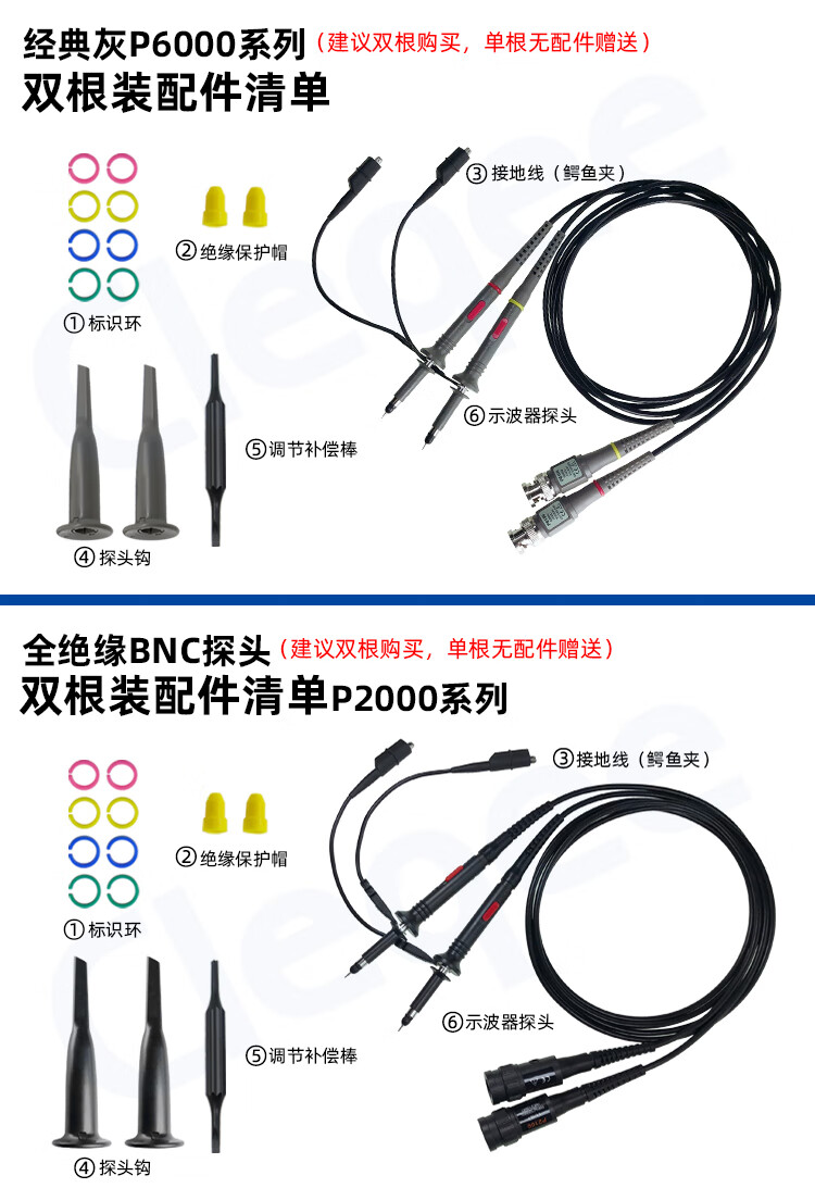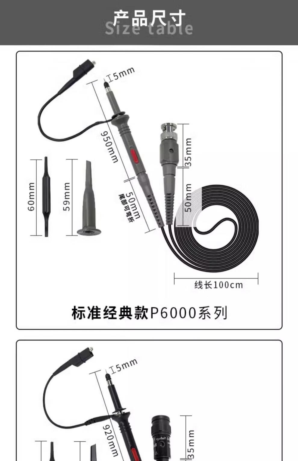Cleqee oscilloscope probe universal high voltage probe probe 20M-300MHz test lead line high frequency 100x10x gray classic 60MHz (P6060-1 10X)