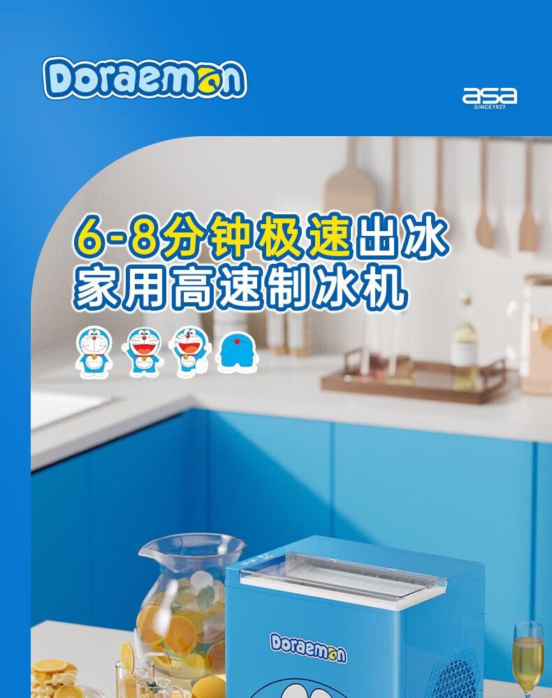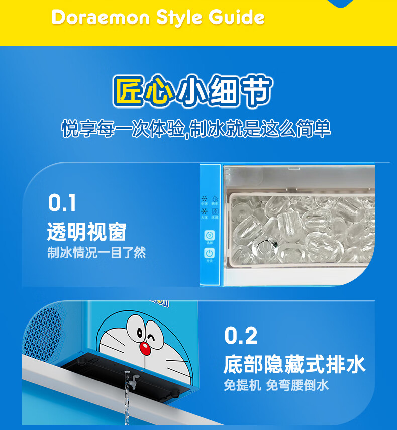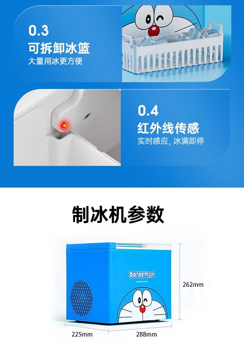 Nordic Asa ice machine for home small dormitory students mini fully automatic ice machine ice machine Doraemon joint model automatic cleaning I small size I size adjustable upgrade