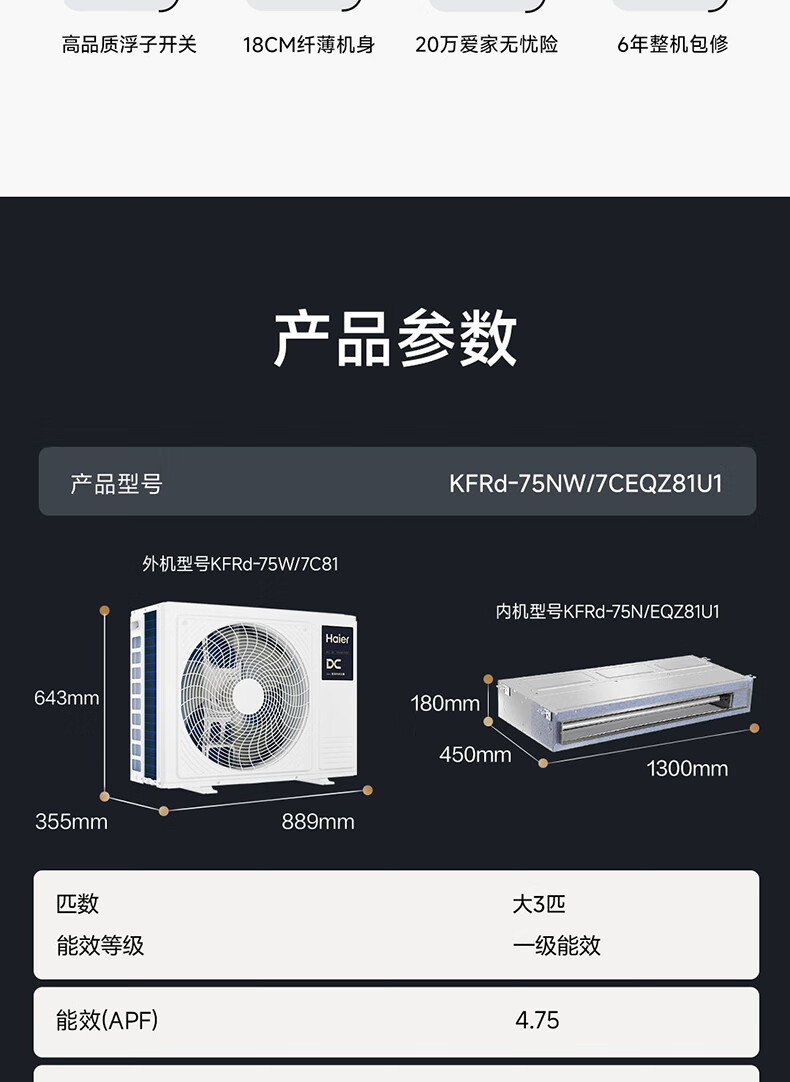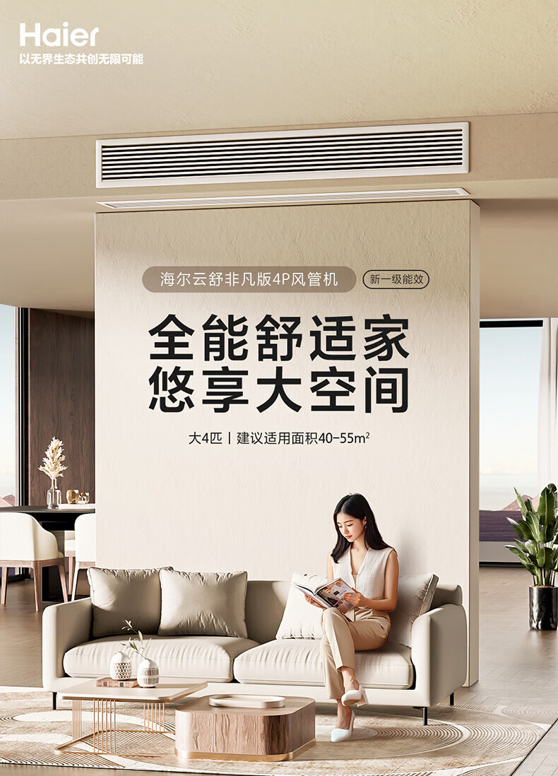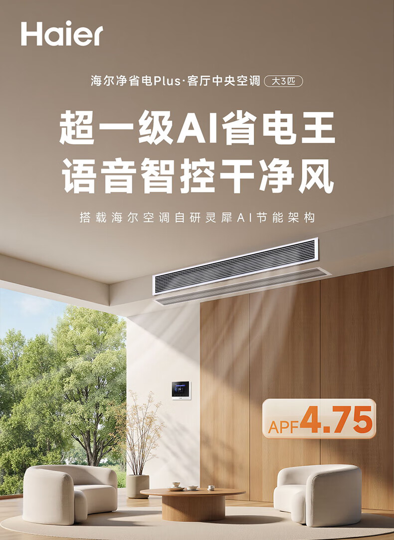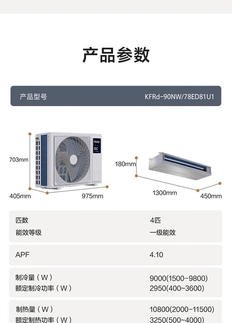 Haier Xiaohonghua series variable frequency central air conditioning duct machine one-to-one living room household formaldehyde removal self-cleaning first-level energy efficiency embedded Yuanqi 4 HP Leader/first-level energy efficiency