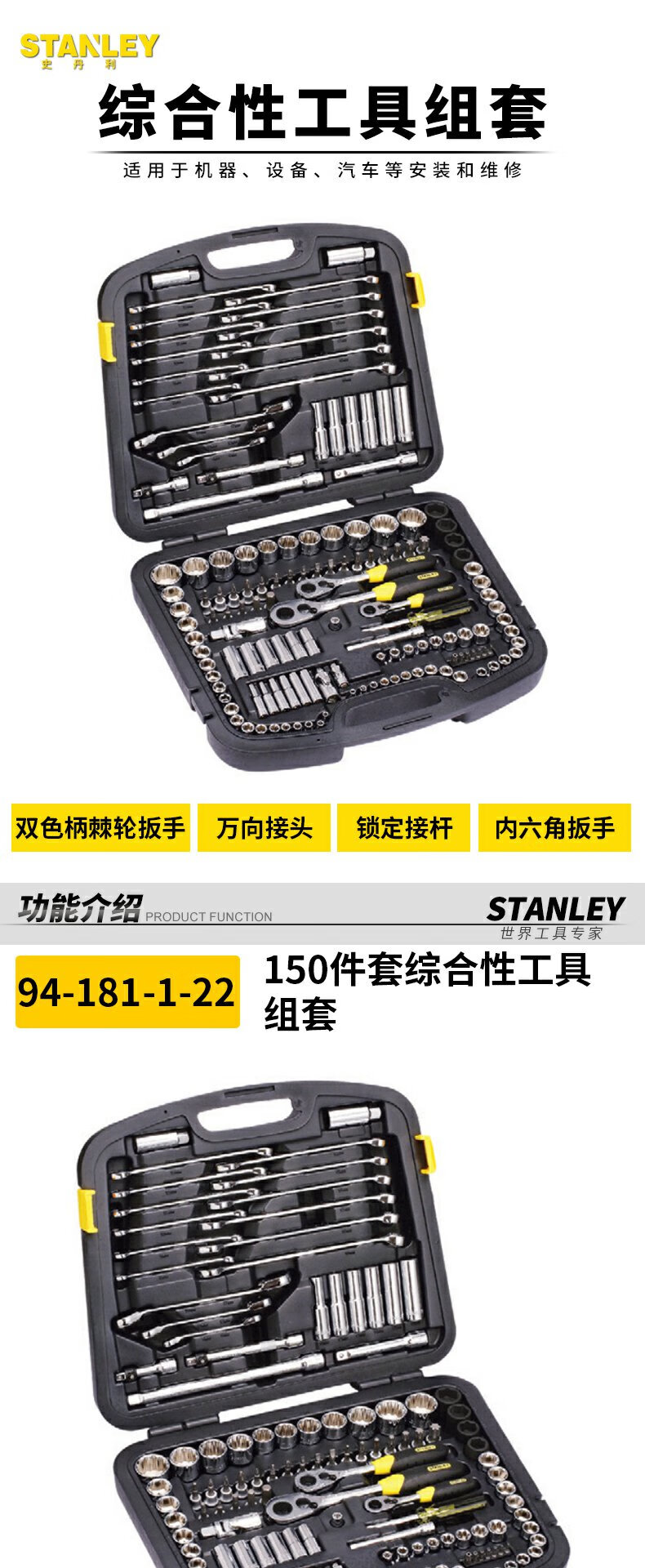 Stanley (STANLEY)/150-piece comprehensive tool set auto repair socket set 150-piece set 94-181-1-22 1-22 1-22)