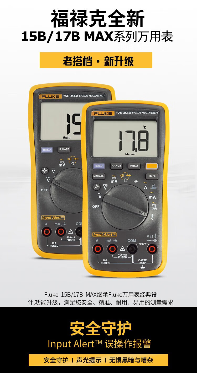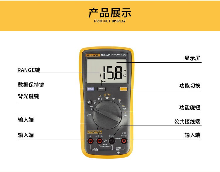 FLUKE digital multimeter F15B+/15B MAX portable auto-ranging handheld multimeter with backlight 15B MAX02 (with extra-tip test leads)