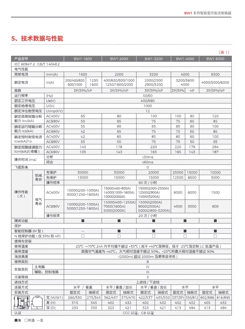 Frame type circuit breaker-2000/3P 1600A3200/4000/6300A BW1-1600A 3P x G fixed x 1000A