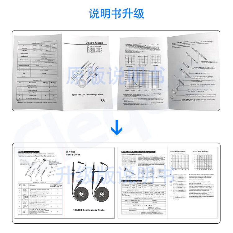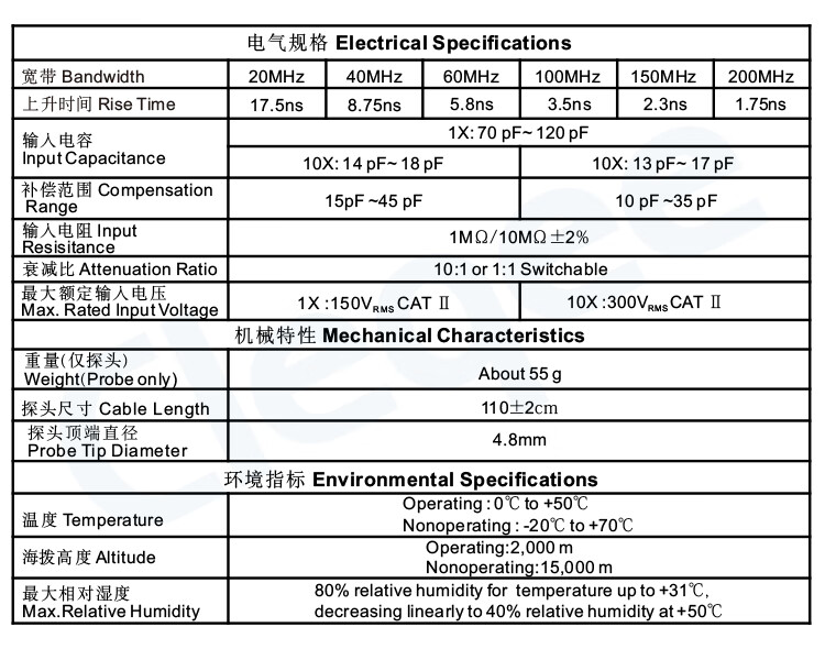 Cleqee oscilloscope probe universal high voltage probe probe 20M-300MHz test lead line high frequency 100x10x gray classic 60MHz (P6060-1 10X)