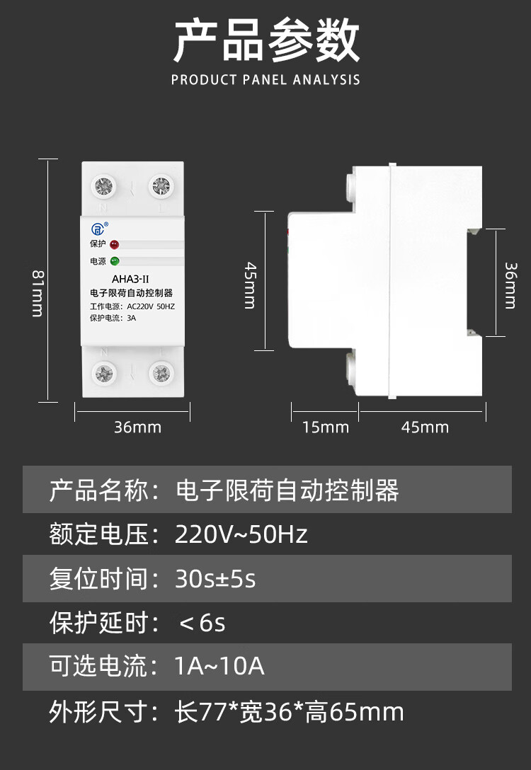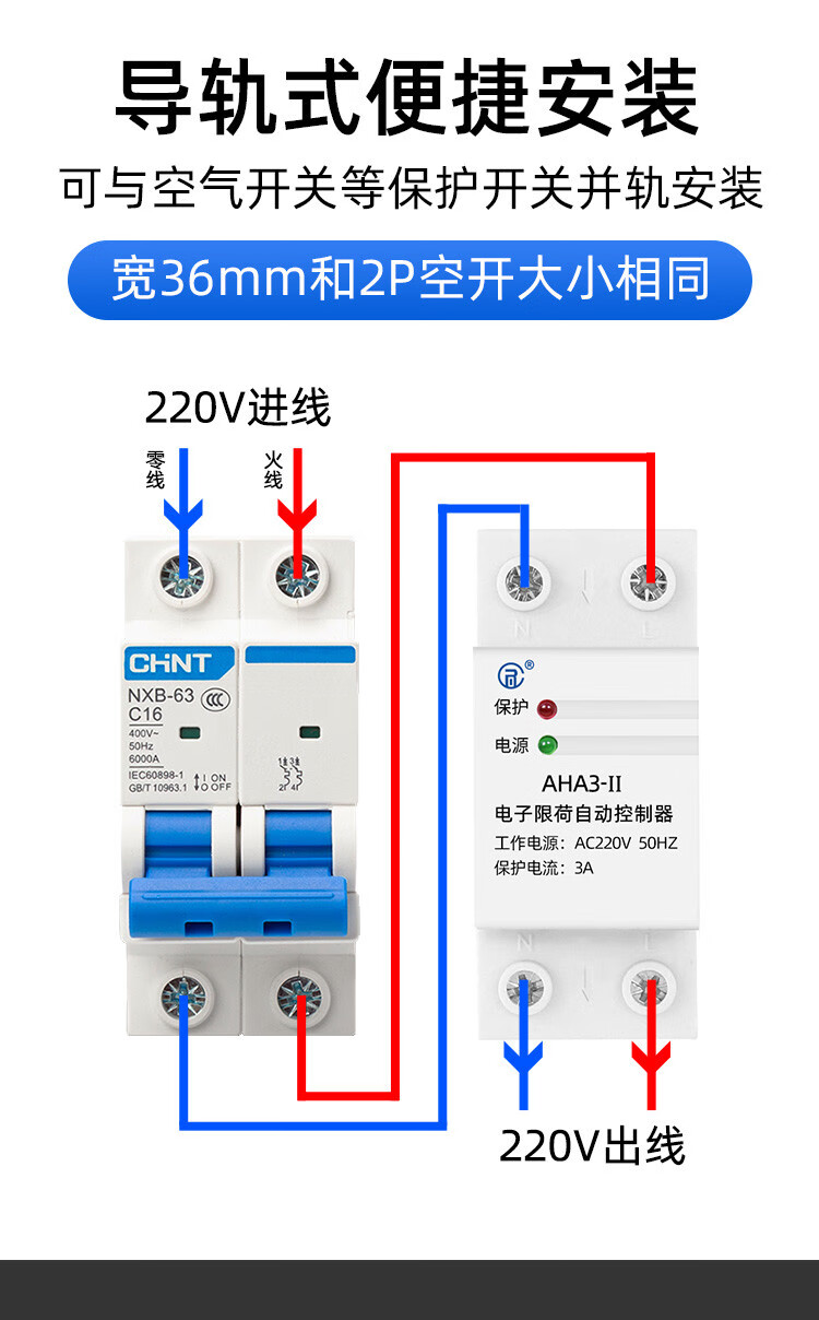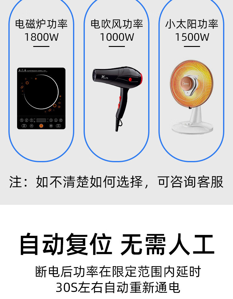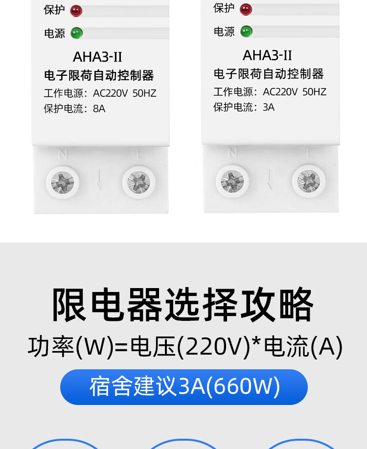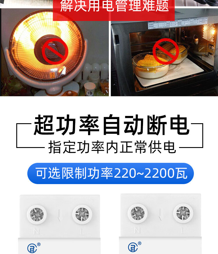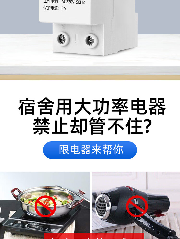 Current limiter 3A school construction site dormitory limit high-power electrical appliances fully automatic reset current limit switch 5A 10A (2220 watts)