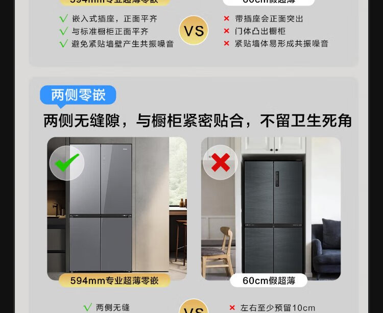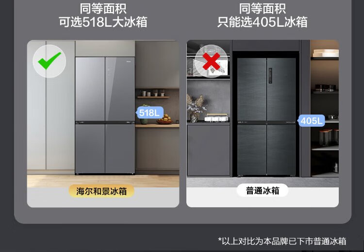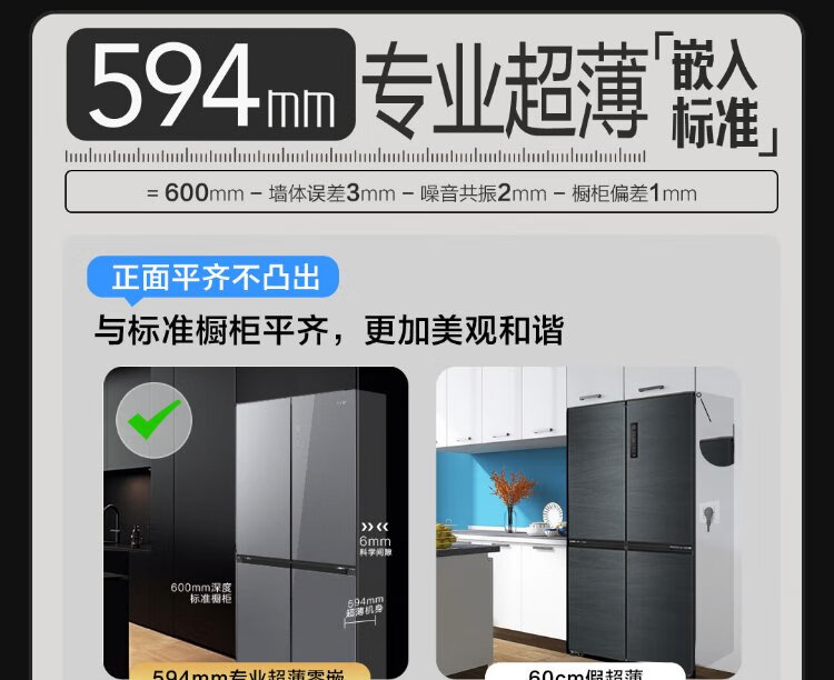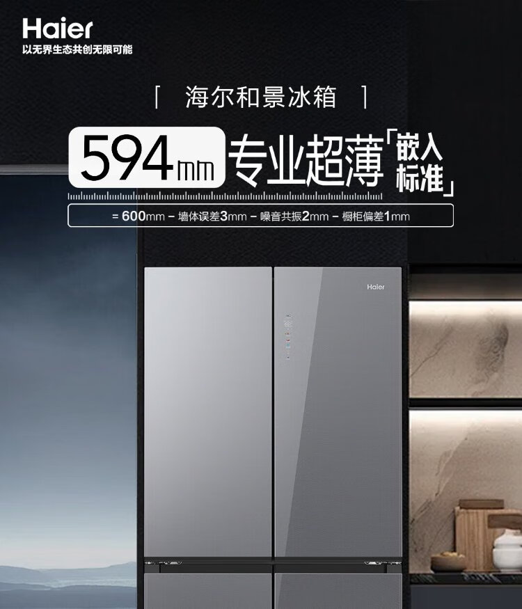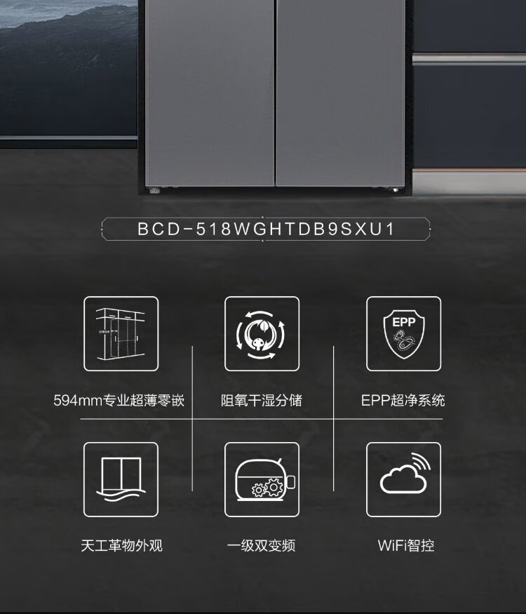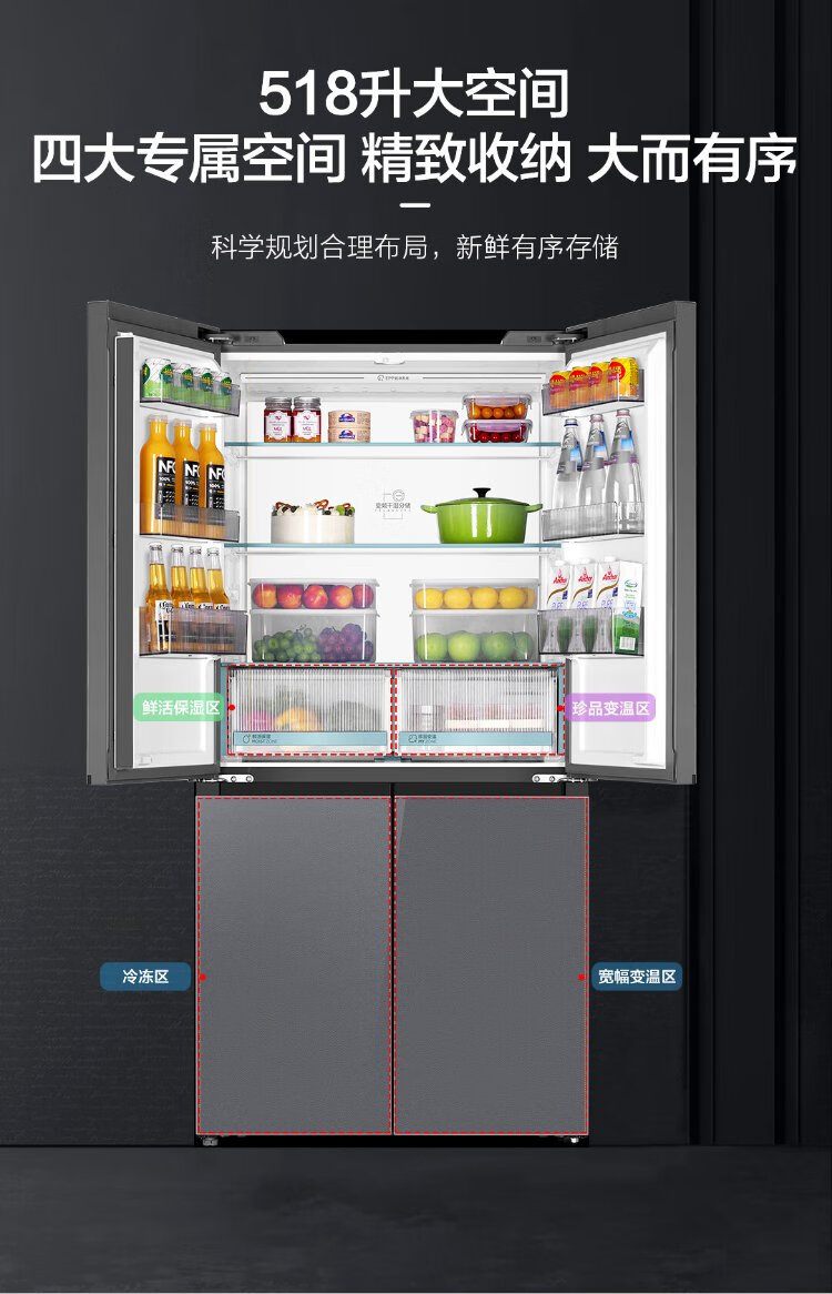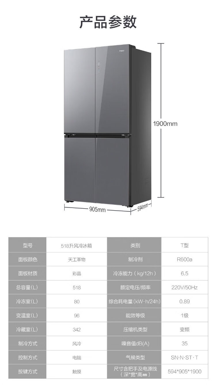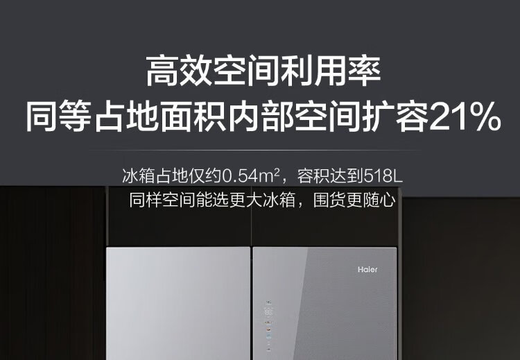 Haier 518L refrigerator 594mm professional ultra-thin zero-embedded cross-door refrigerator cross-door household refrigerator first-class energy efficiency variable frequency air-cooled frost-free refrigerator dry and wet separate storage + EPP ultra-clean system + three-speed variable temperature