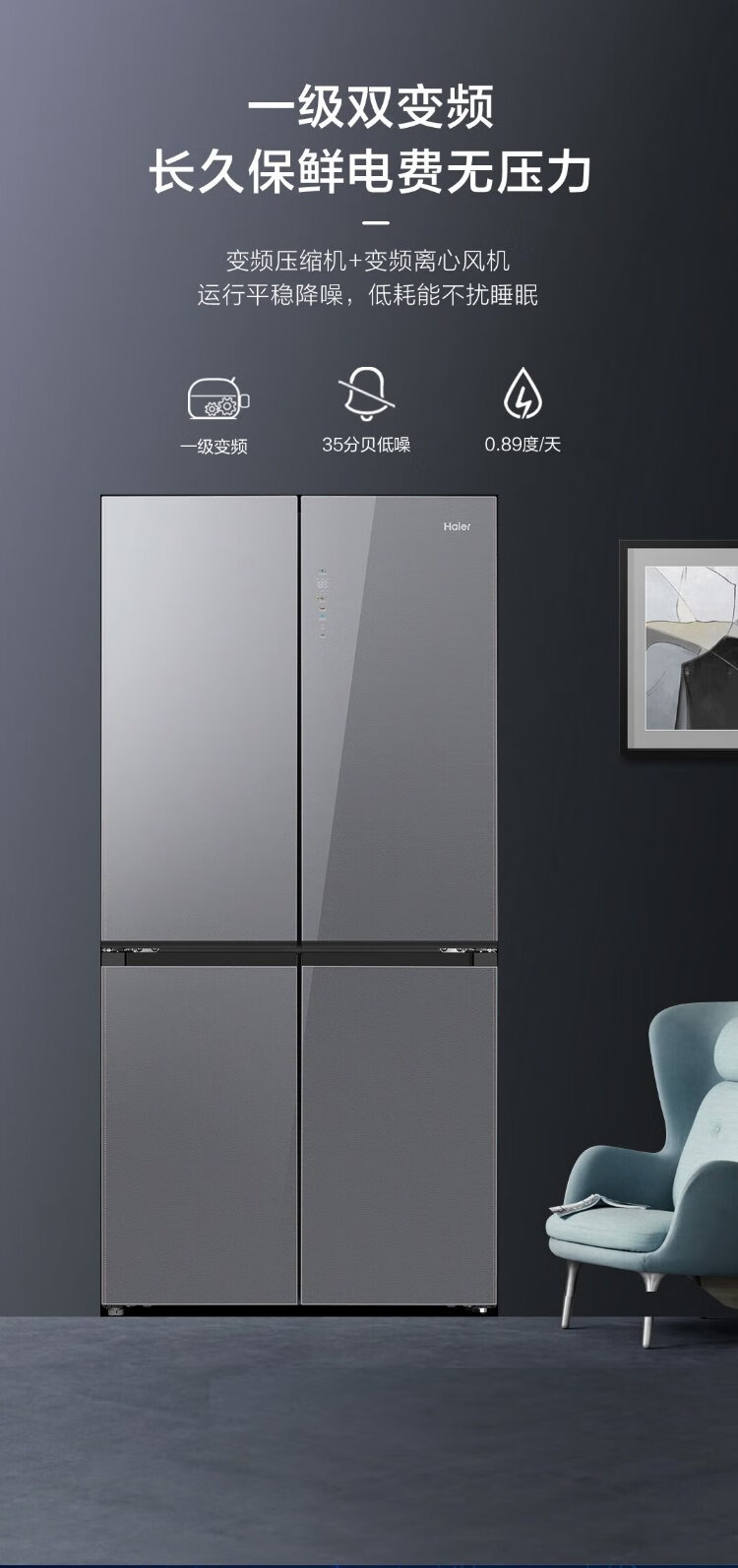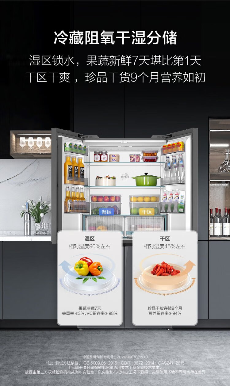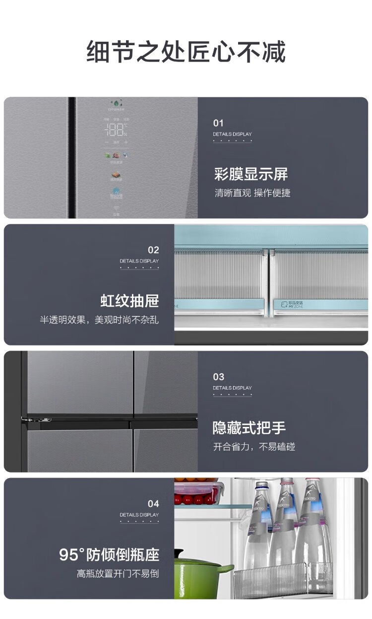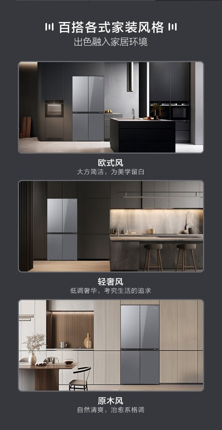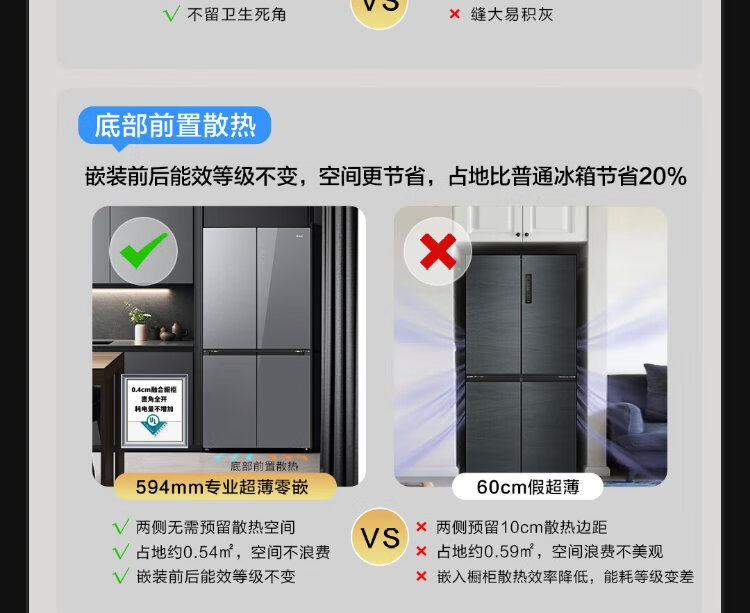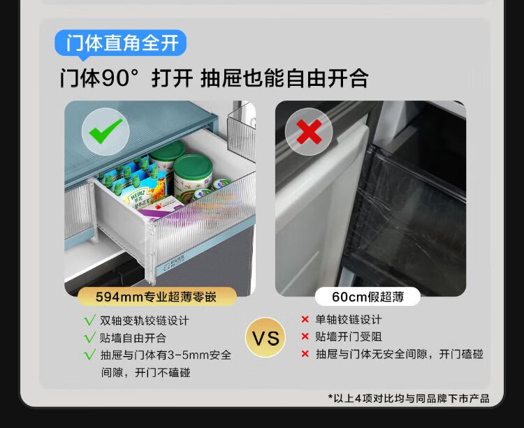 Haier 518L refrigerator 594mm professional ultra-thin zero-embedded cross-door refrigerator cross-door household refrigerator first-class energy efficiency variable frequency air-cooled frost-free refrigerator dry and wet separate storage + EPP ultra-clean system + three-speed variable temperature